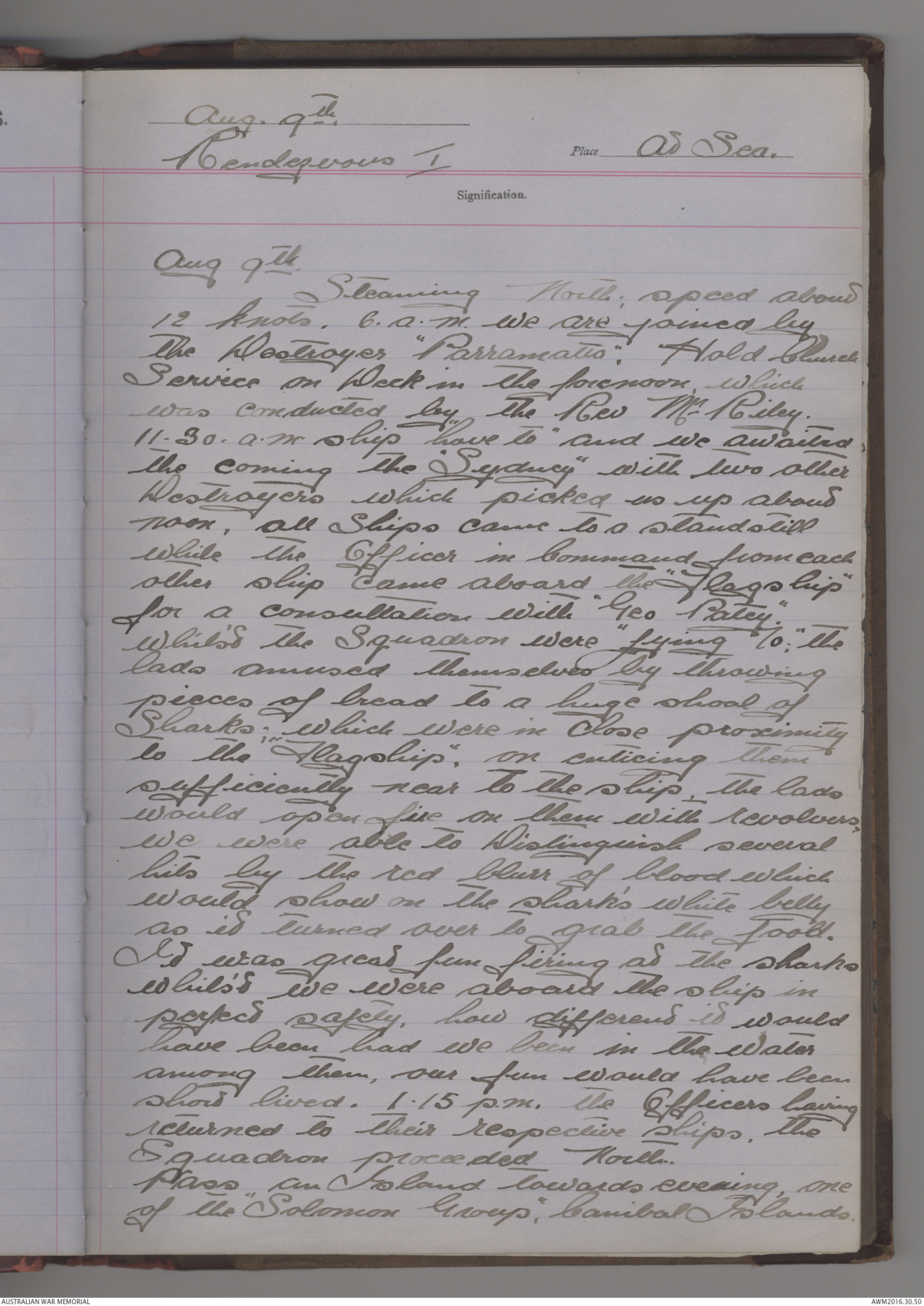 the Destroyer “Parramatta”. Hold Church