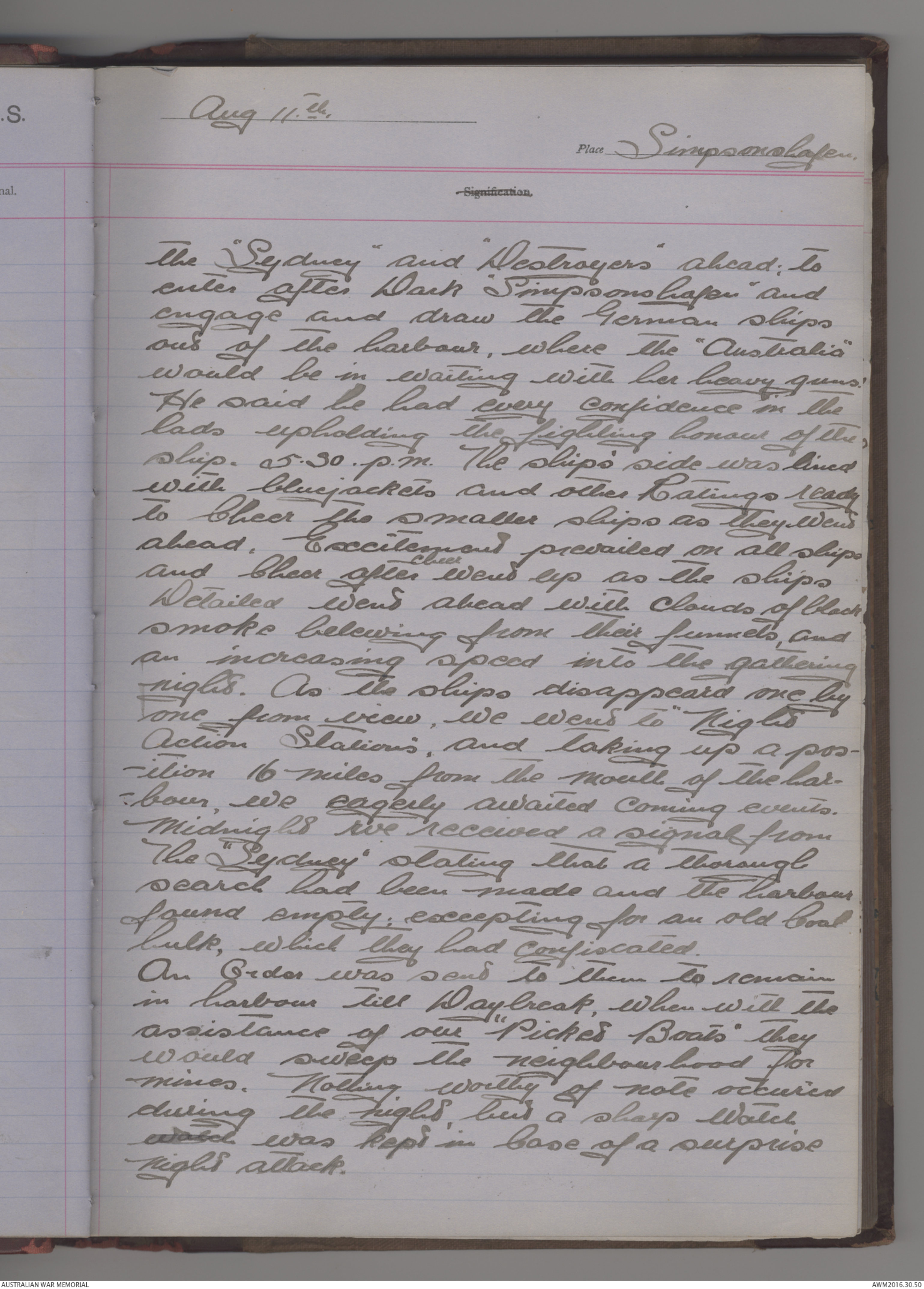 with the “Sydney” and “Destroyers”, our