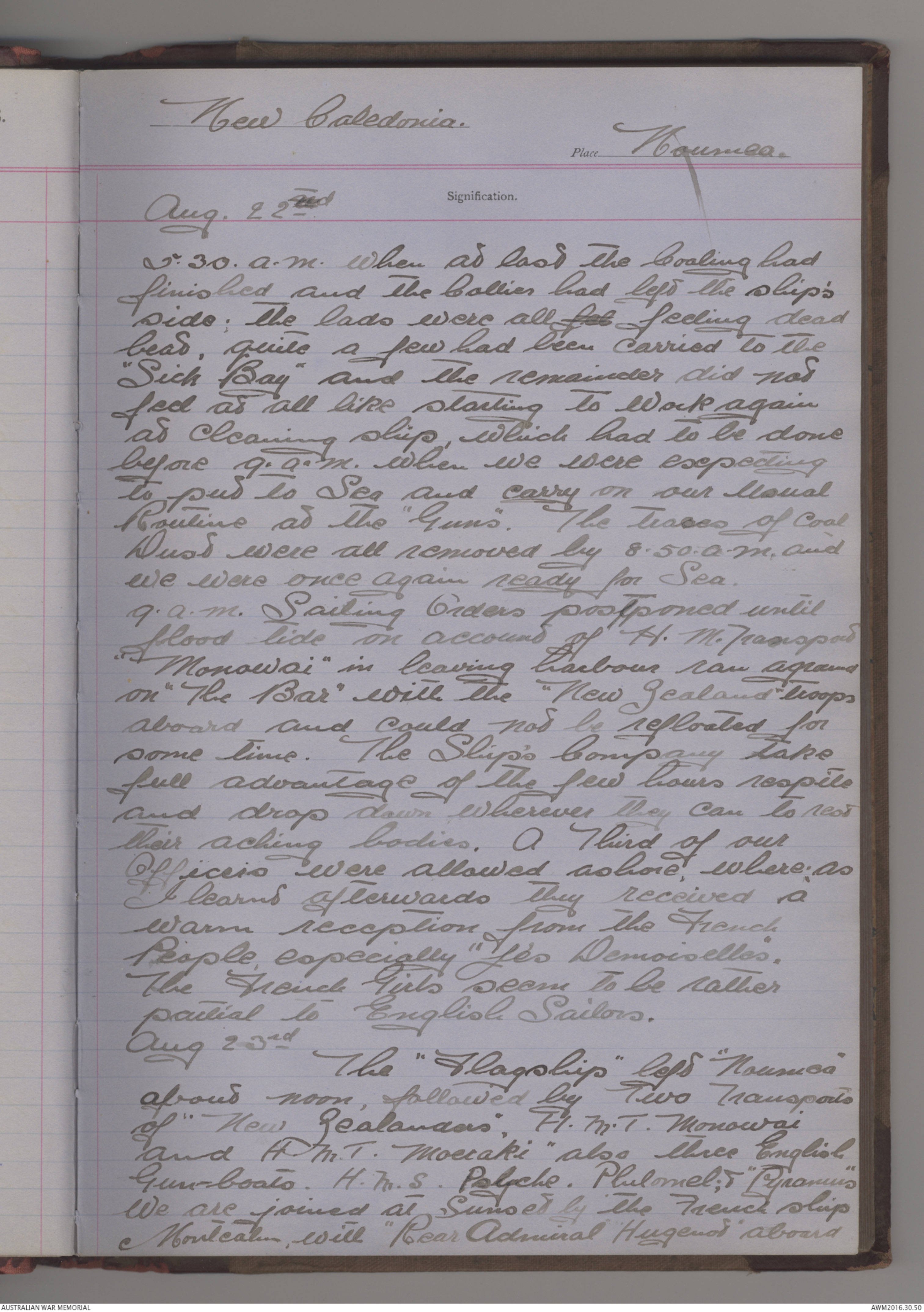 The "Flagship" left "Noumea"