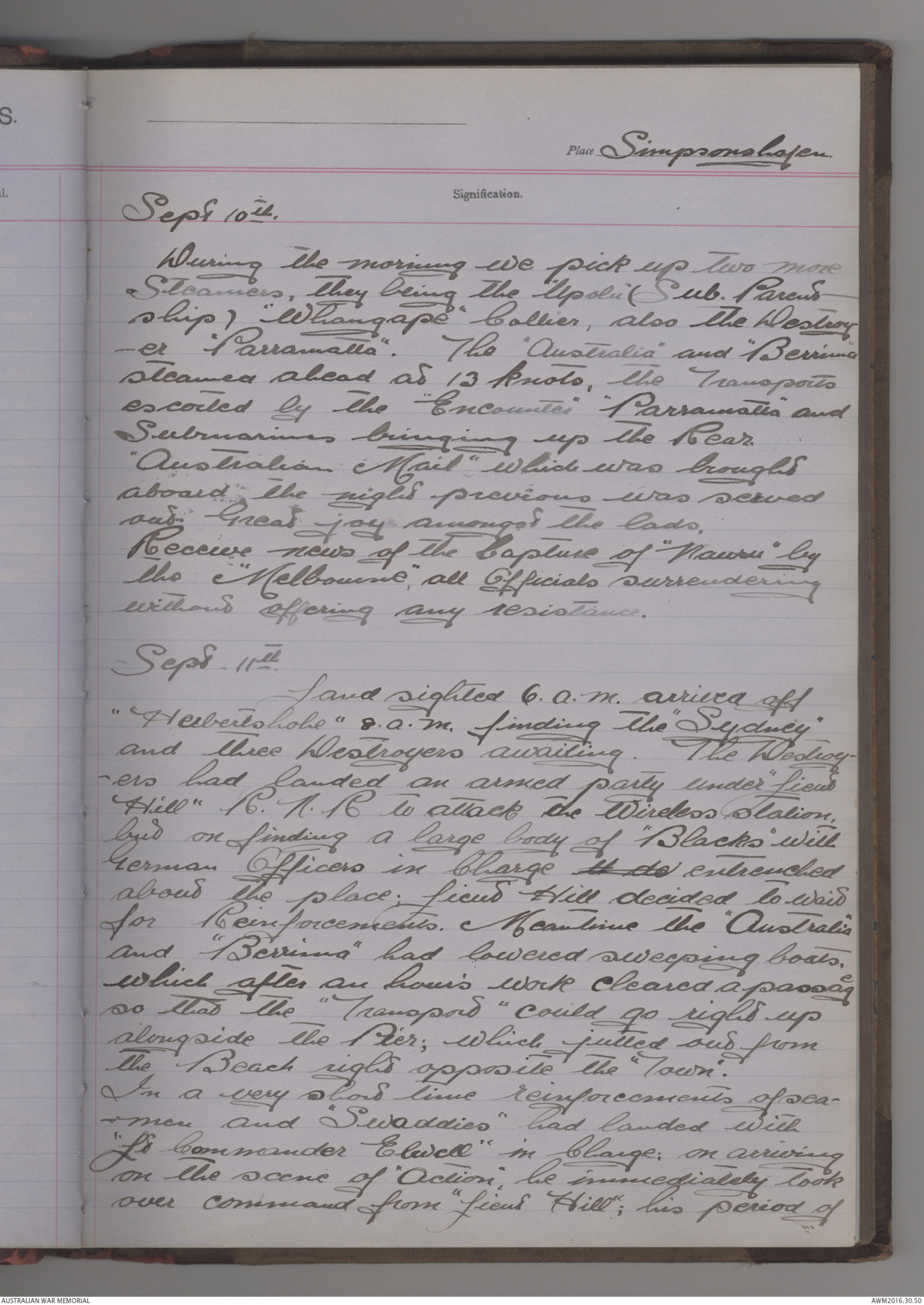 "Herbertshole" at 8.a.m. finding the "Sydney"