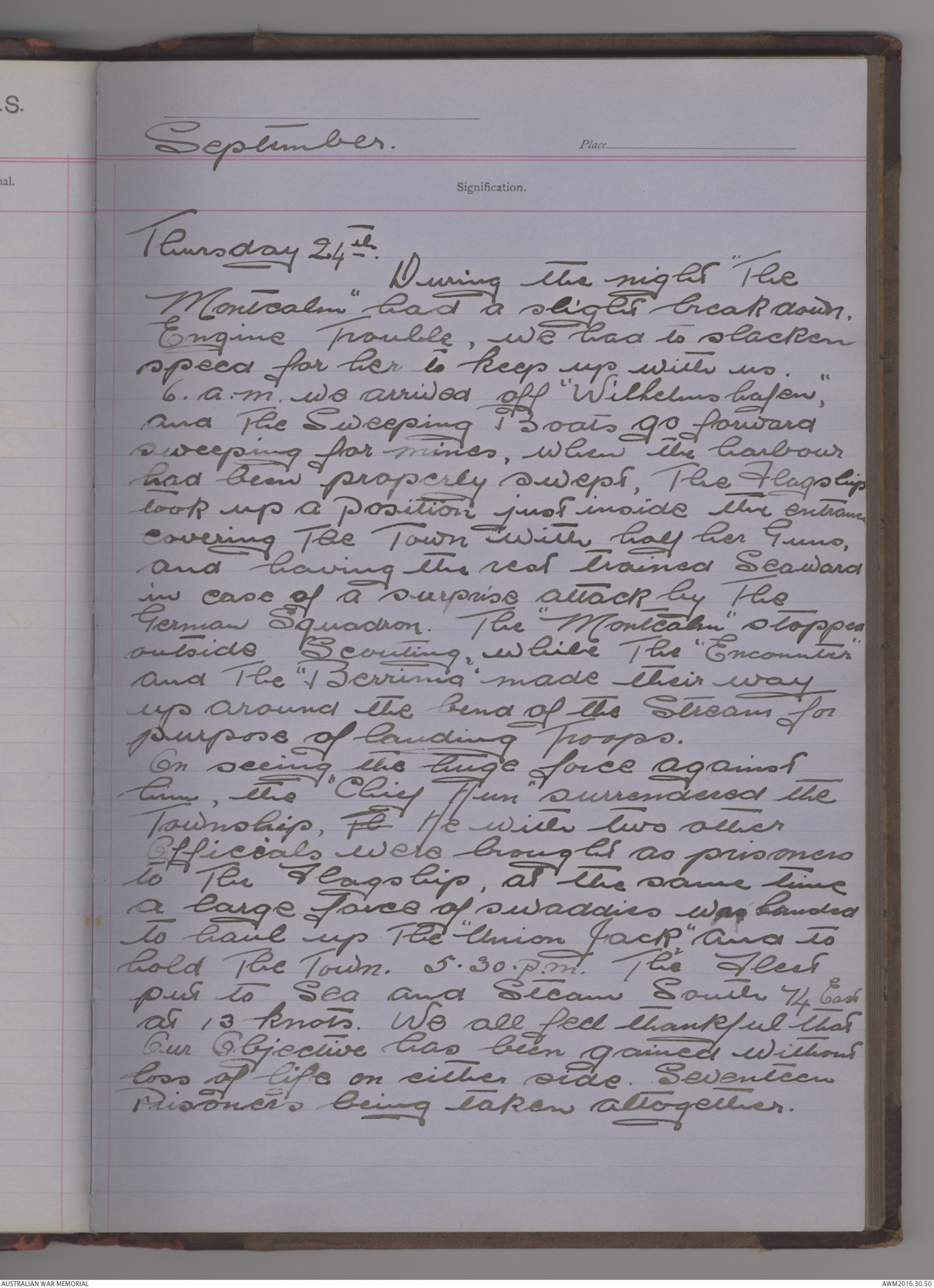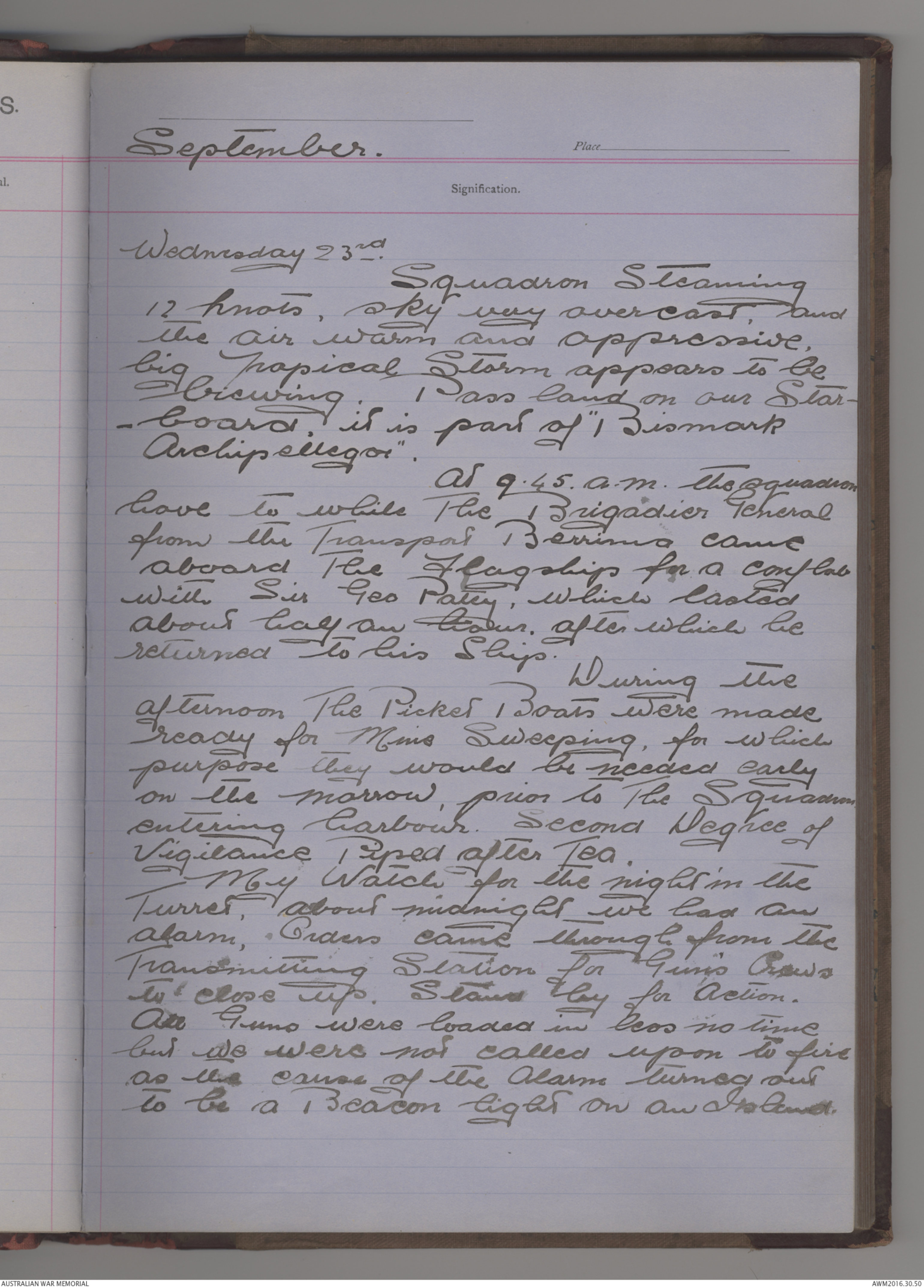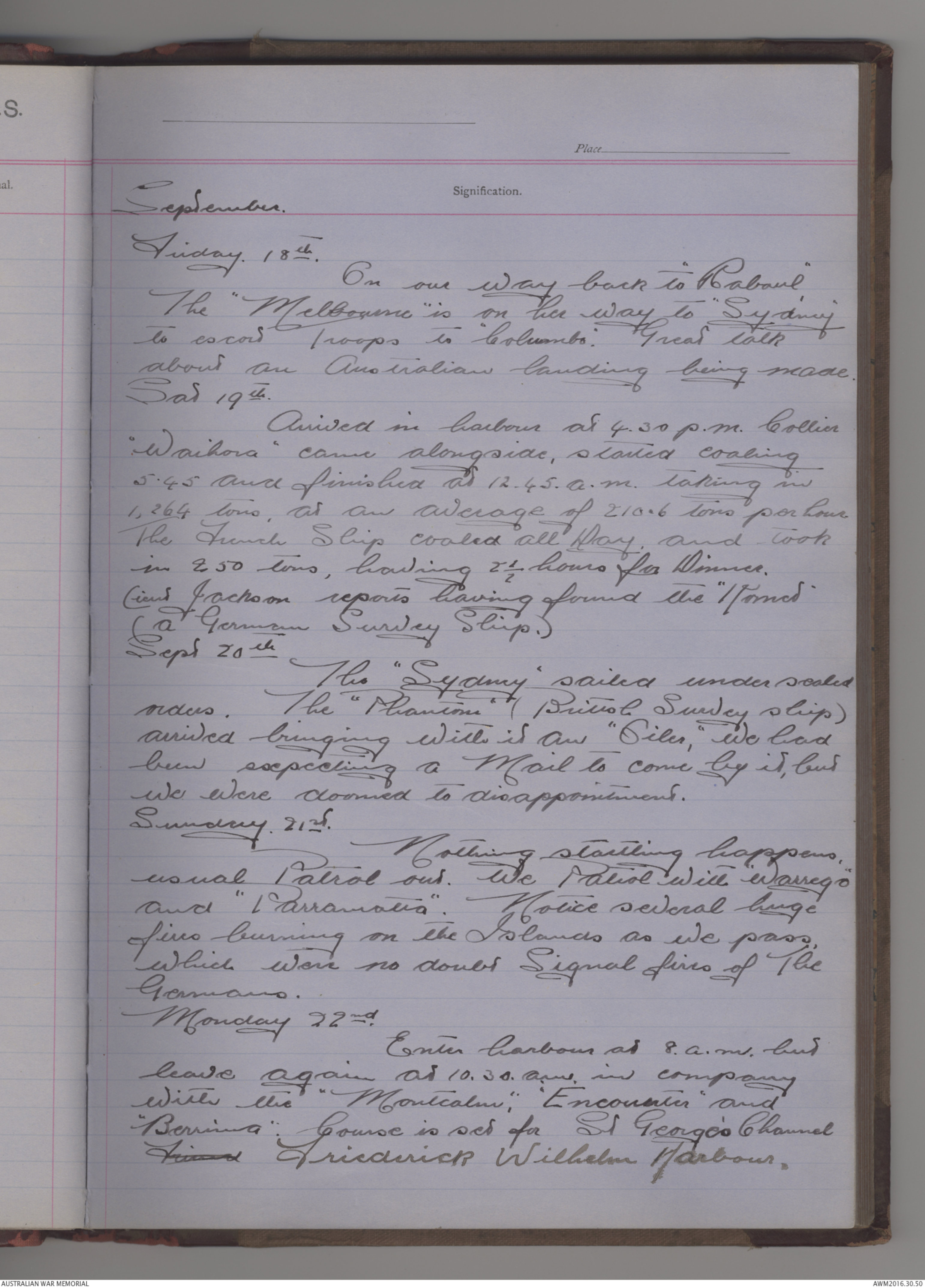"Berrima". Course is set for St George's ChannelFried Friederick Wilhelm Harbour.