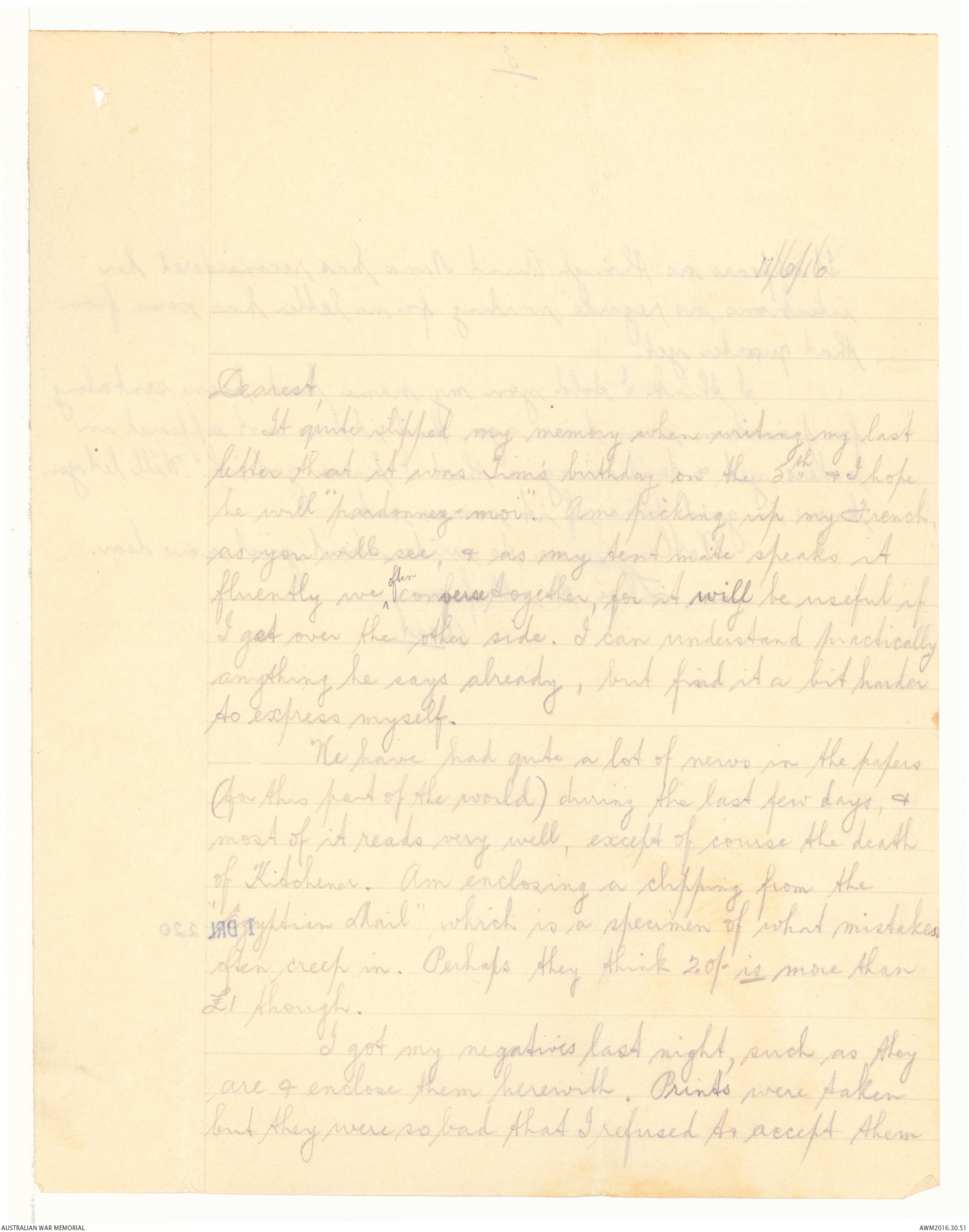 Letters from Albert Charles Cox to his mother, 1915-1916 - Part 12
