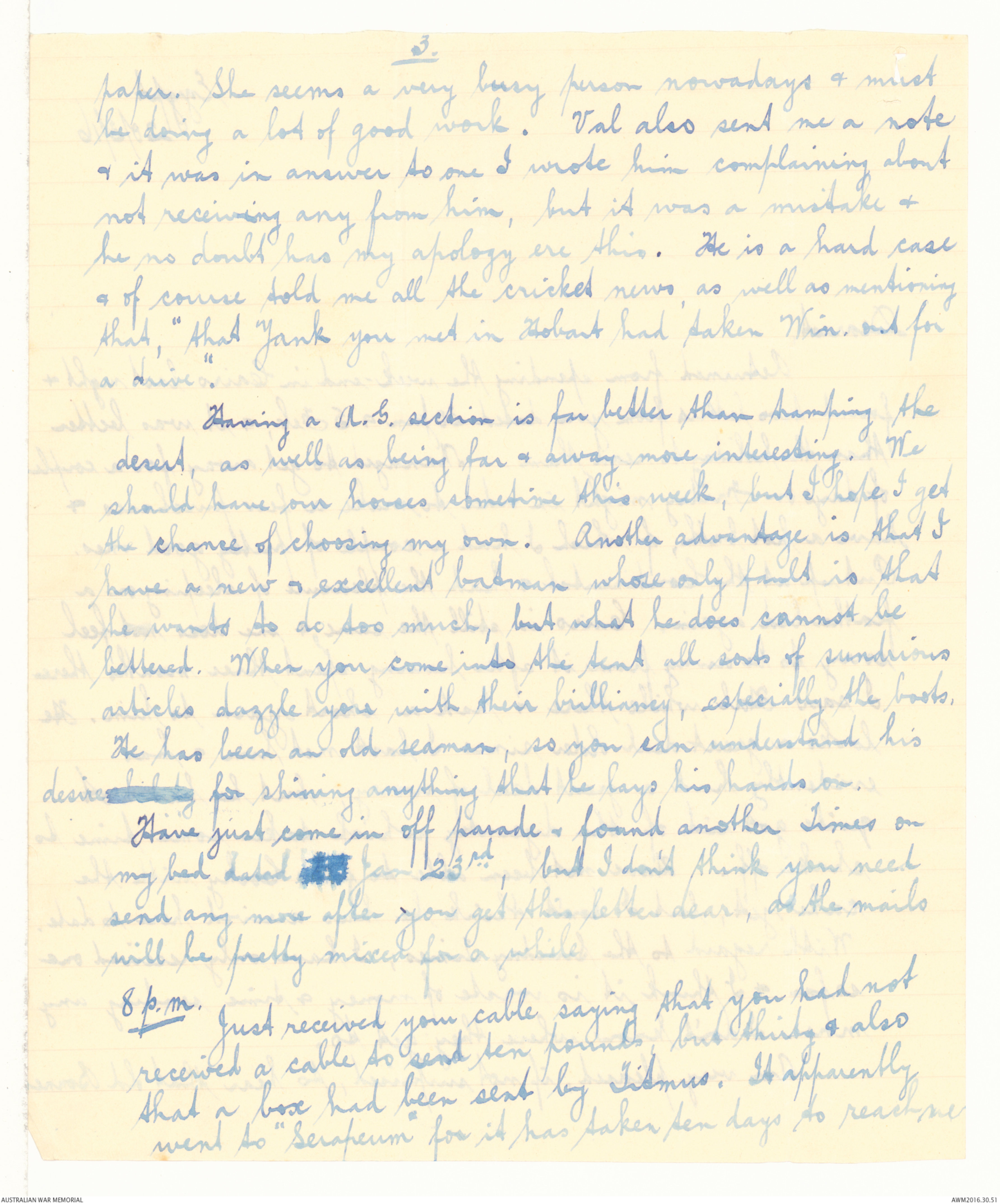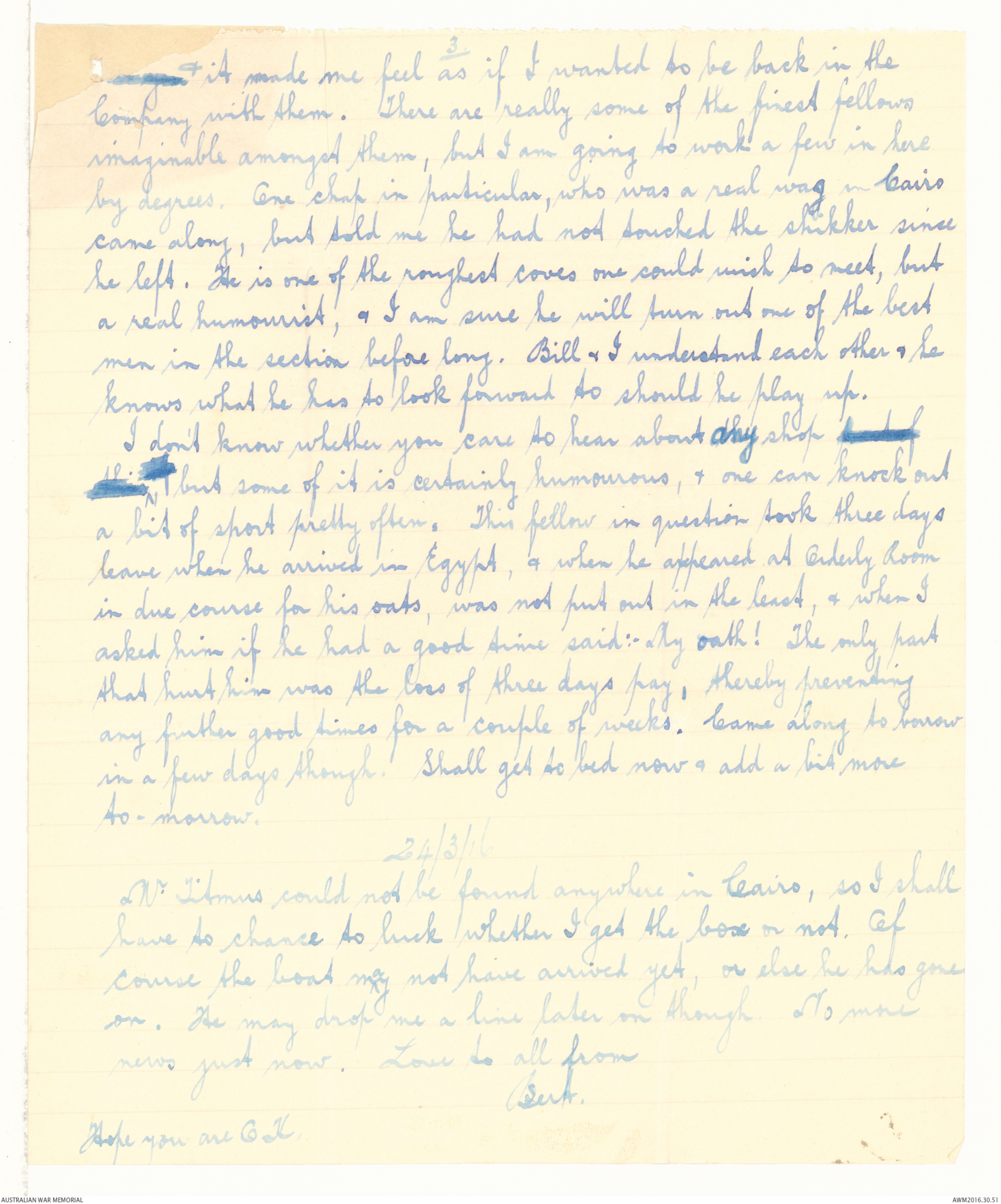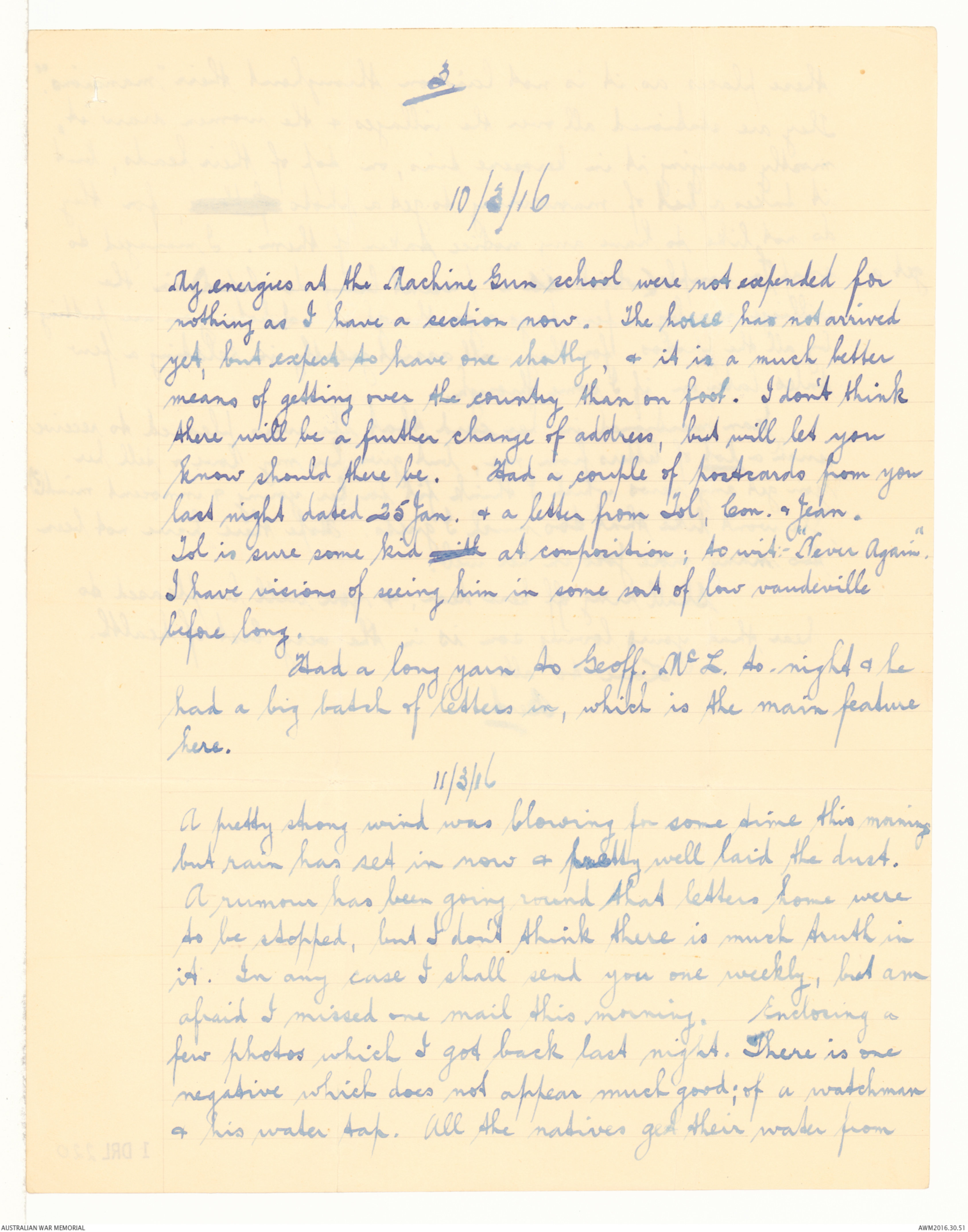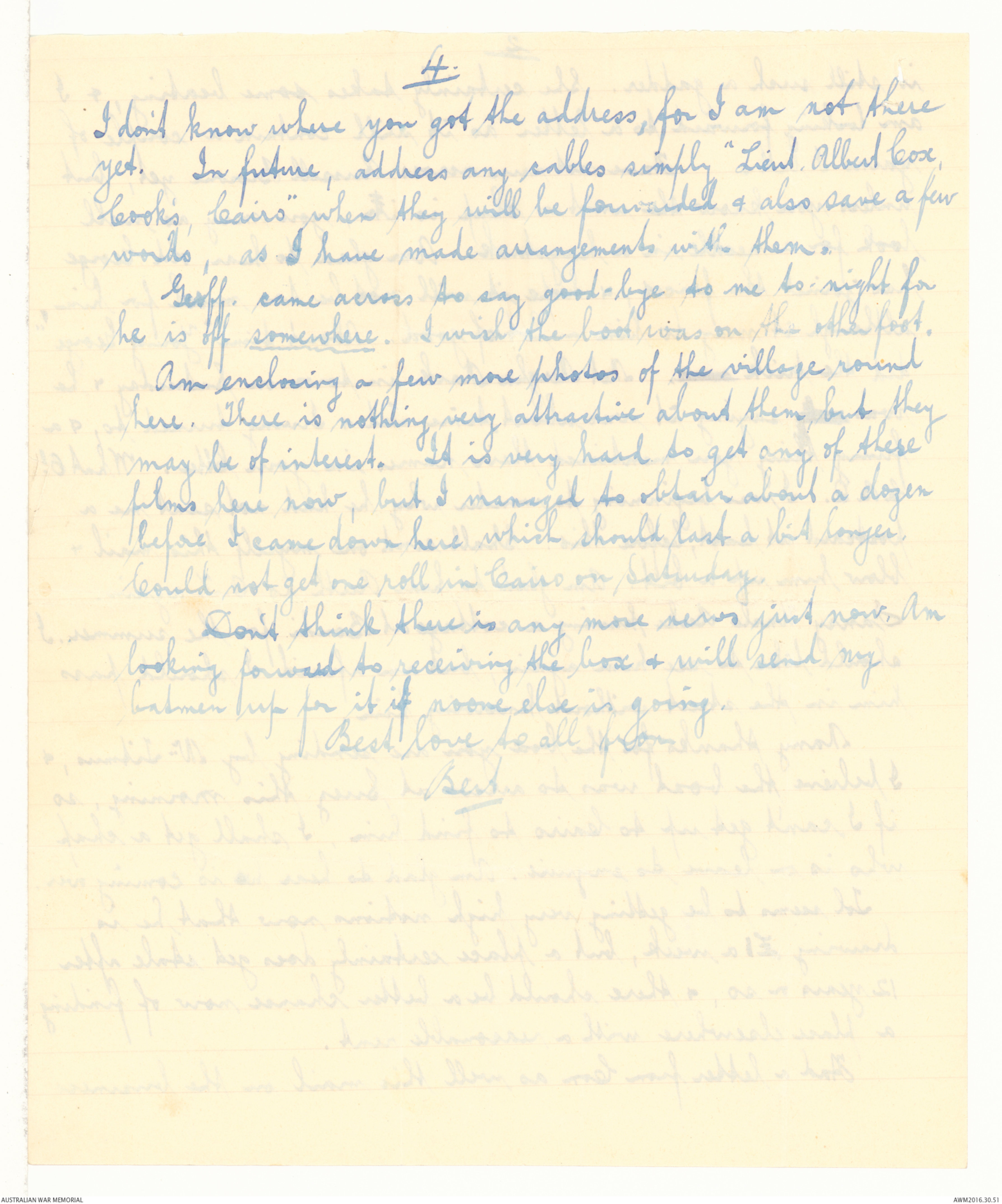 Letters from Albert Charles Cox to his mother, 1915-1916 - Part 8