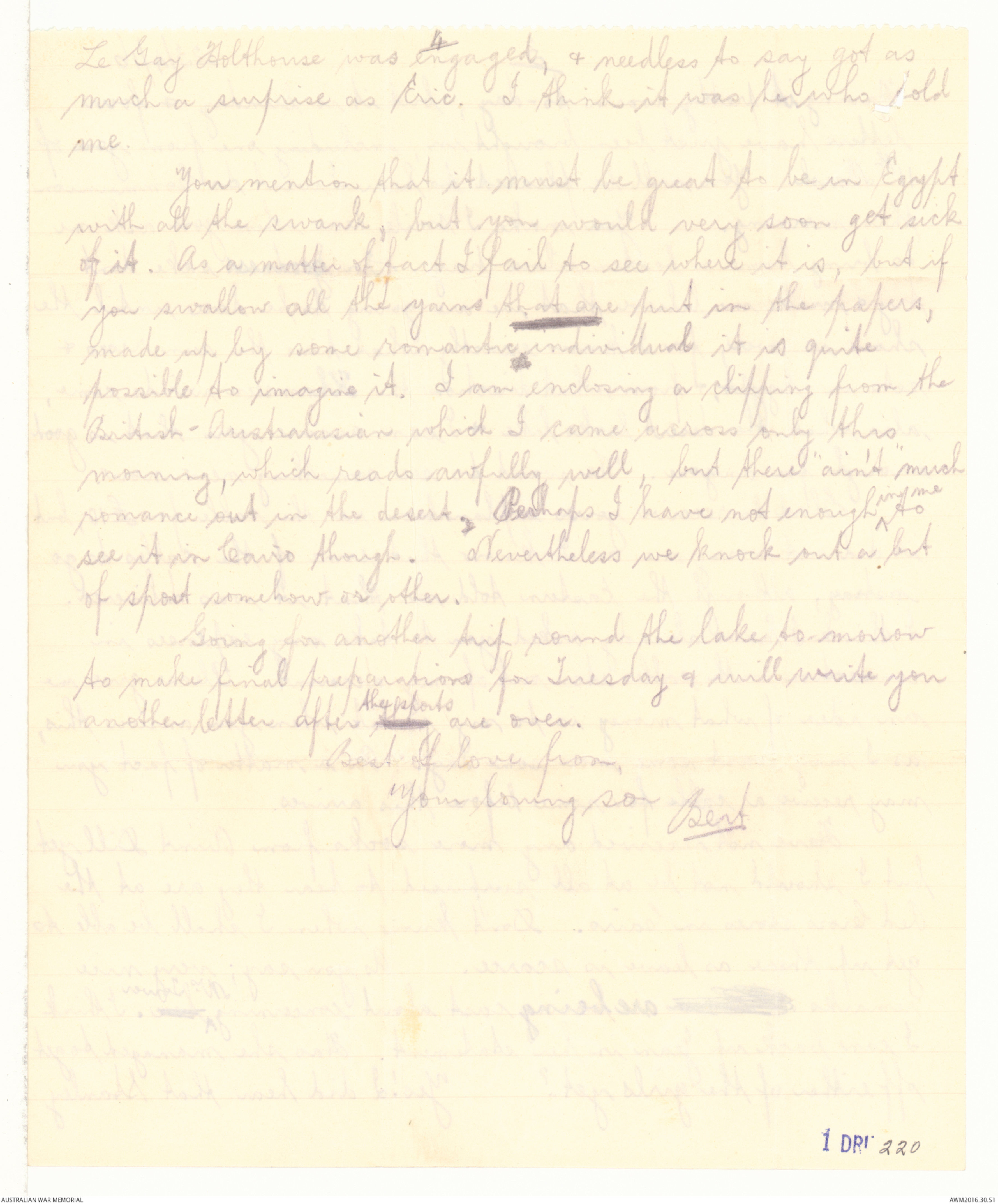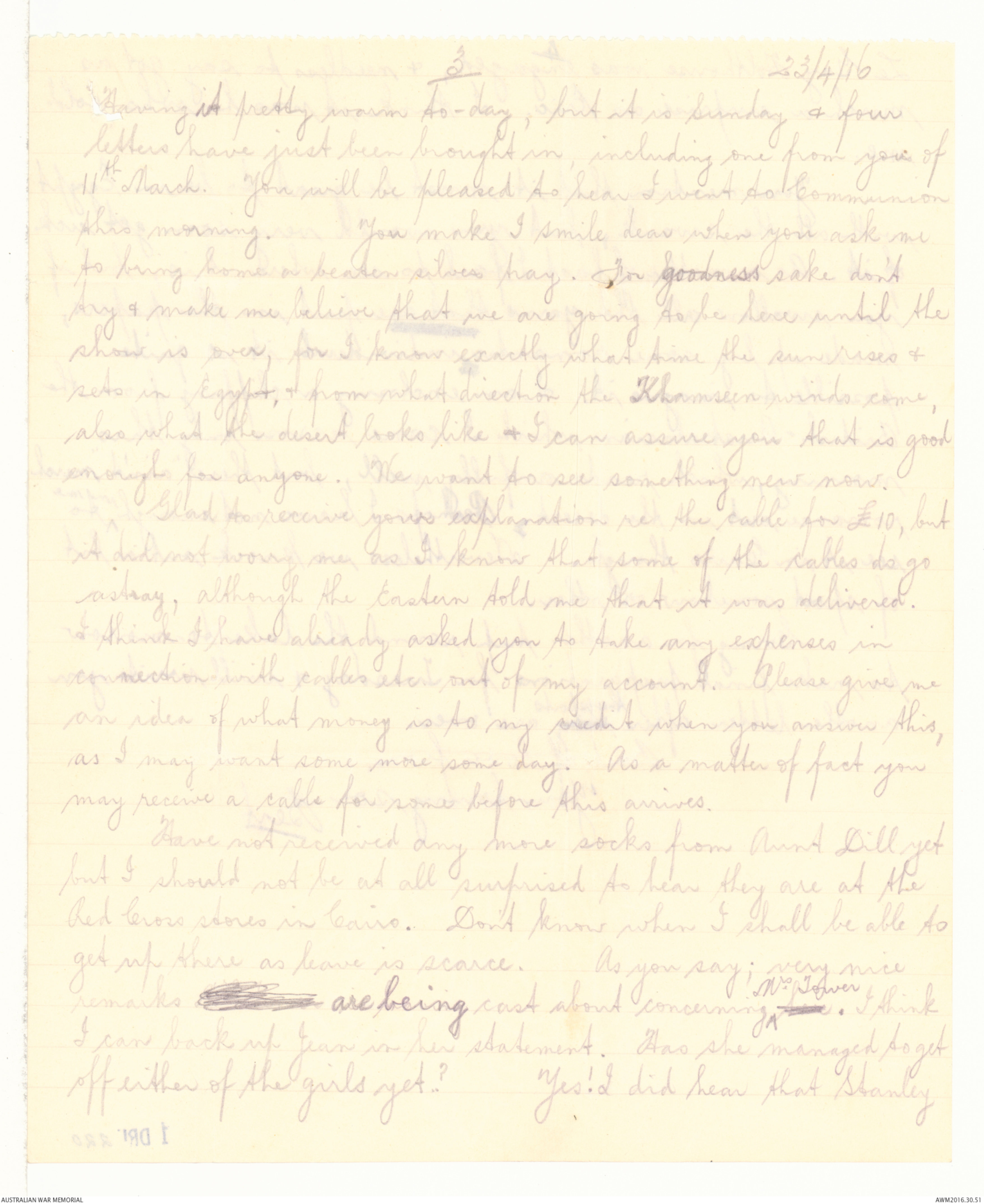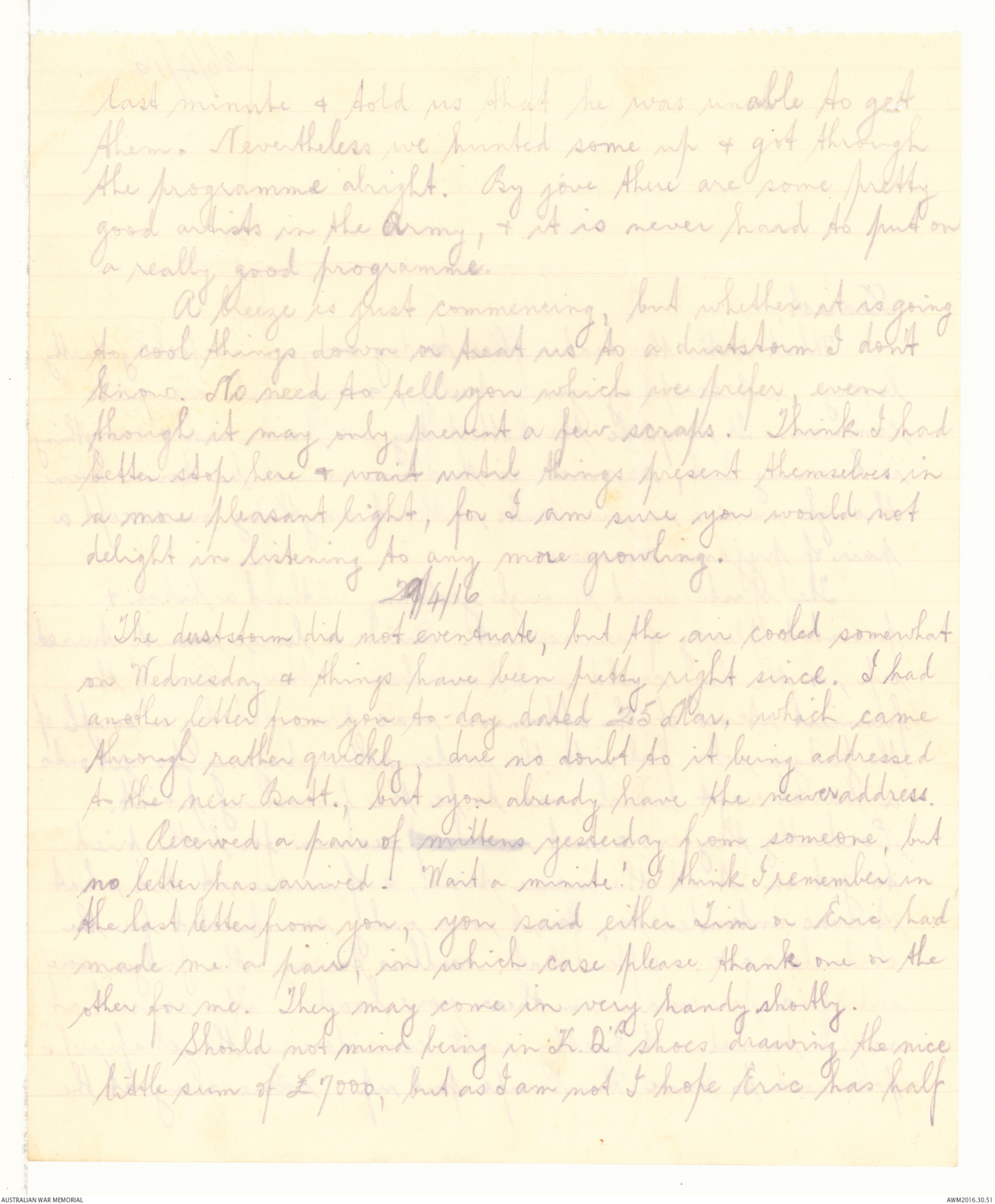 Letters from Albert Charles Cox to his mother, 1915-1916 - Part 10
