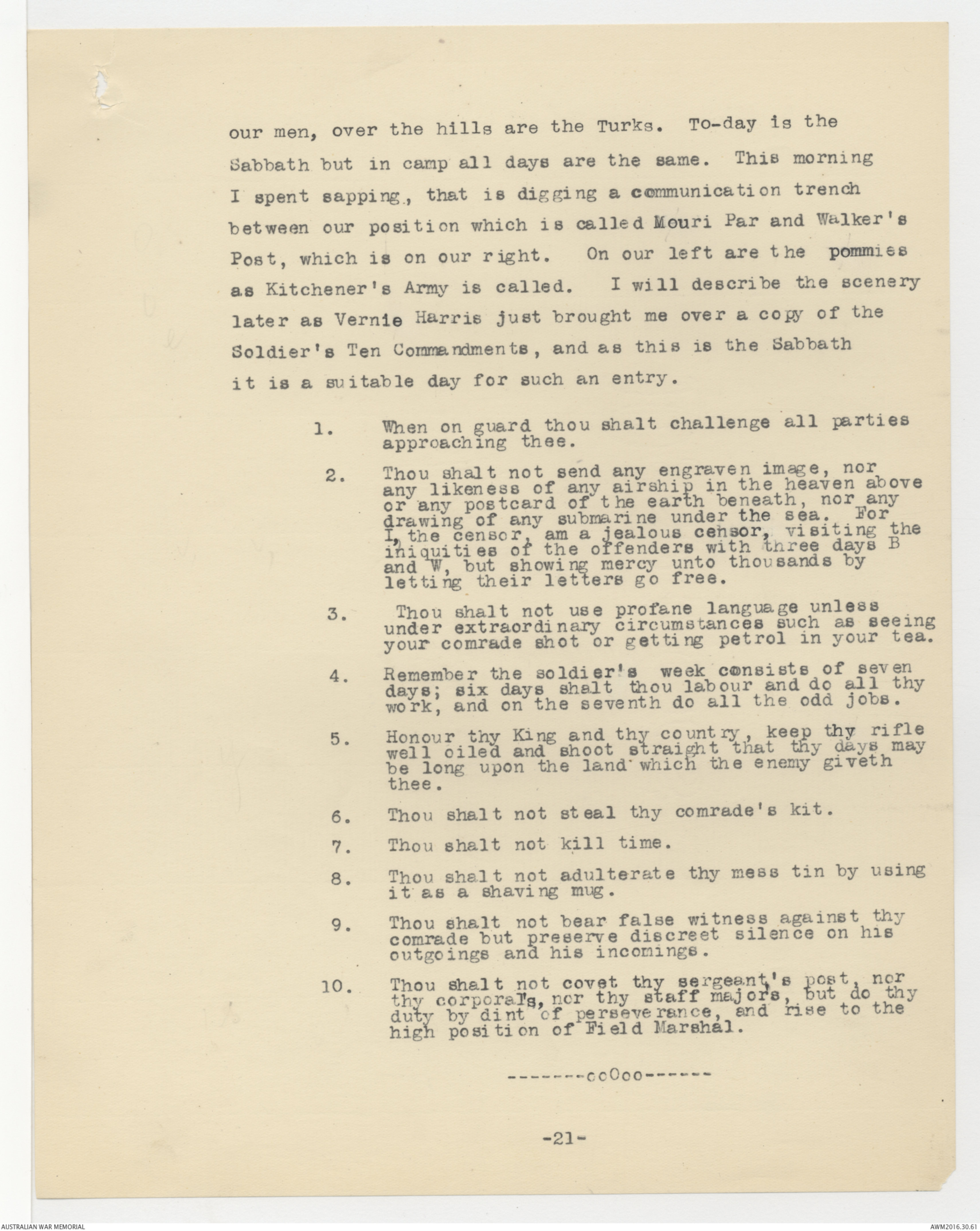 Typescript copy of diary entries of Percy Wellesley Chapman, 1 July 1915 to 30 June 1916 - Part 3