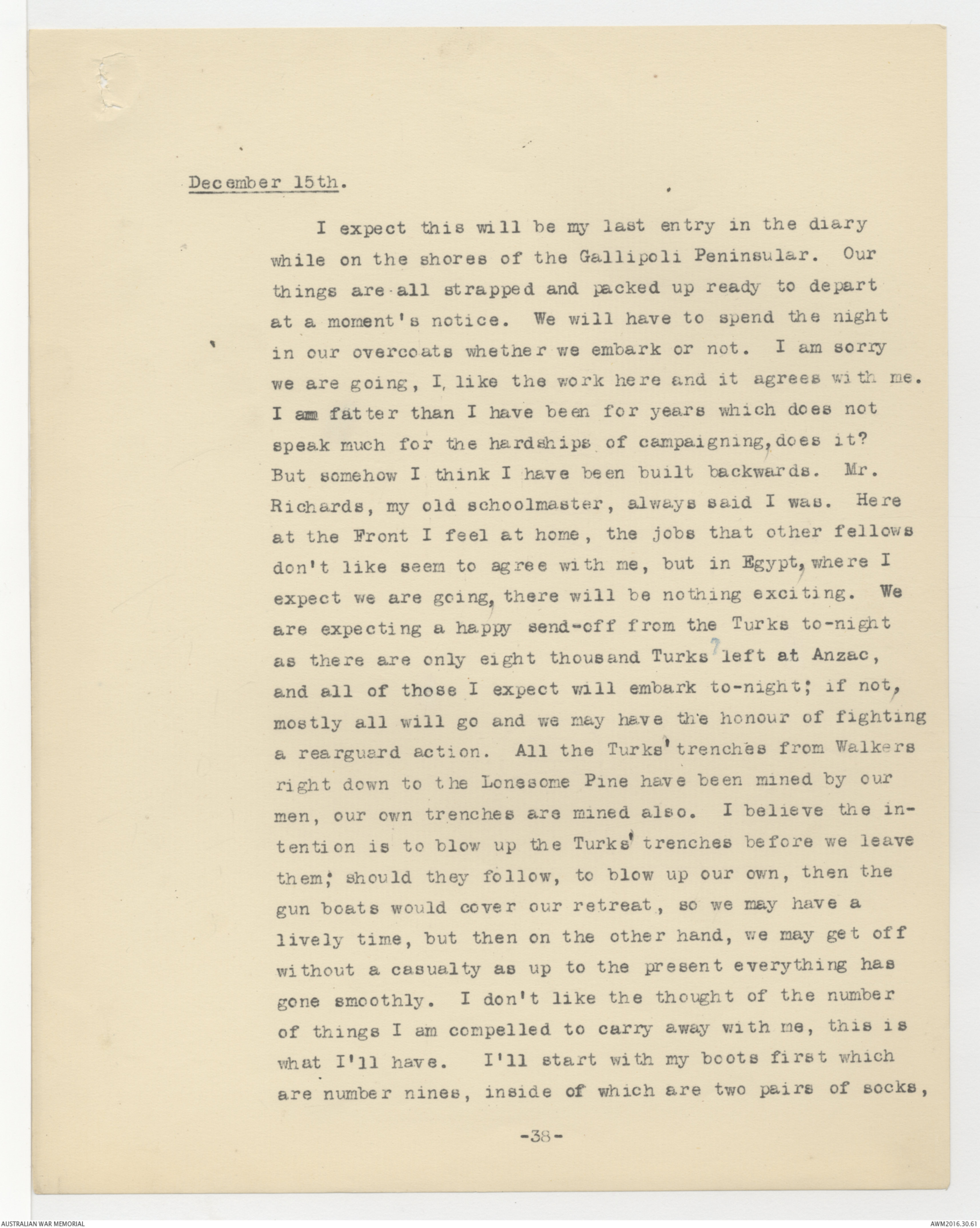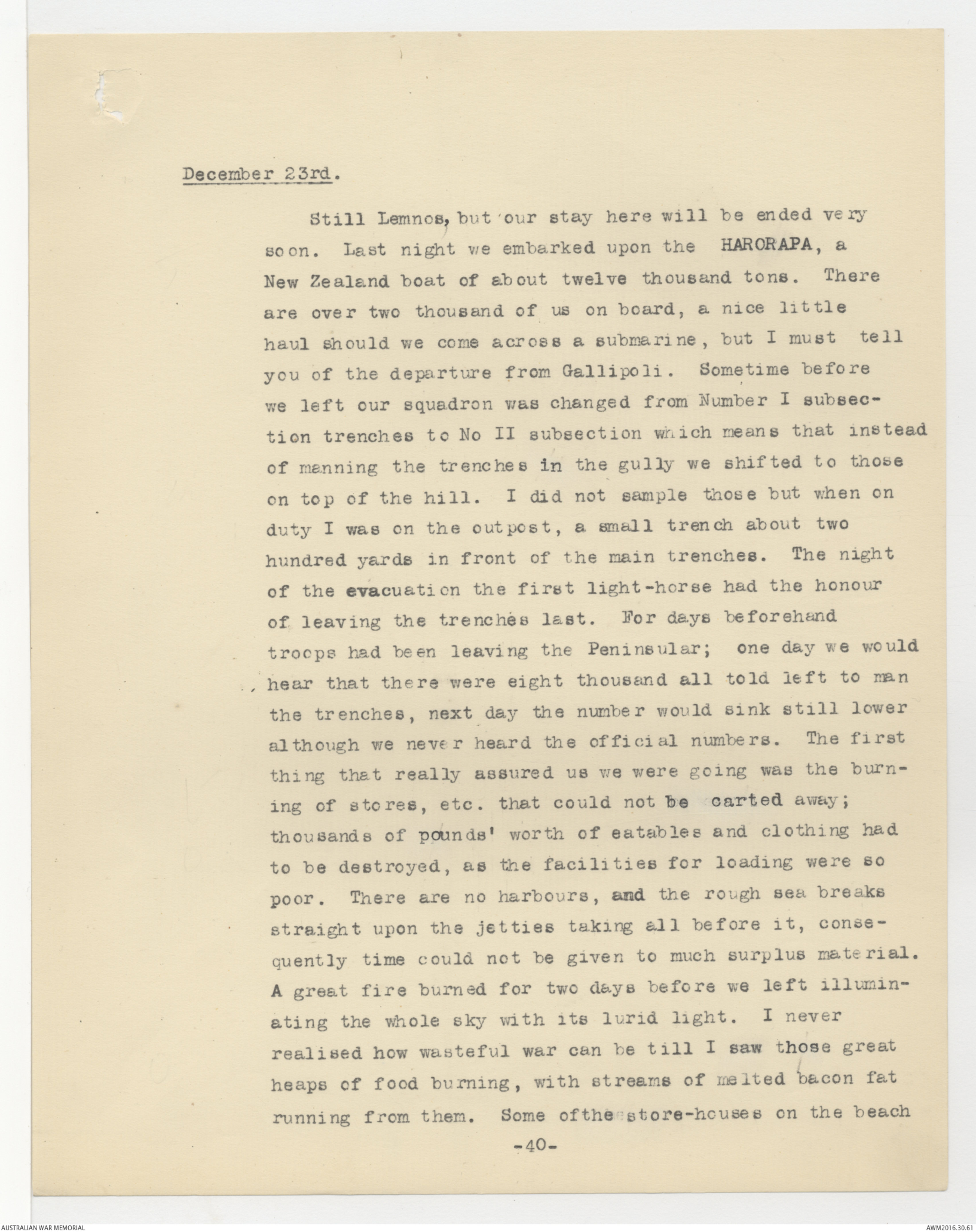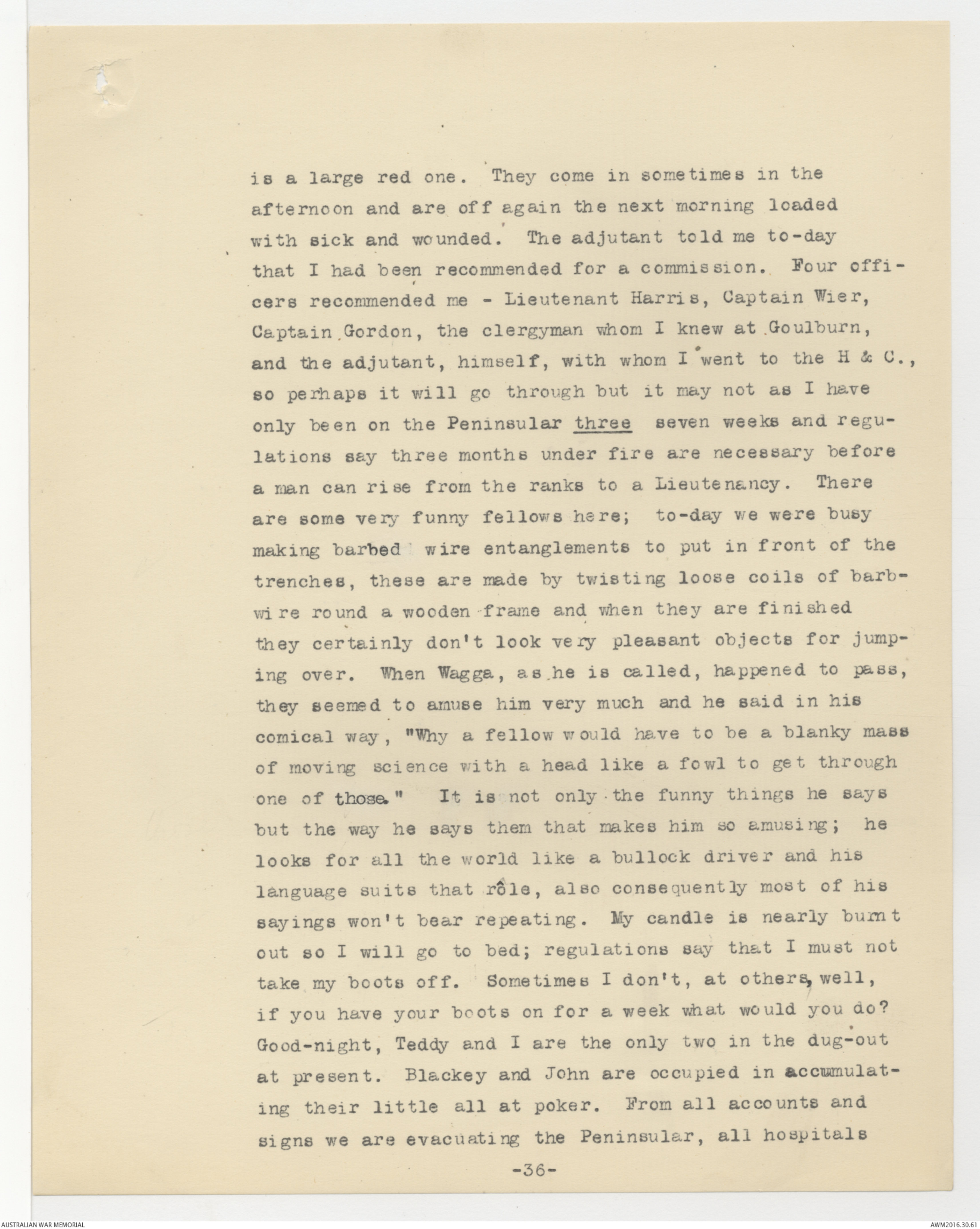 Typescript copy of diary entries of Percy Wellesley Chapman, 1 July 1915 to 30 June 1916 - Part 4