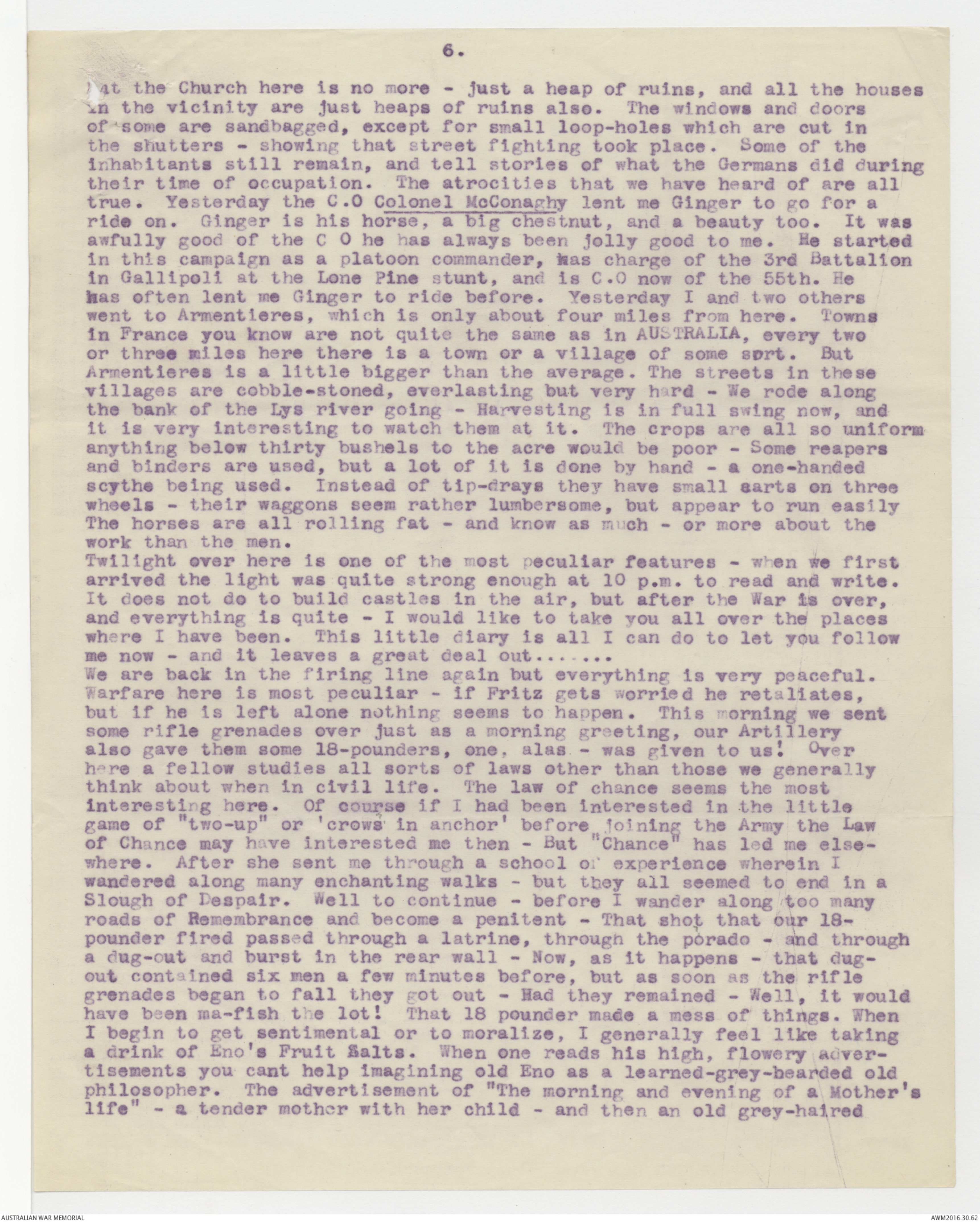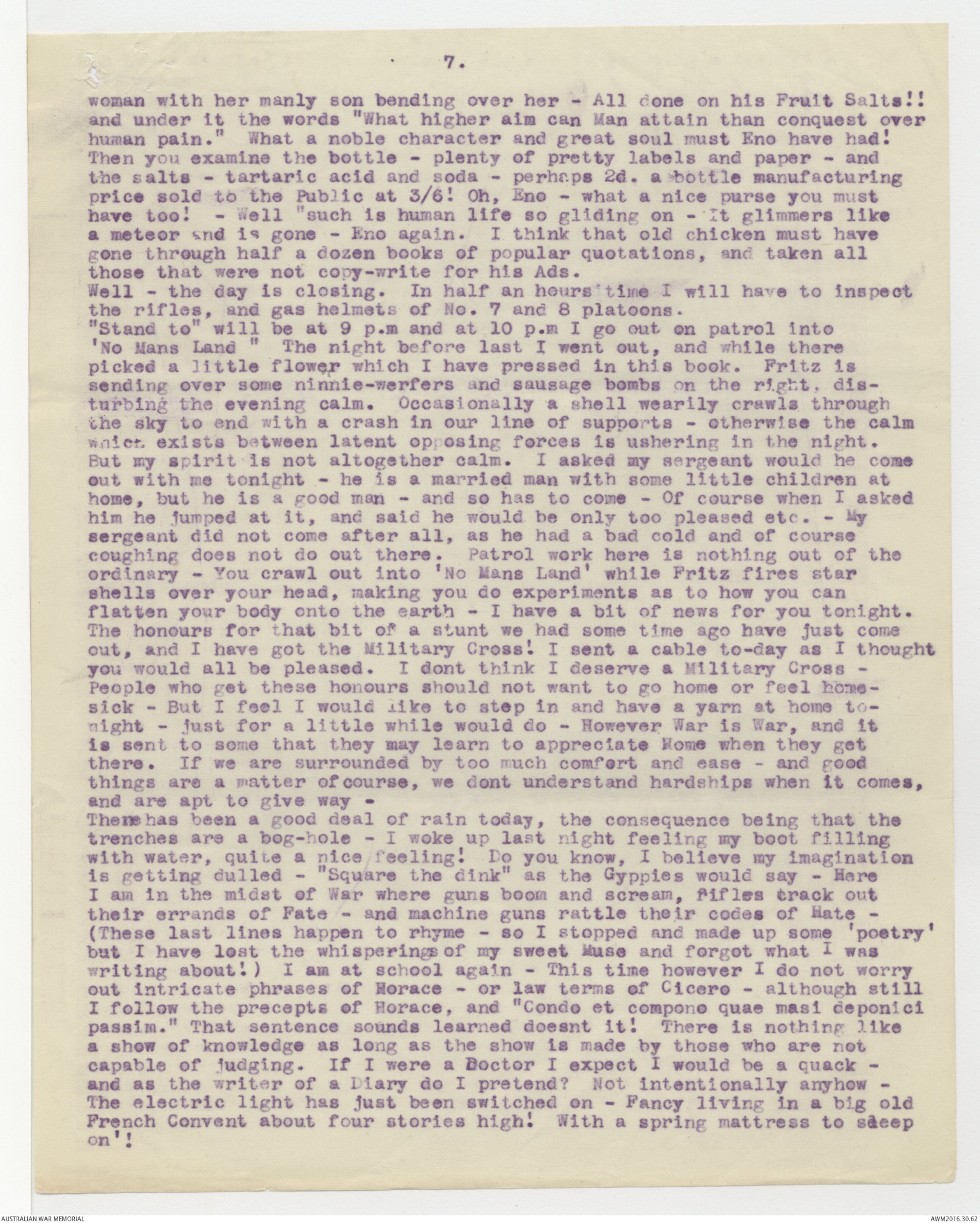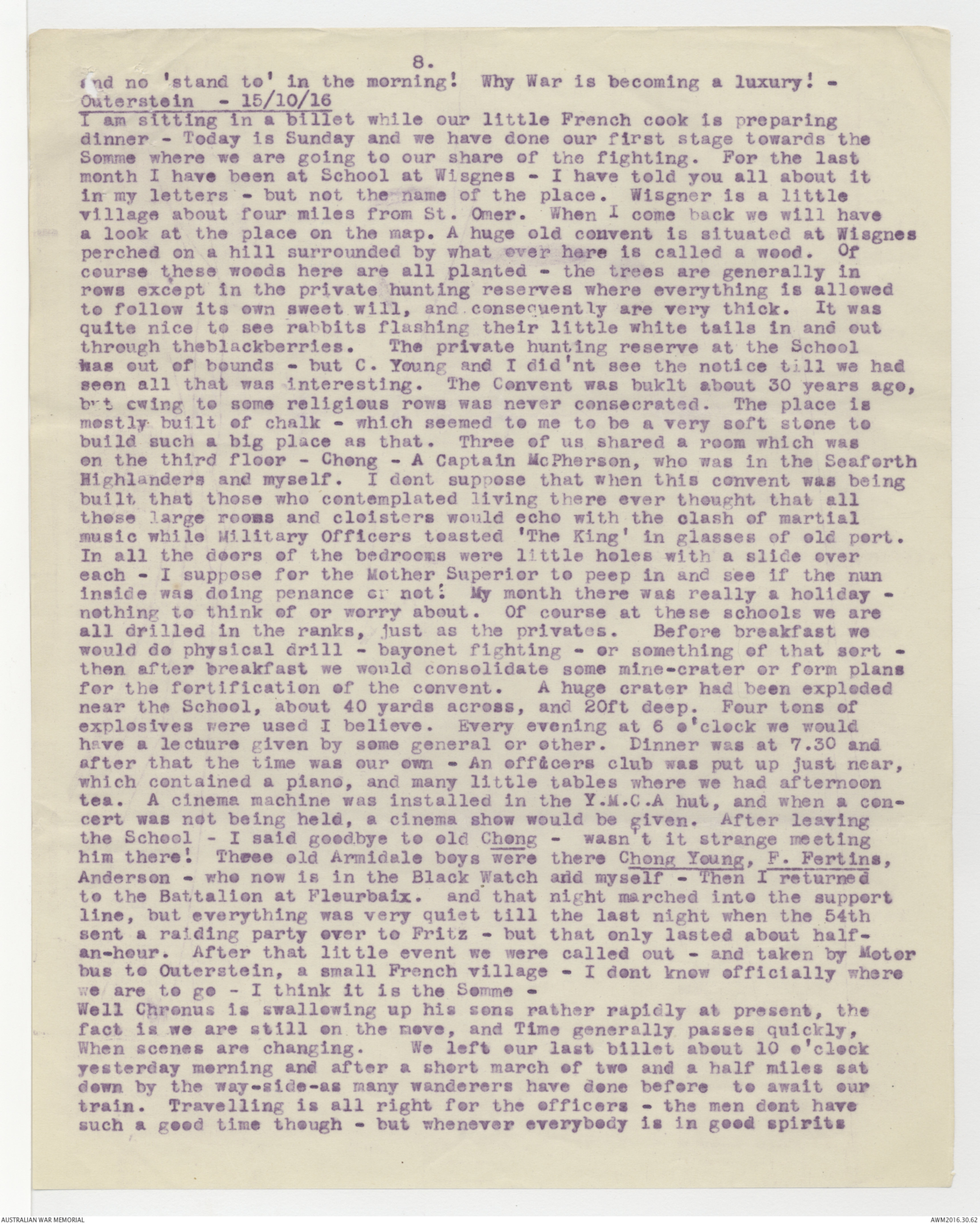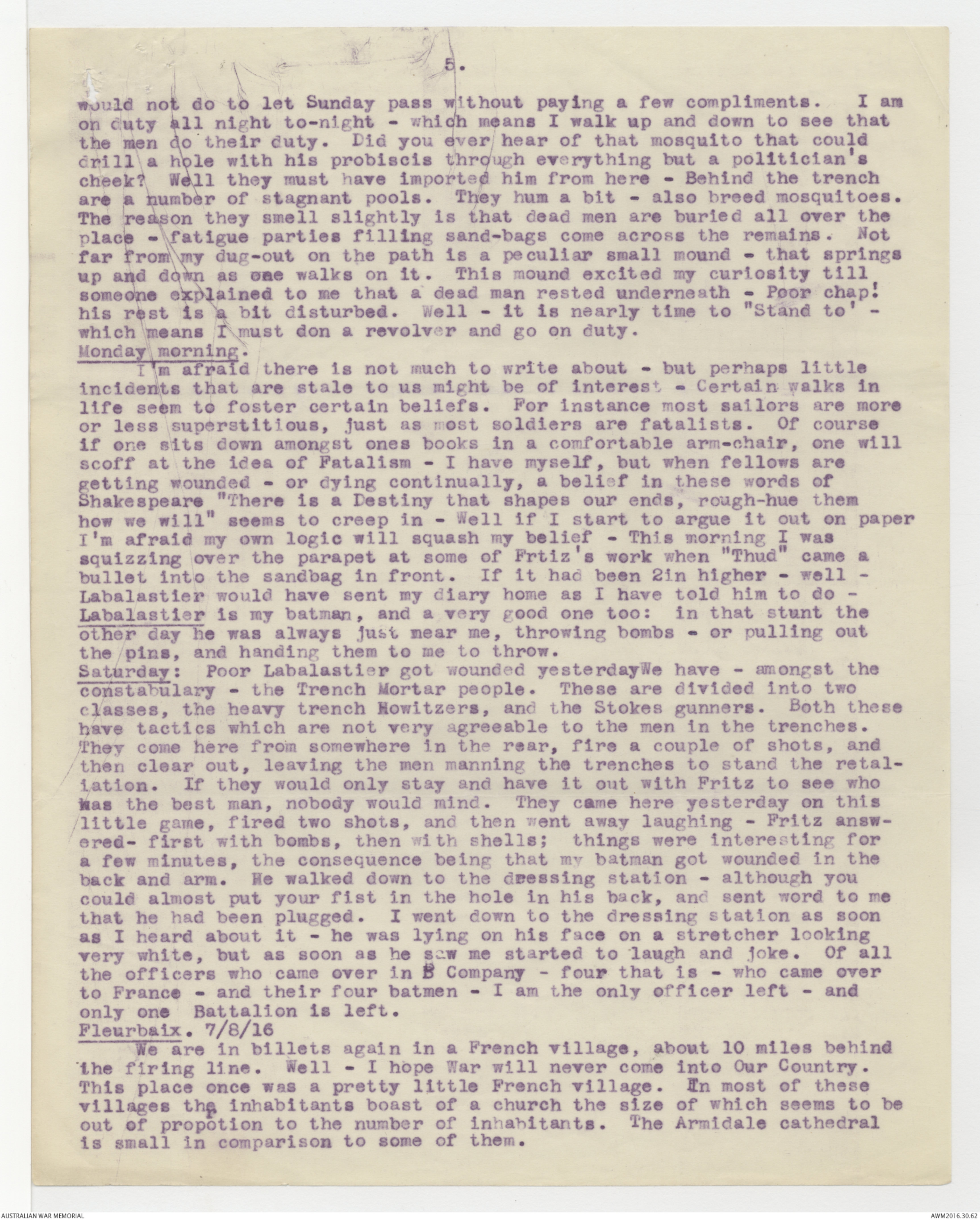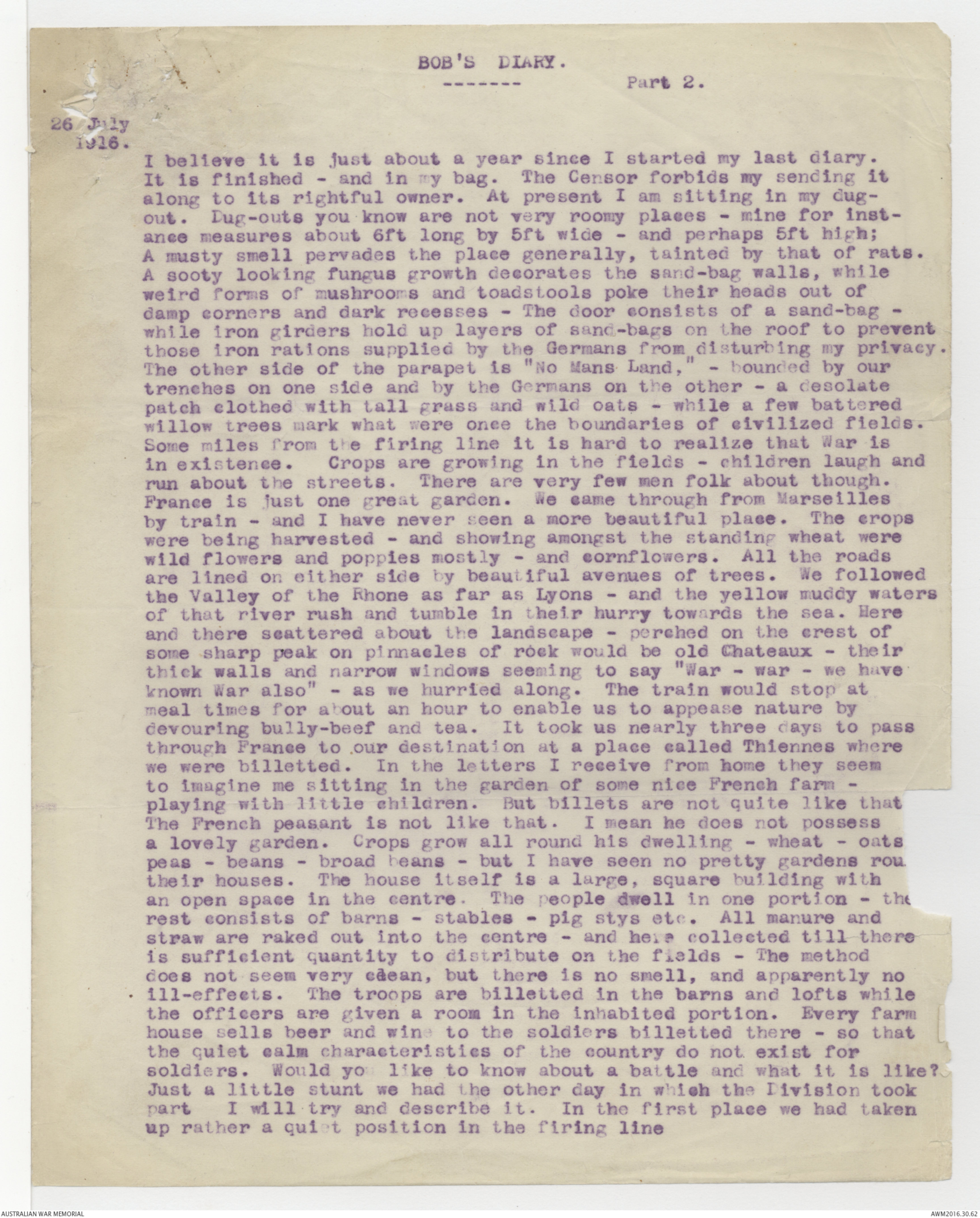 Typescript copy of diary entries of Percy Wellesley Chapman, 26 July 1916 to 9 March 1917 - Part 1