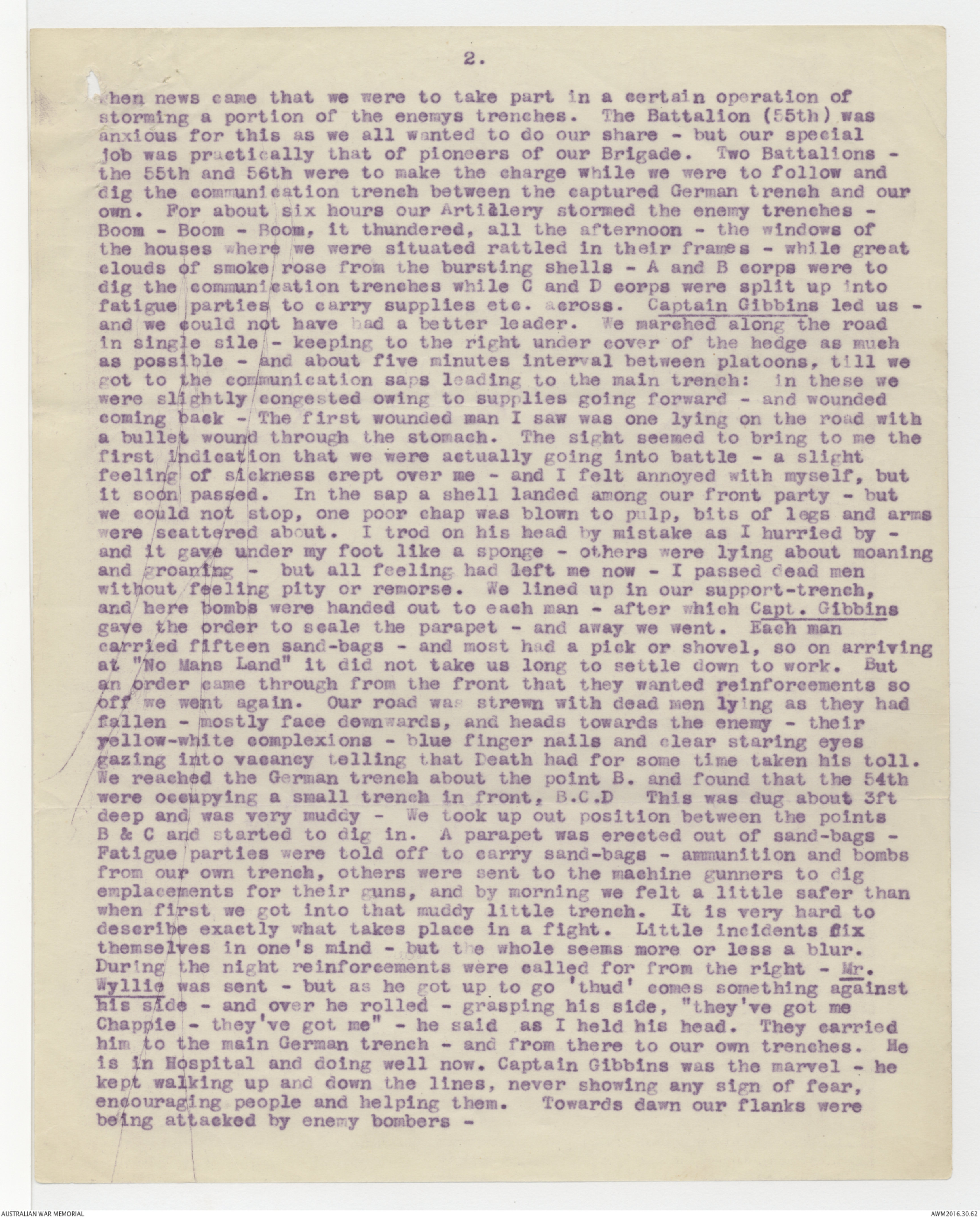 fatigue parties to carry supplies etc. across. Captain Gibbins led us -