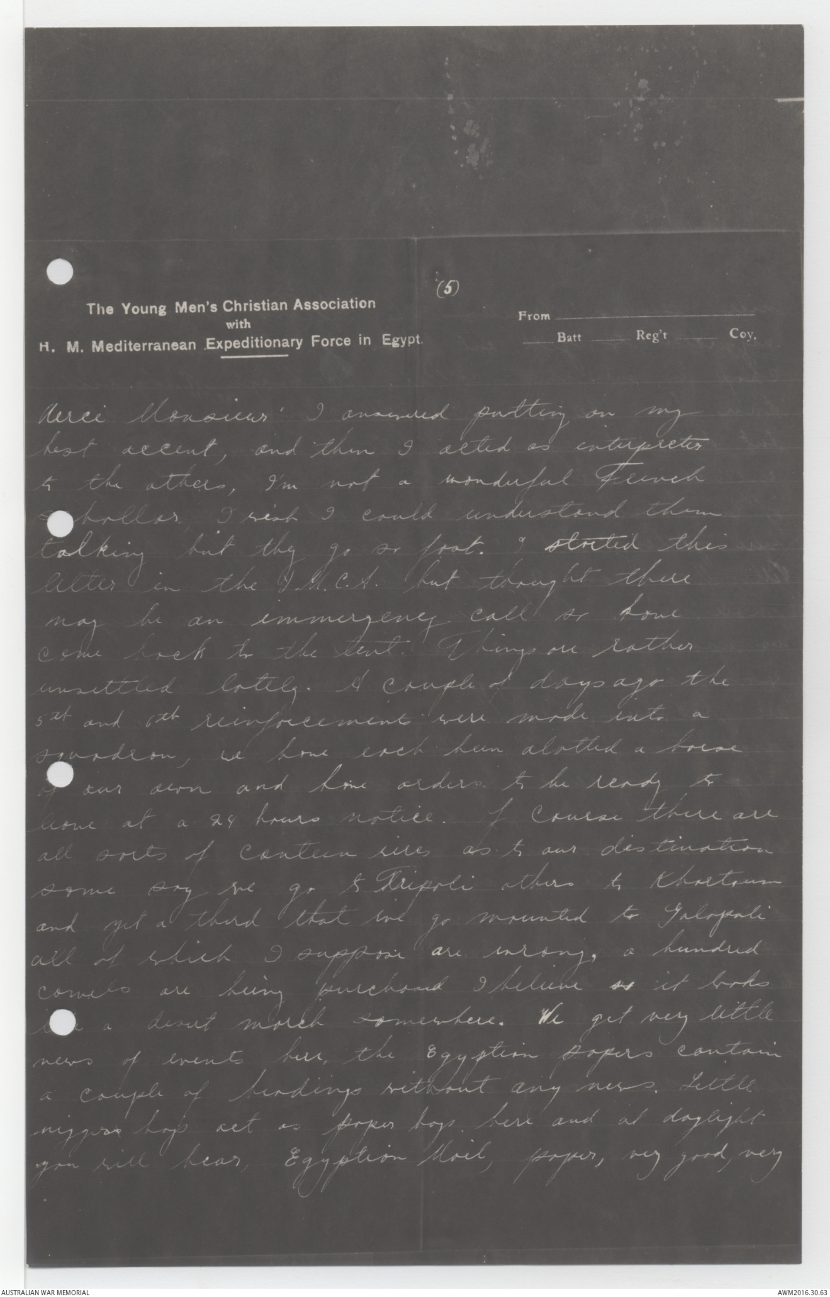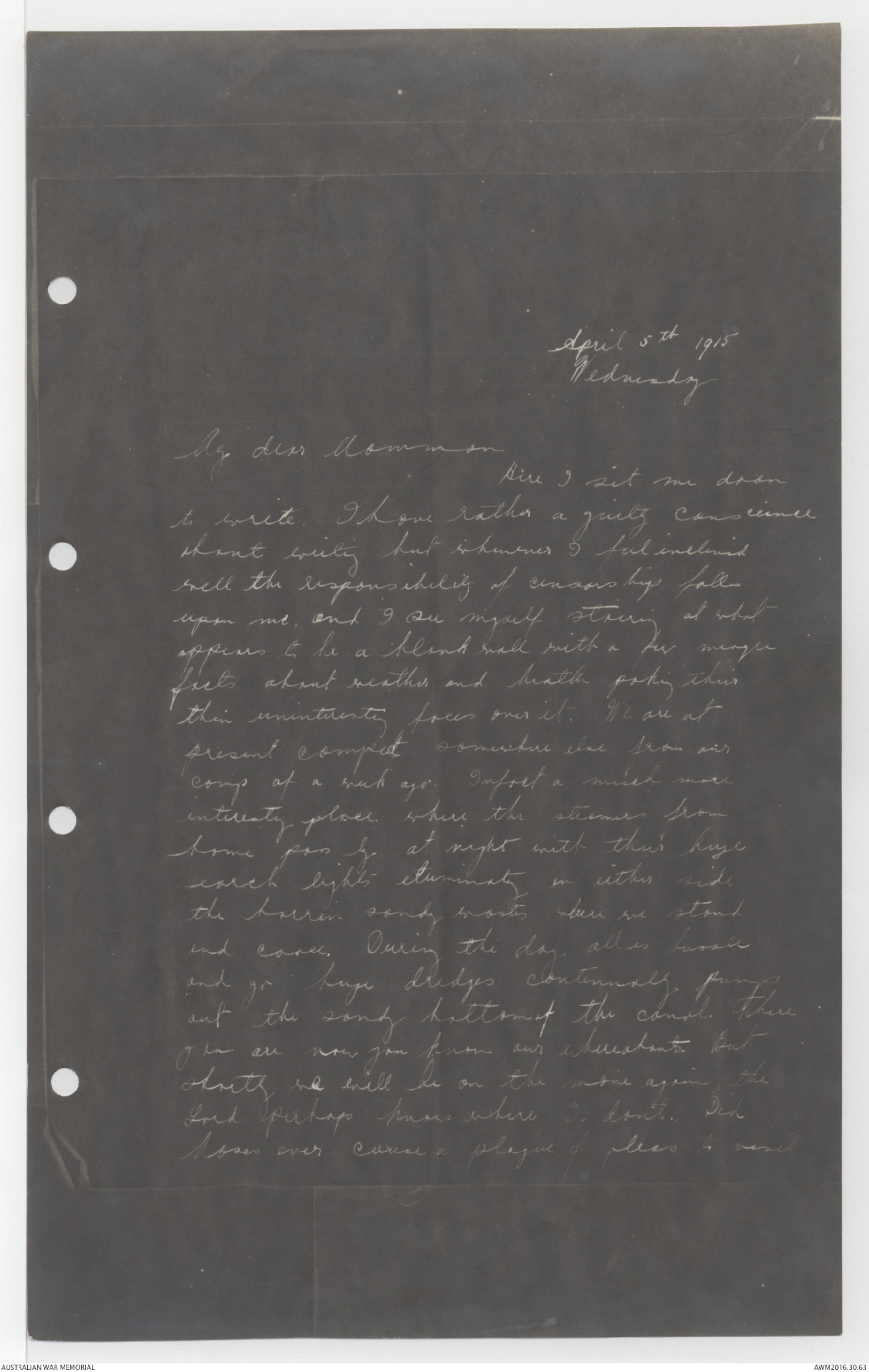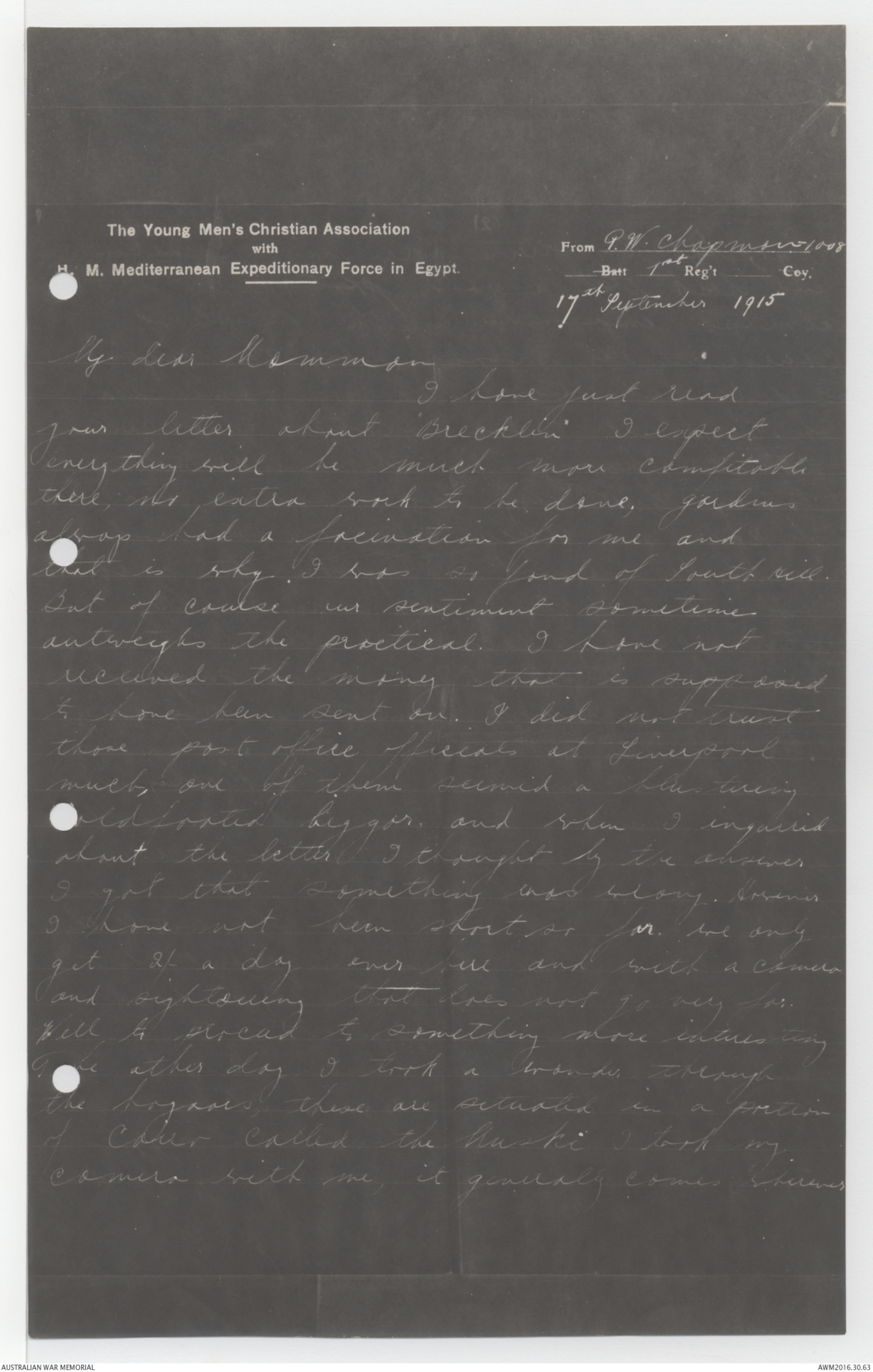 Photostat copy of letters from Percy Wellesley Chapman to his mother, 5 April 1915 to 1 February 1917 - Part 1