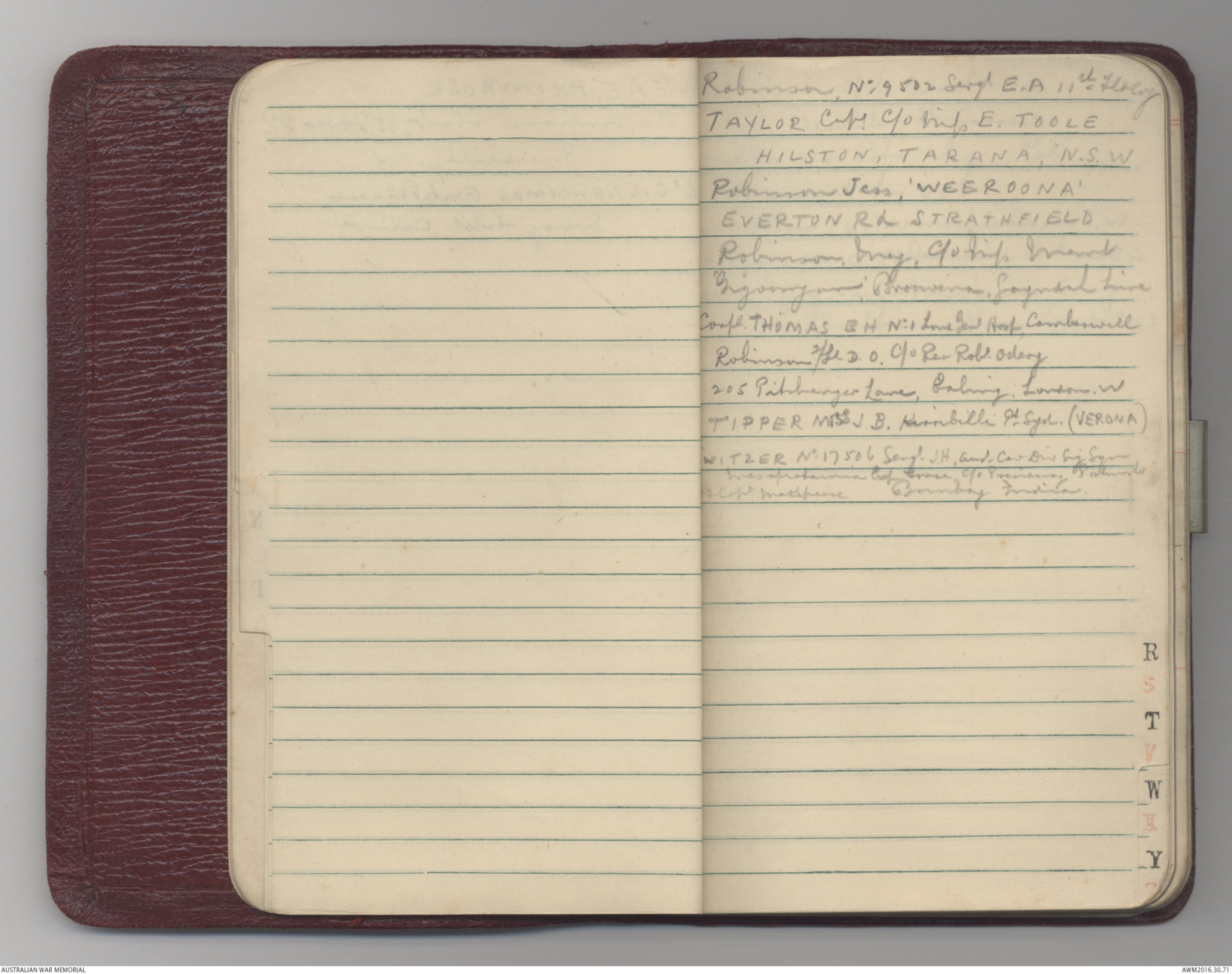 Robinson 2/Lt D.O. c/o Rev Robt [[Ordery?]]|205 Pishanger Lane, Ealing, London, W