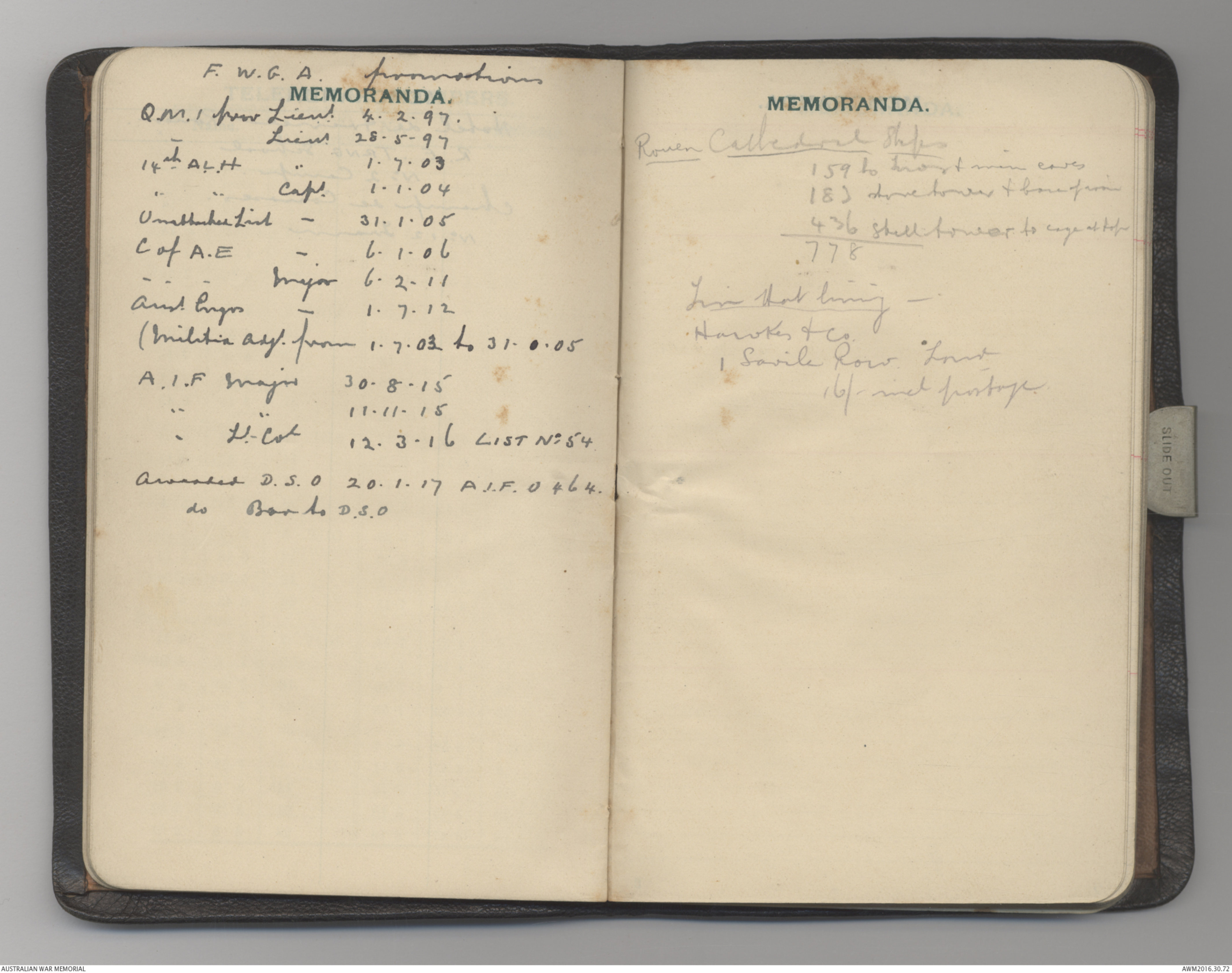 Awarded D.S.O 20. 1. 17 A.I.F. 0 464.