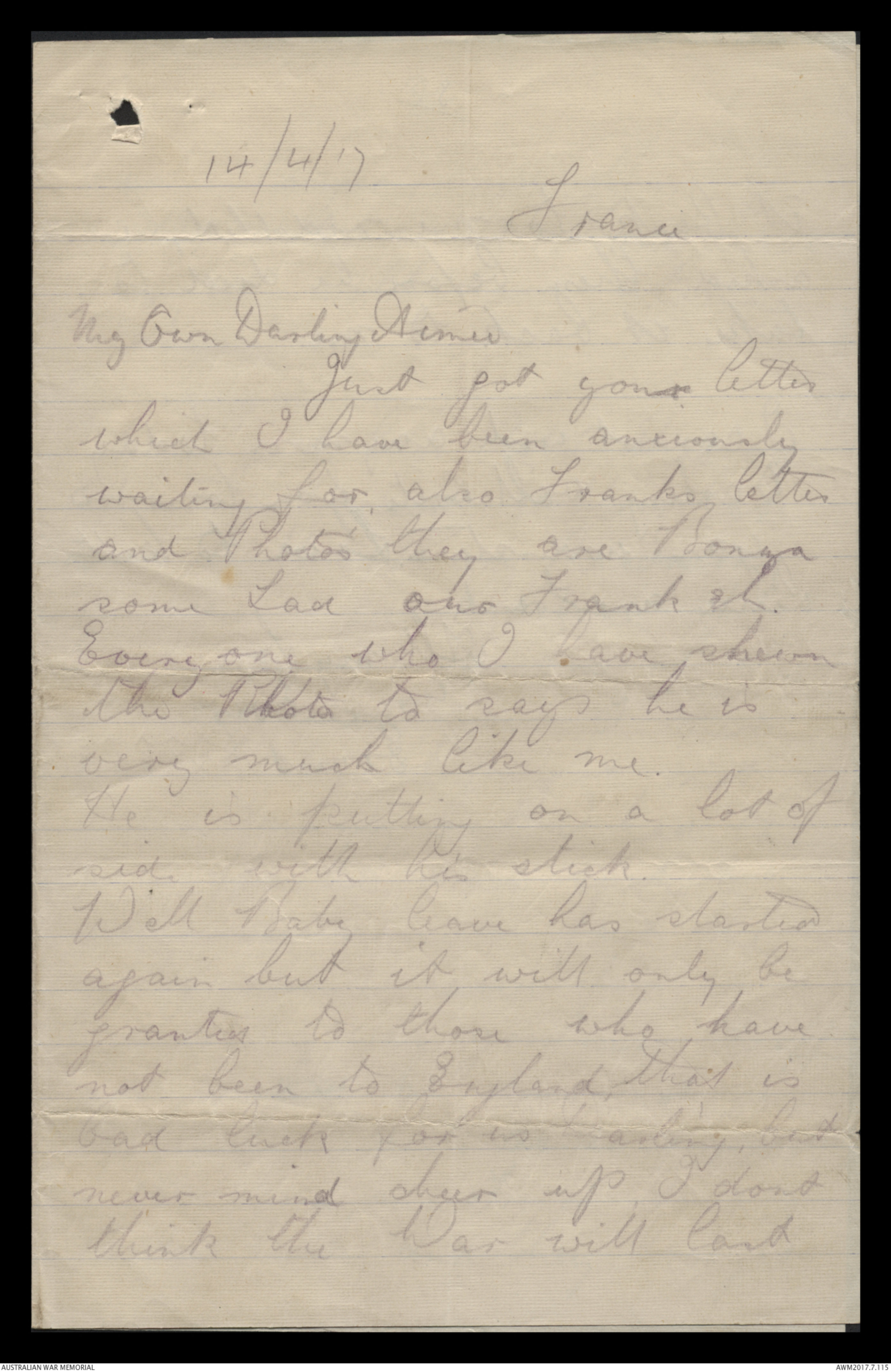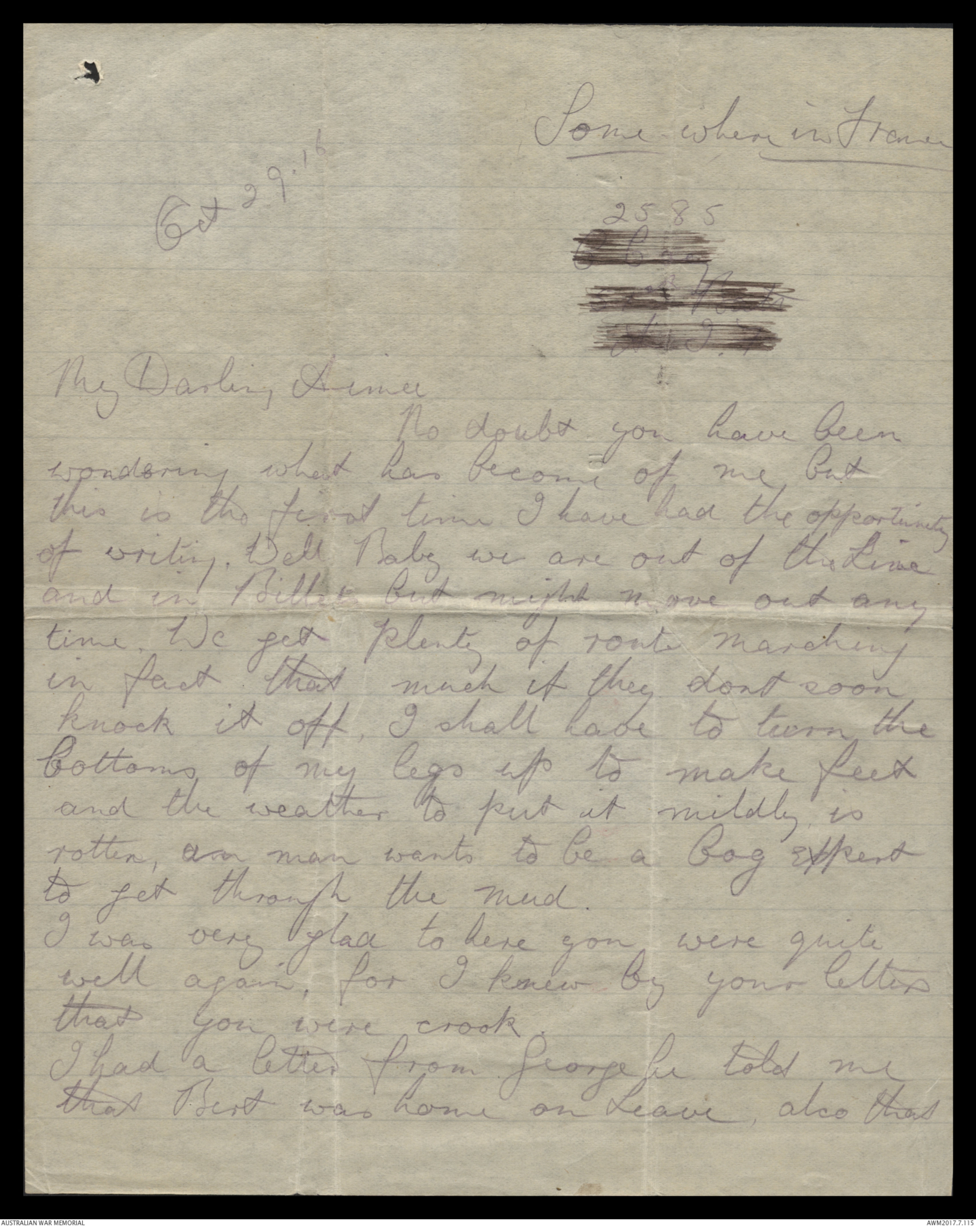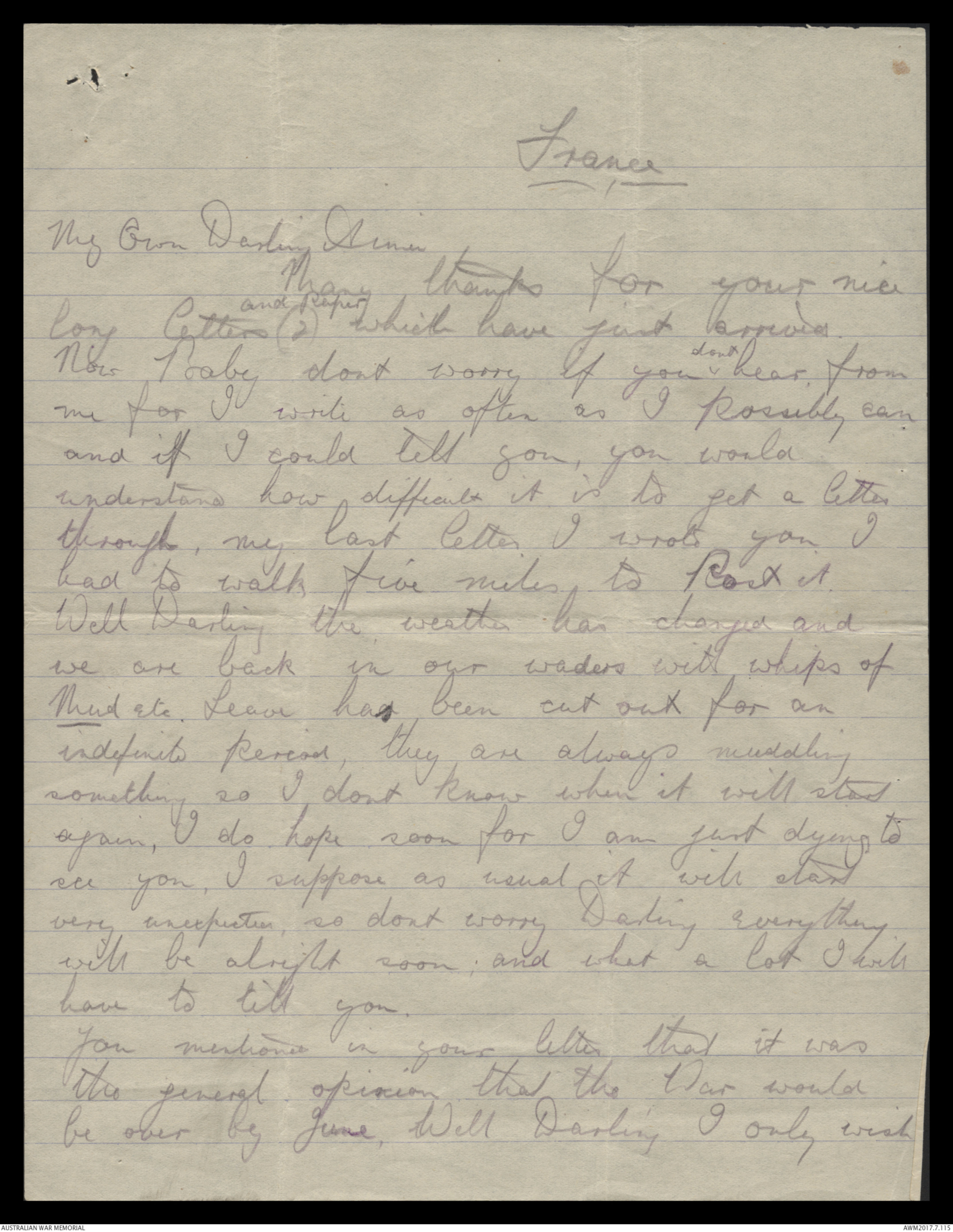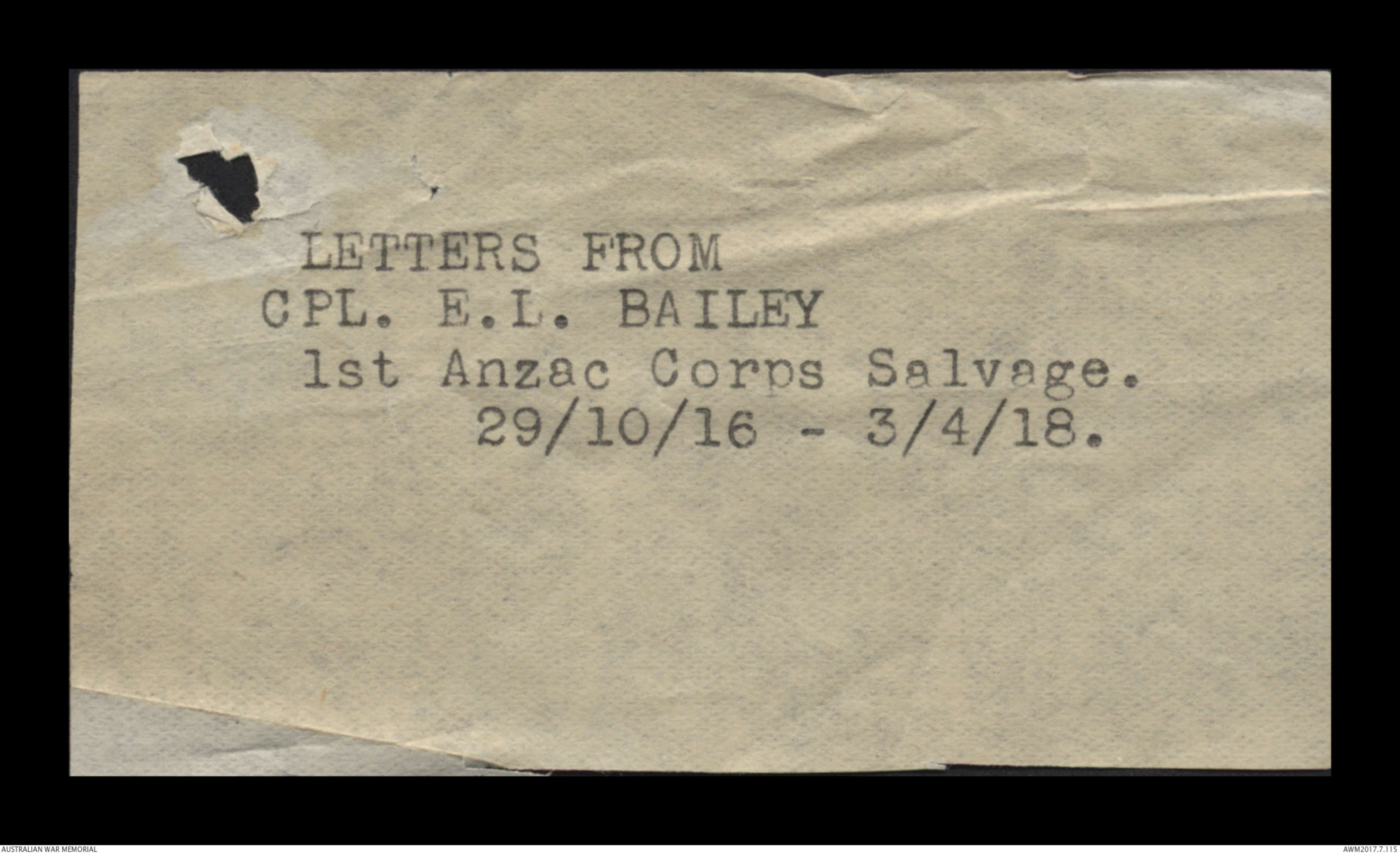 Letters written by Ernest Lionel Bailey October 1916 to April 1918 - Part 1
