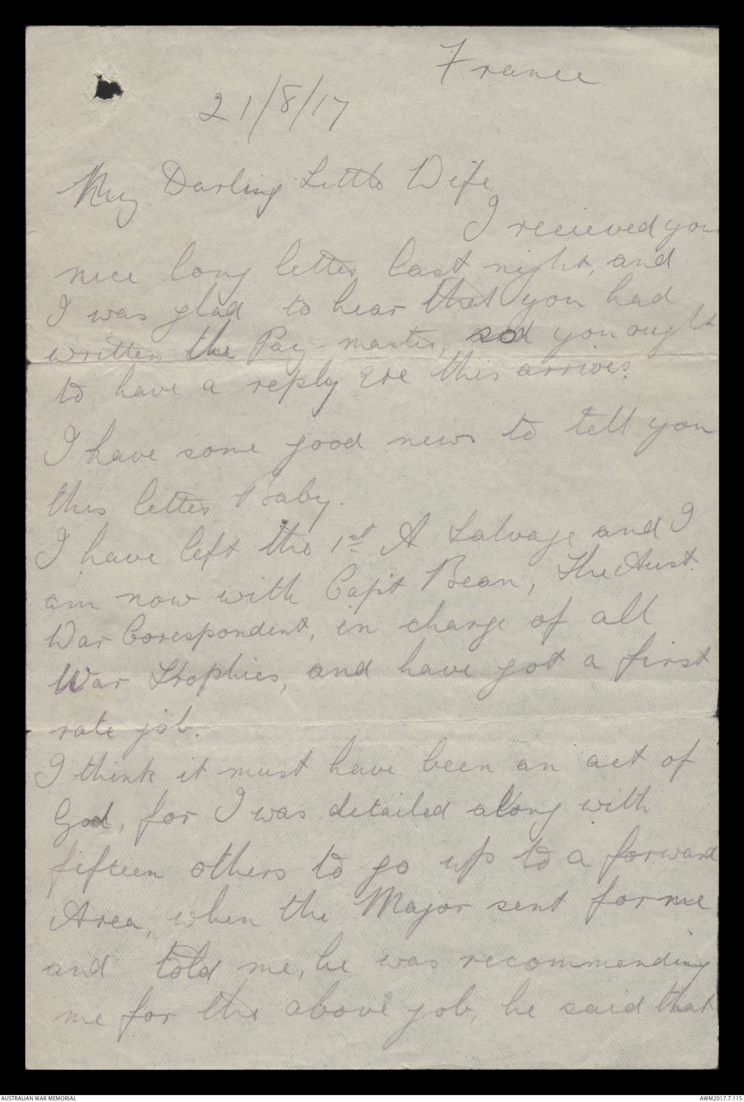 Well Darling, I must close hoping