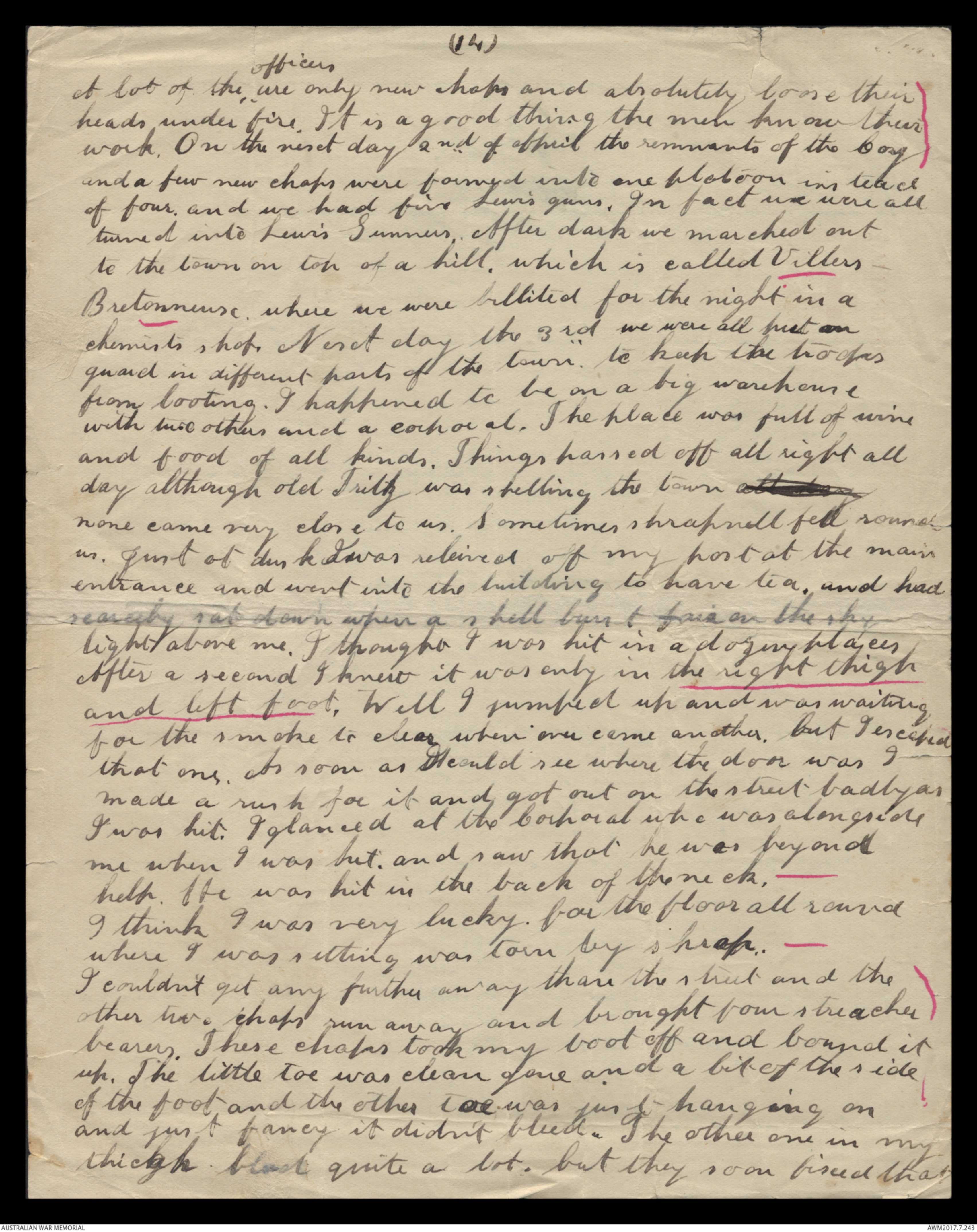 I was hit. I glanced at the Corporal who was alongside