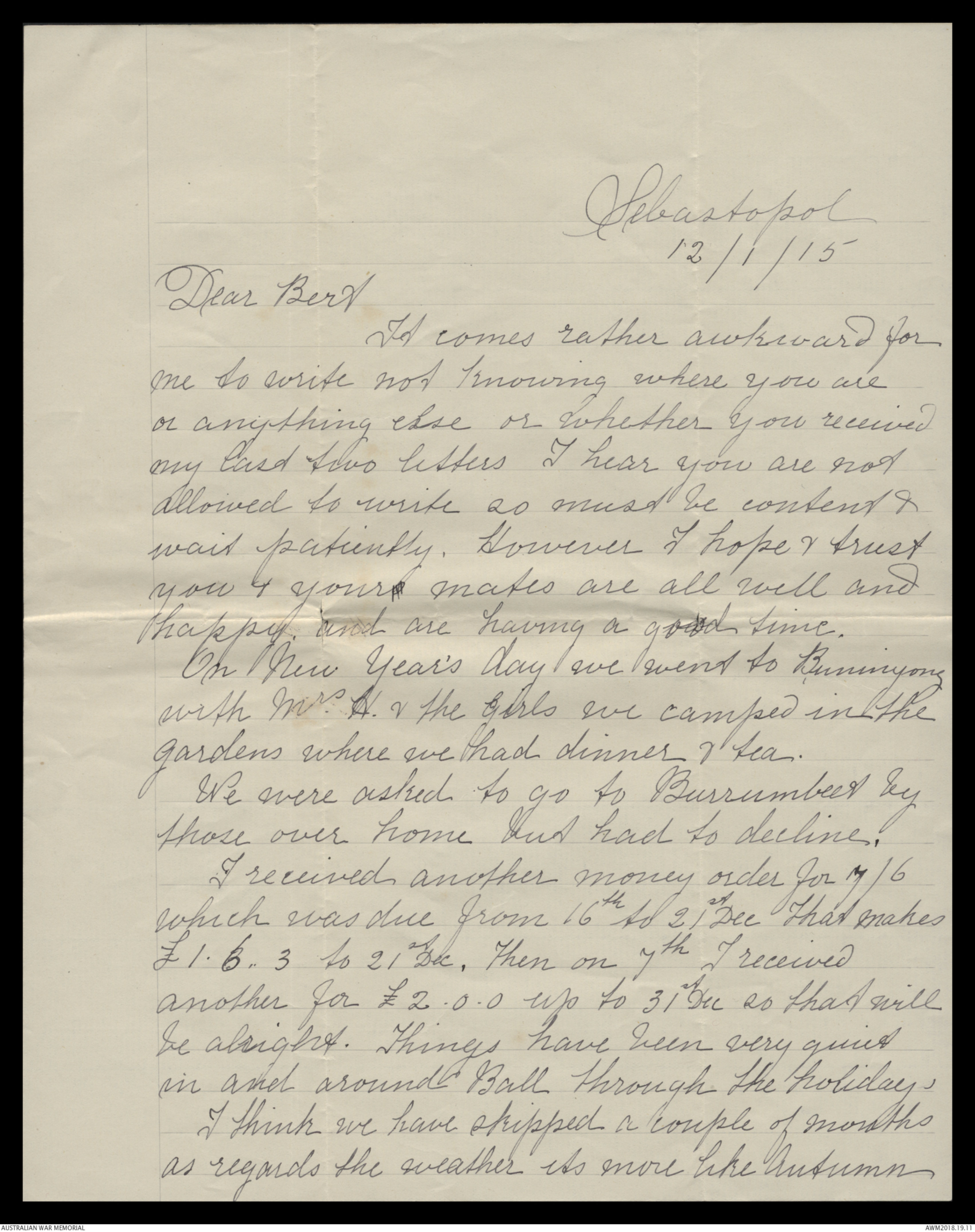 Correspondence between Herbert Vincent Reynolds and his family, 1914-1915 - Part 2