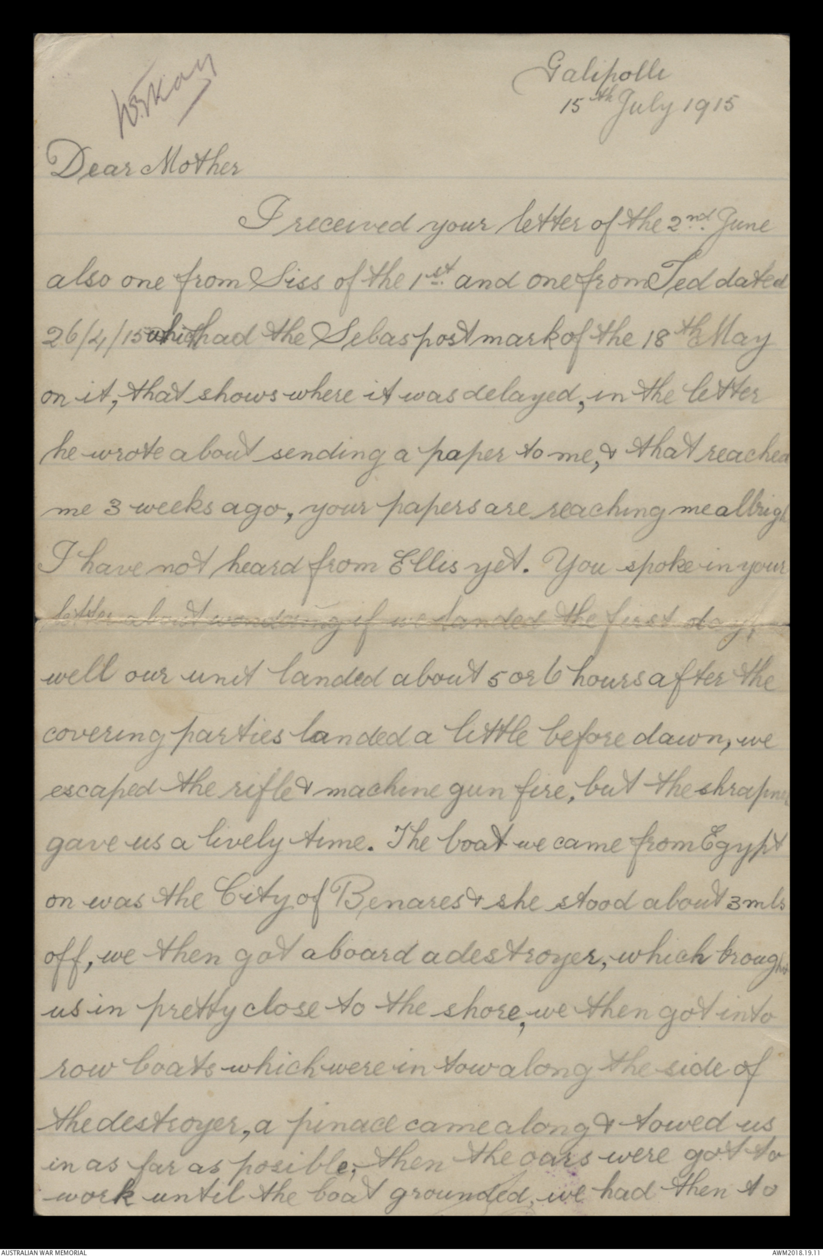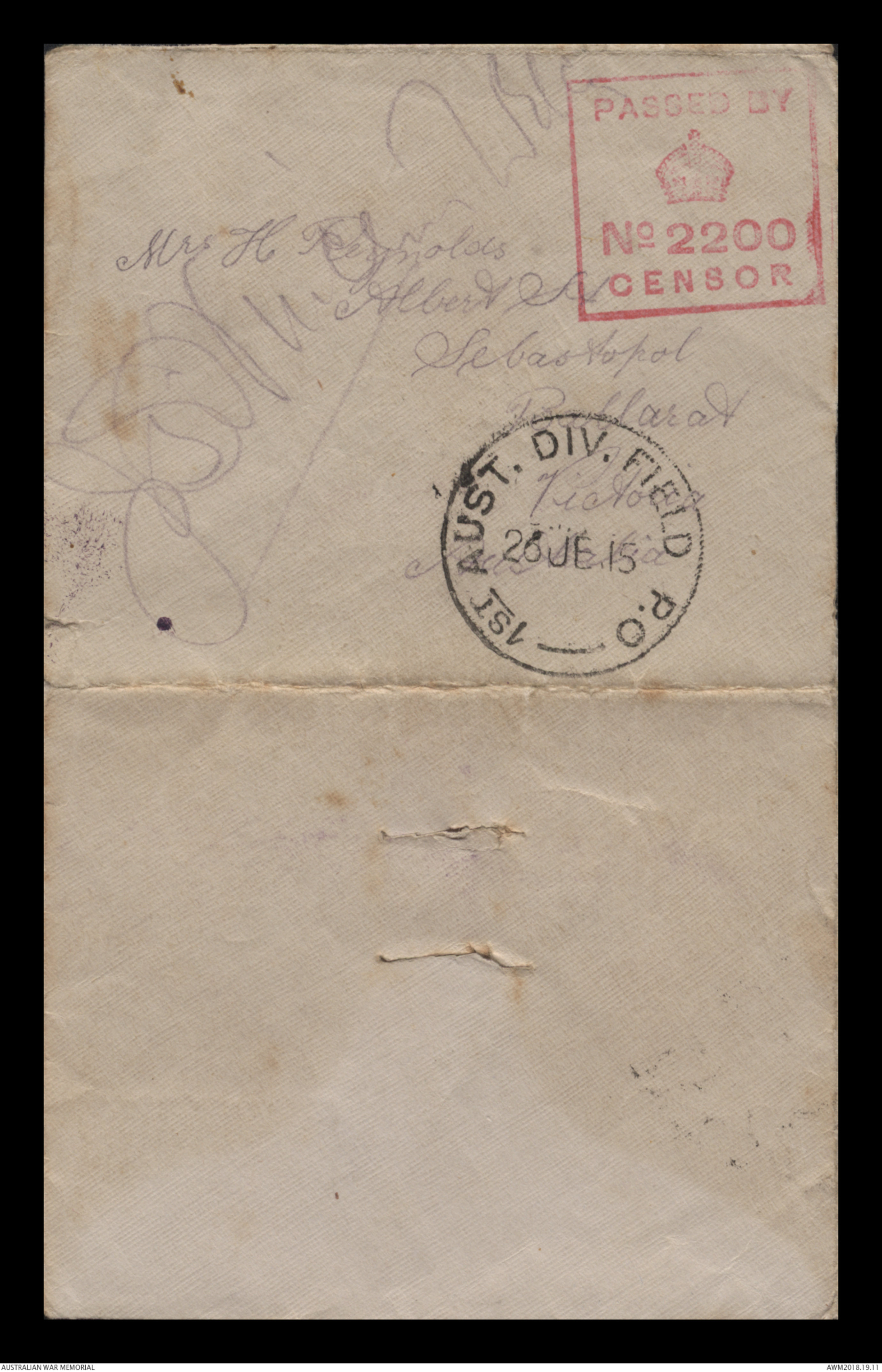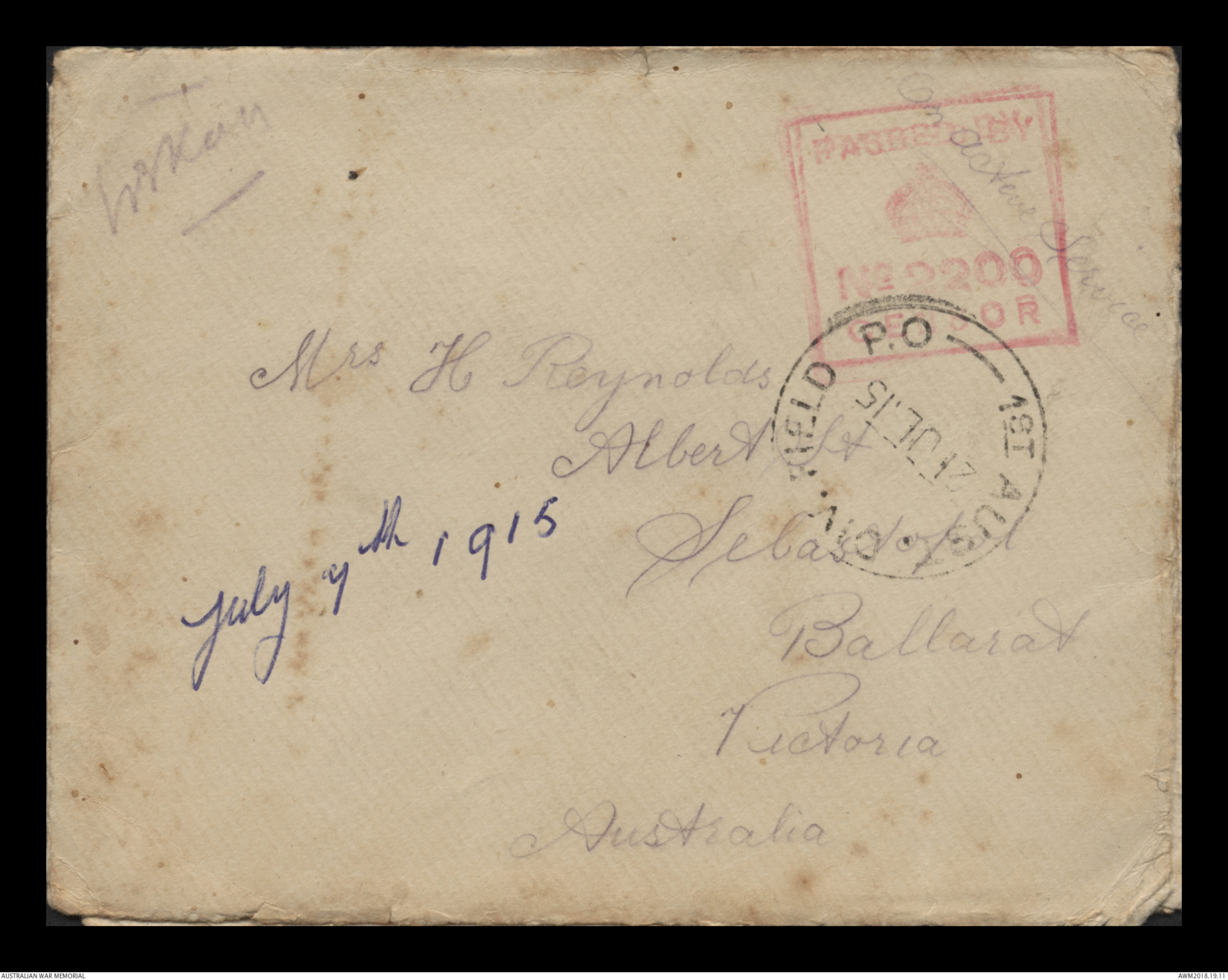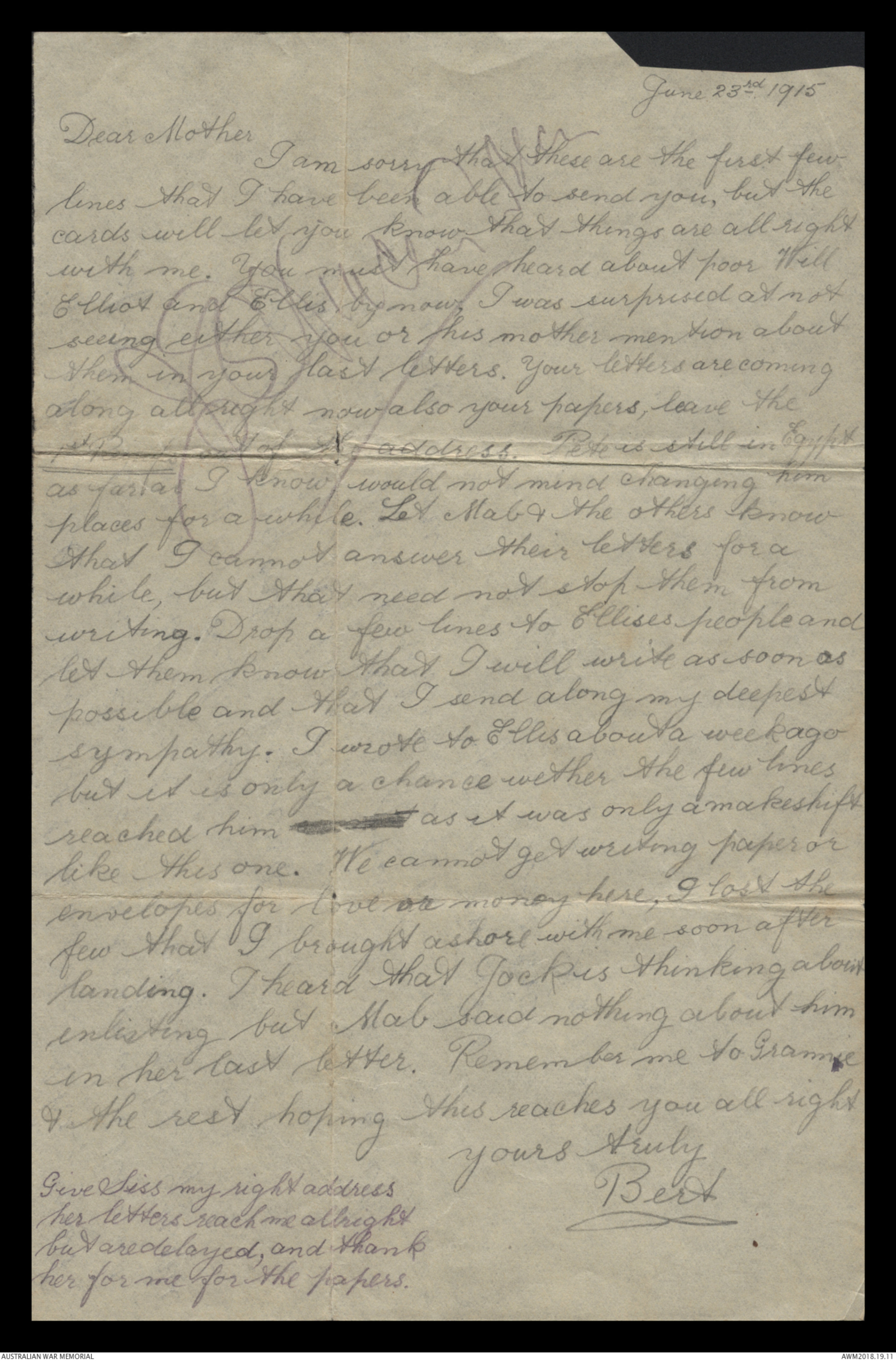 Correspondence between Herbert Vincent Reynolds and his family, 1914-1915 - Part 9