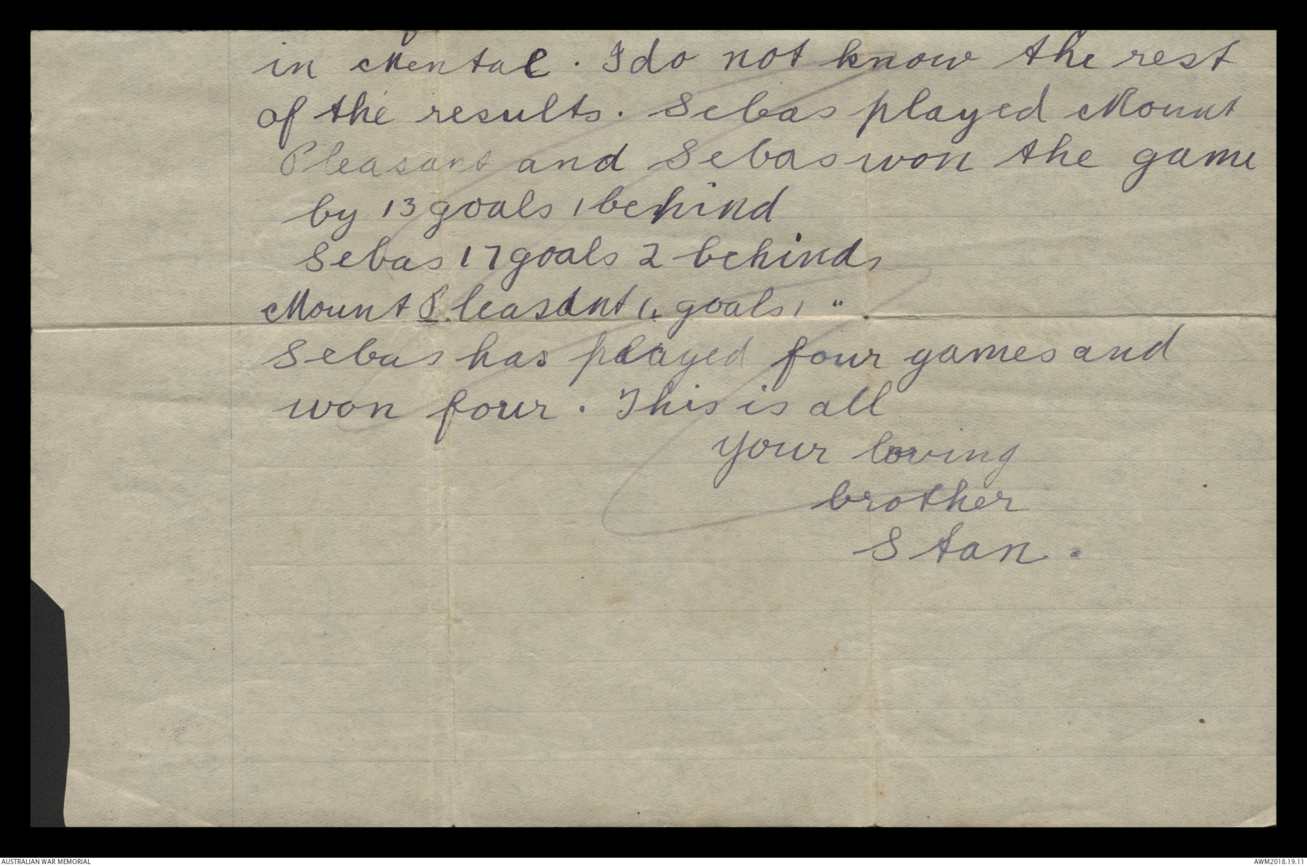 Sebas 17 goals 2 behinds