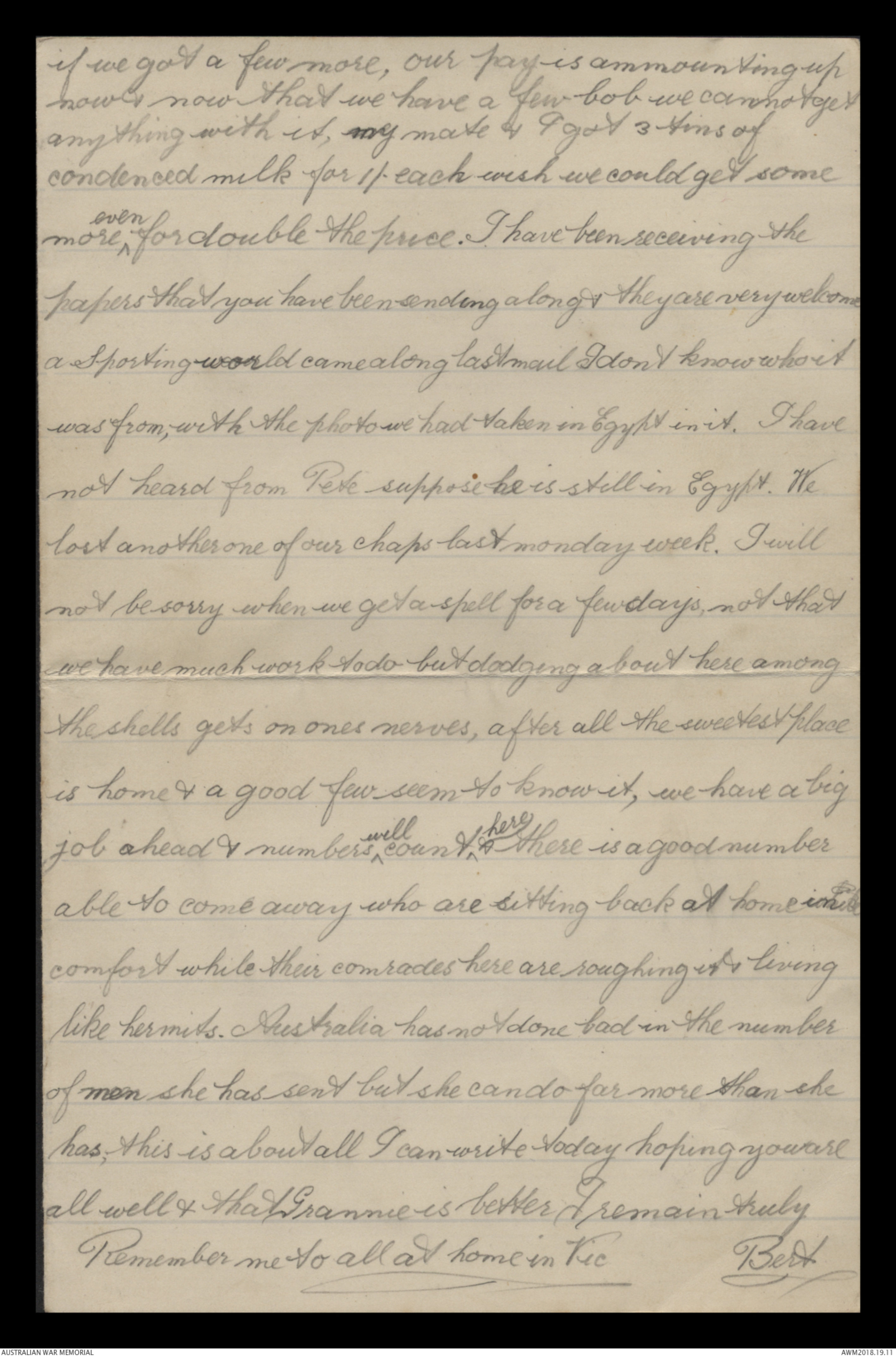 Remember me to all at home in Vic Bert