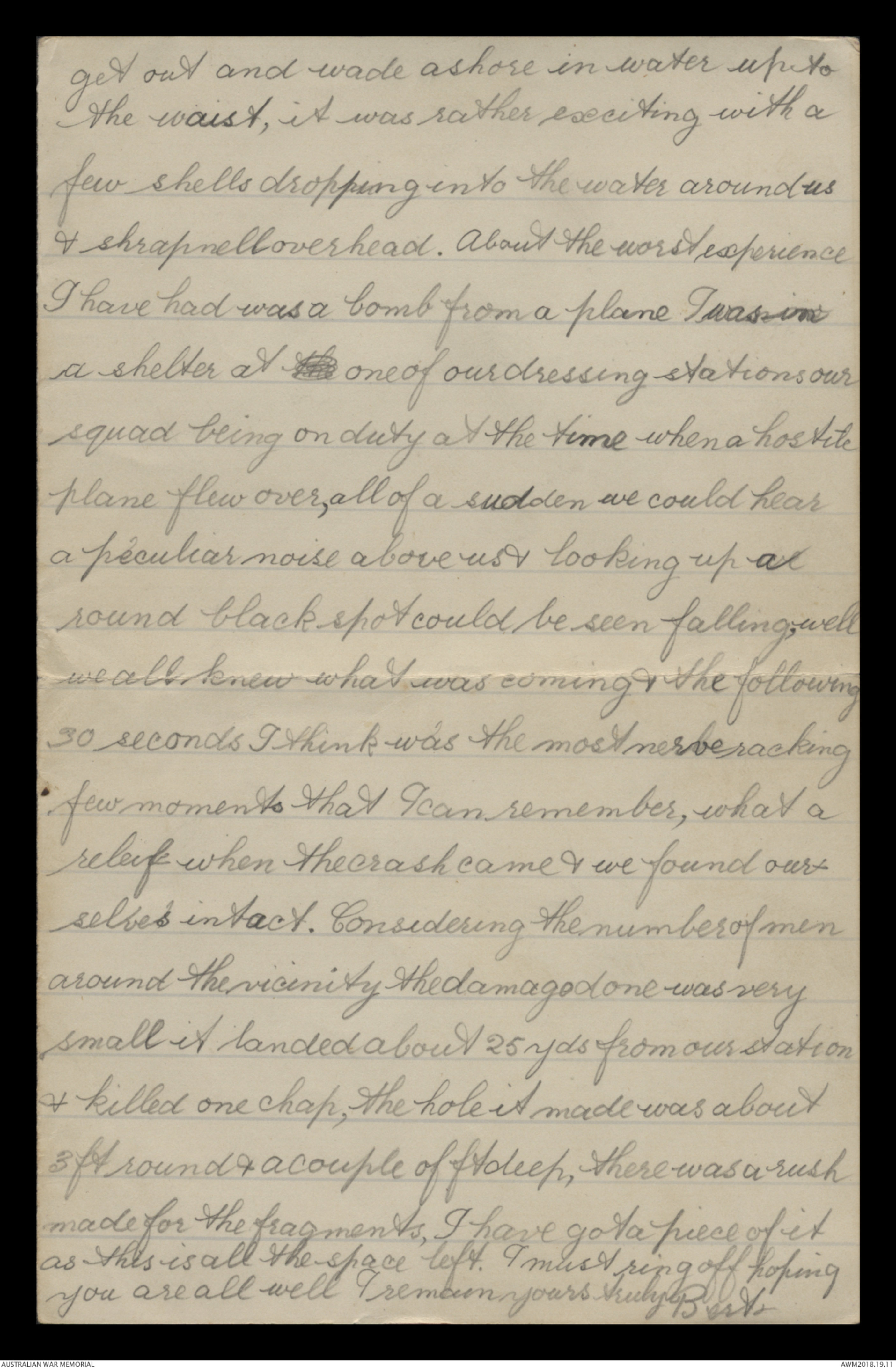 escaped the rifle & machine gun fire, but the shrapnel