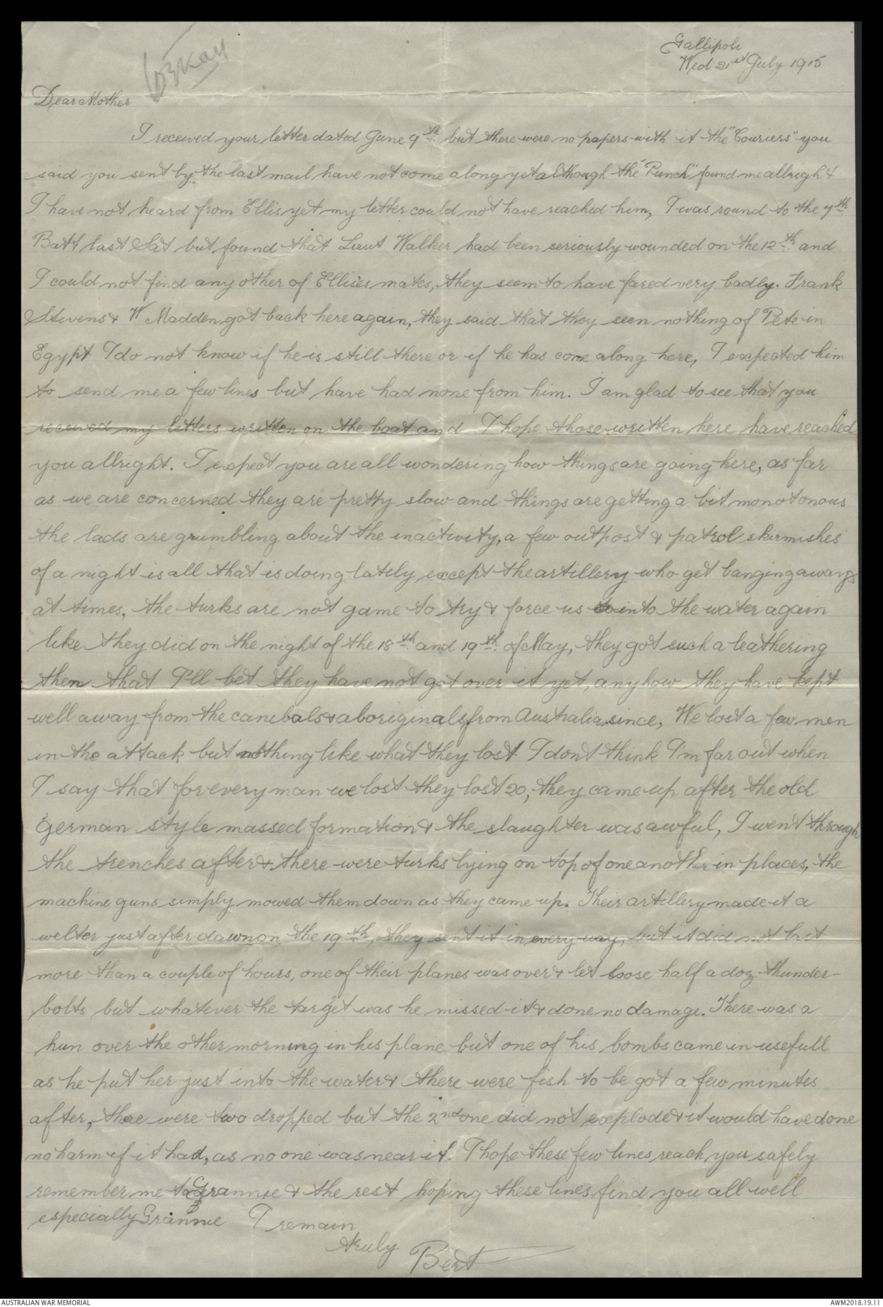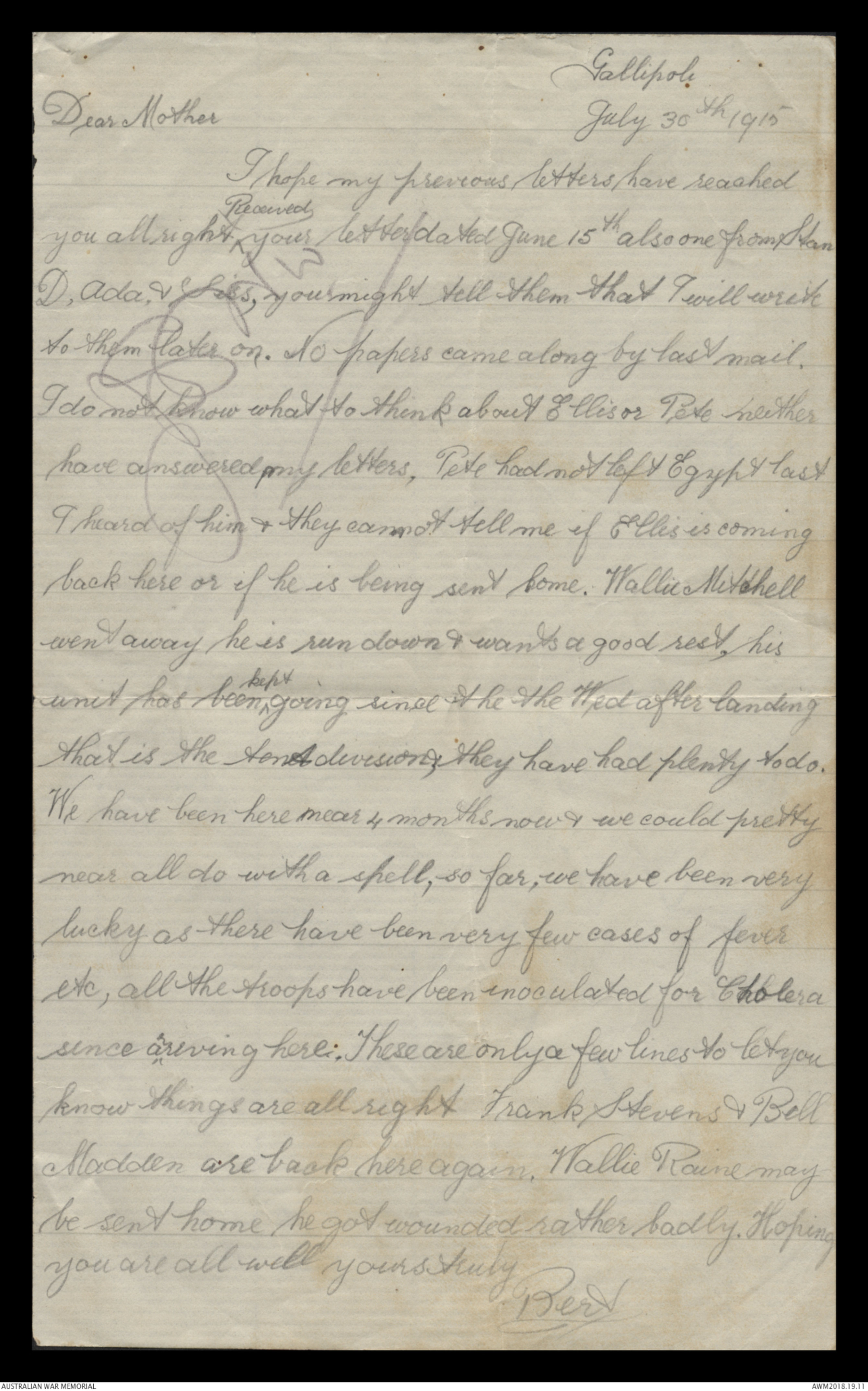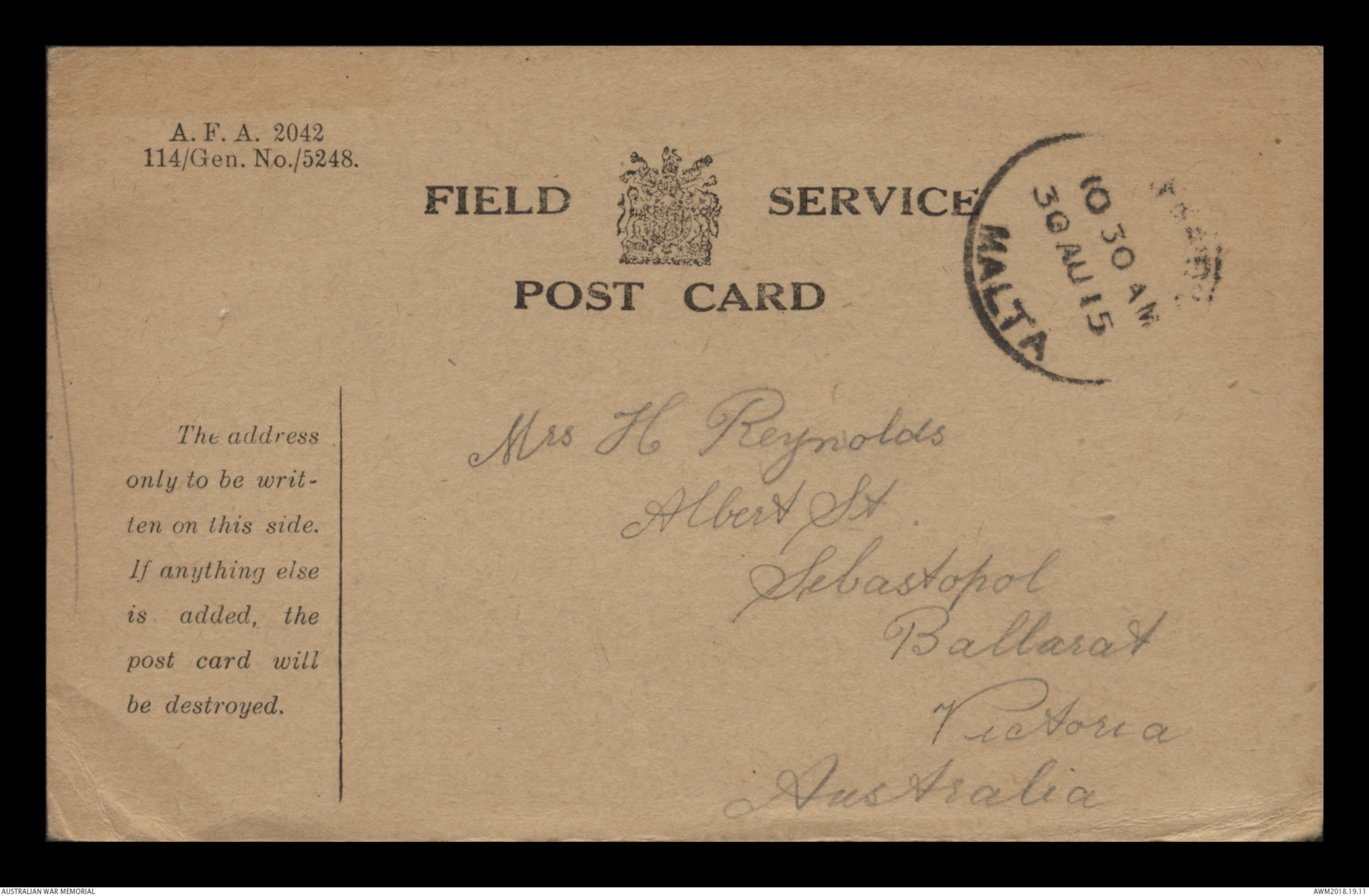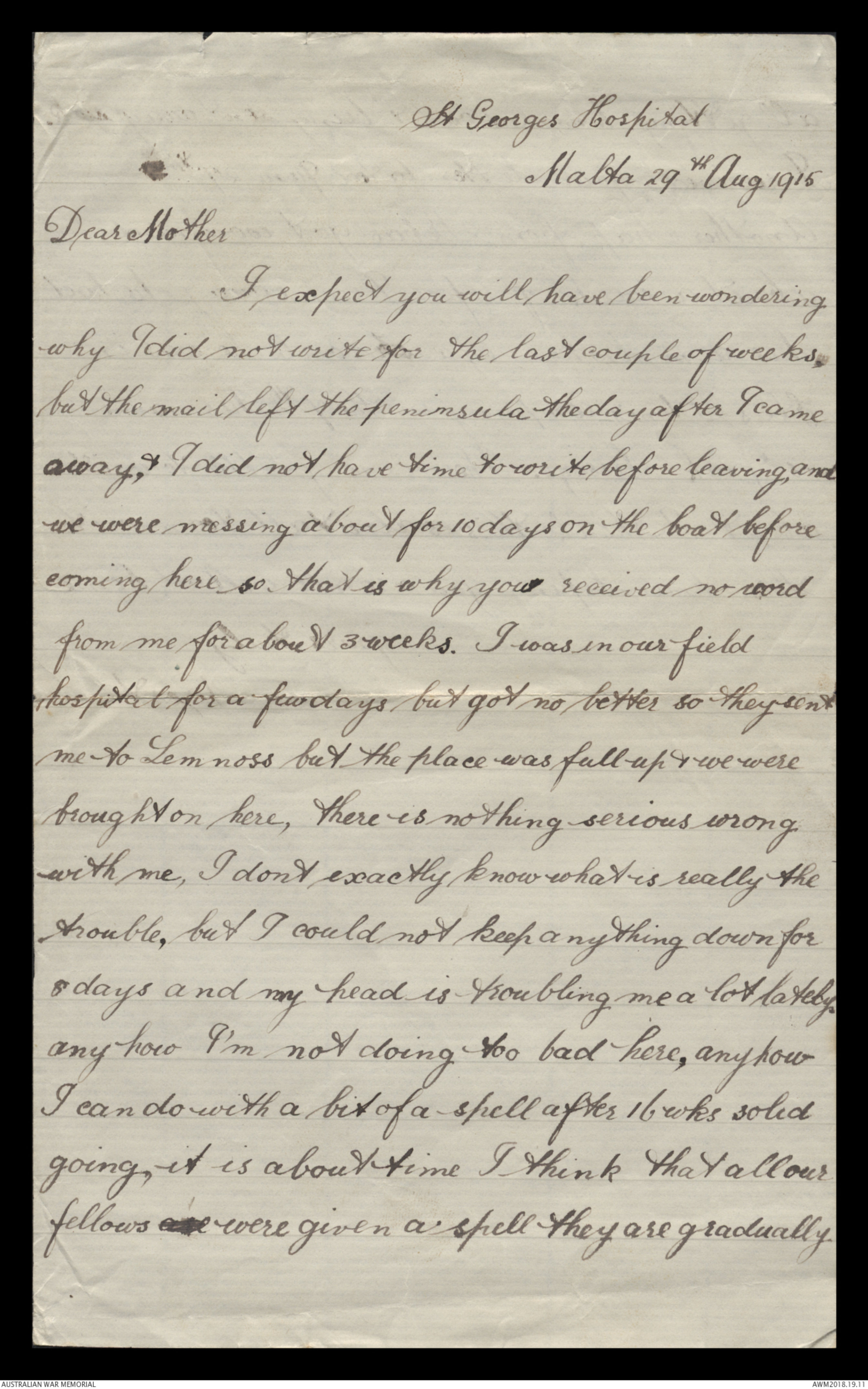 Correspondence between Herbert Vincent Reynolds and his family, 1914-1915 - Part 10