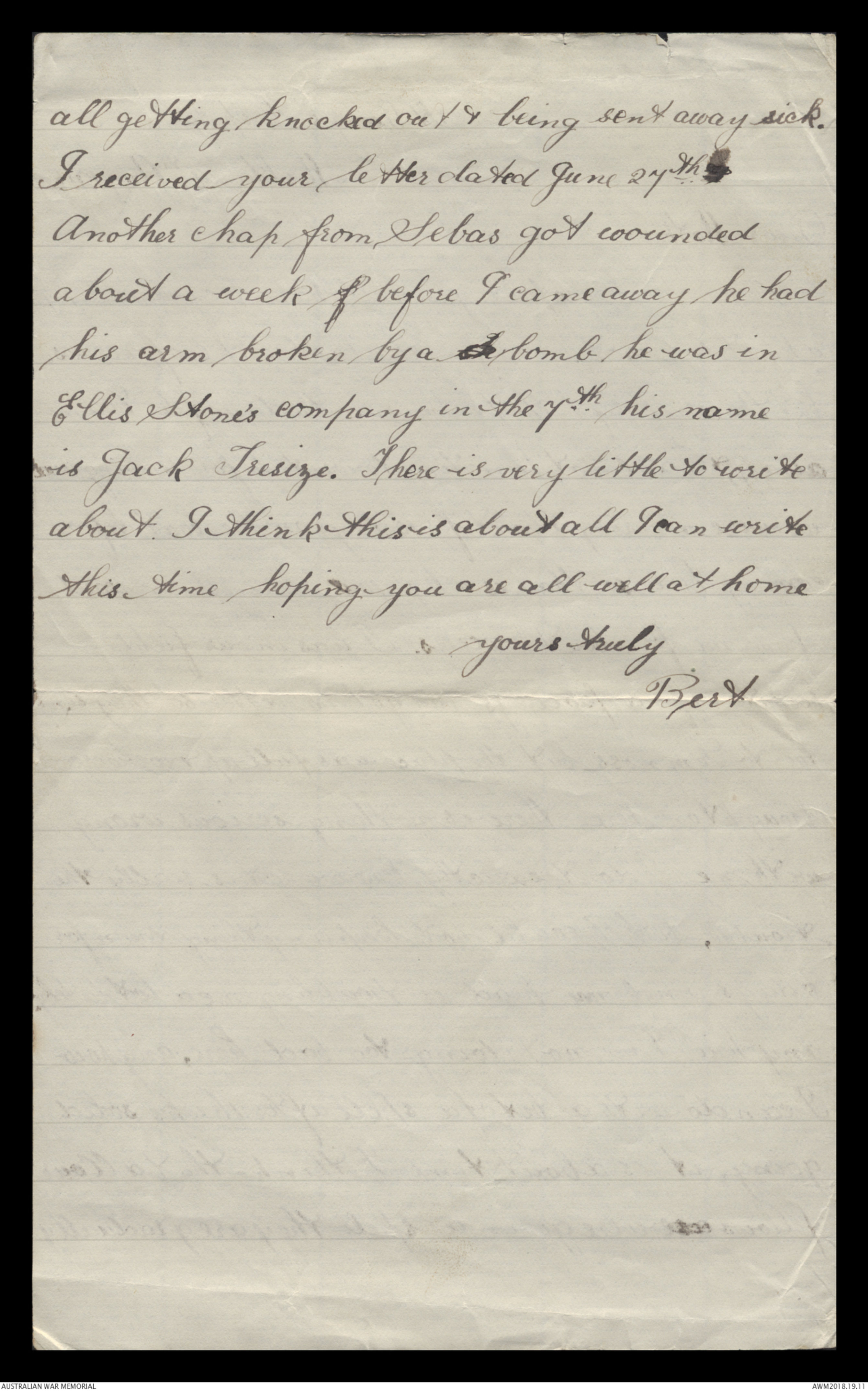 Batt last Sat but found that Lieut Walker had been seriously wounded on the 12th and