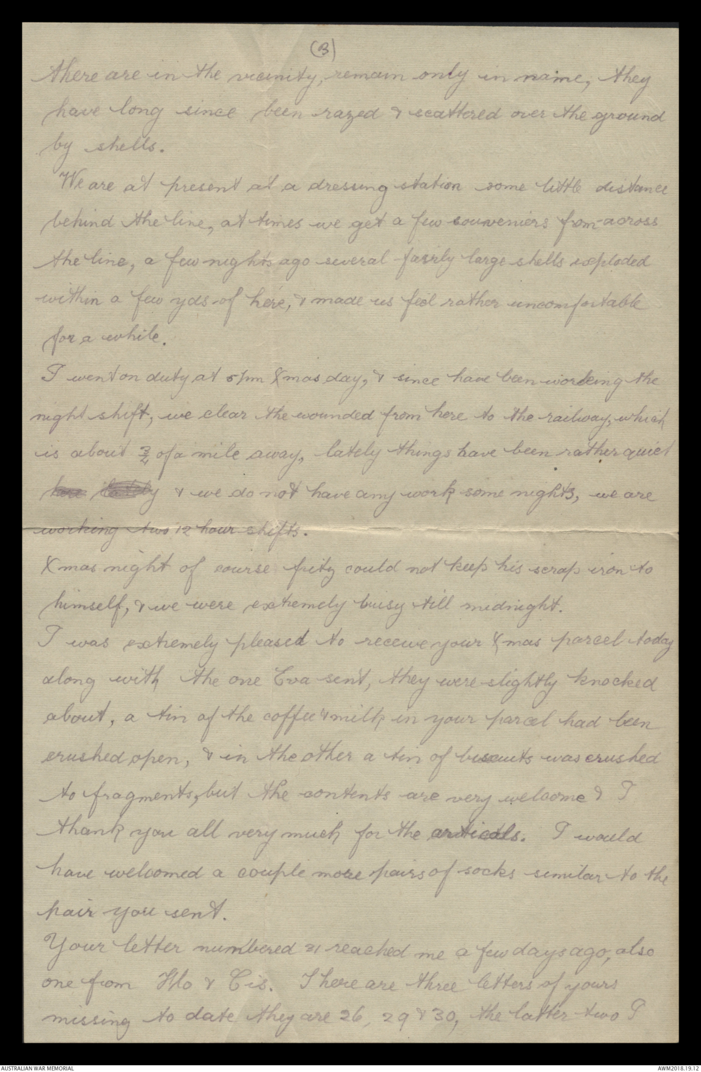 before Xmas each man had a parcel given him, from the