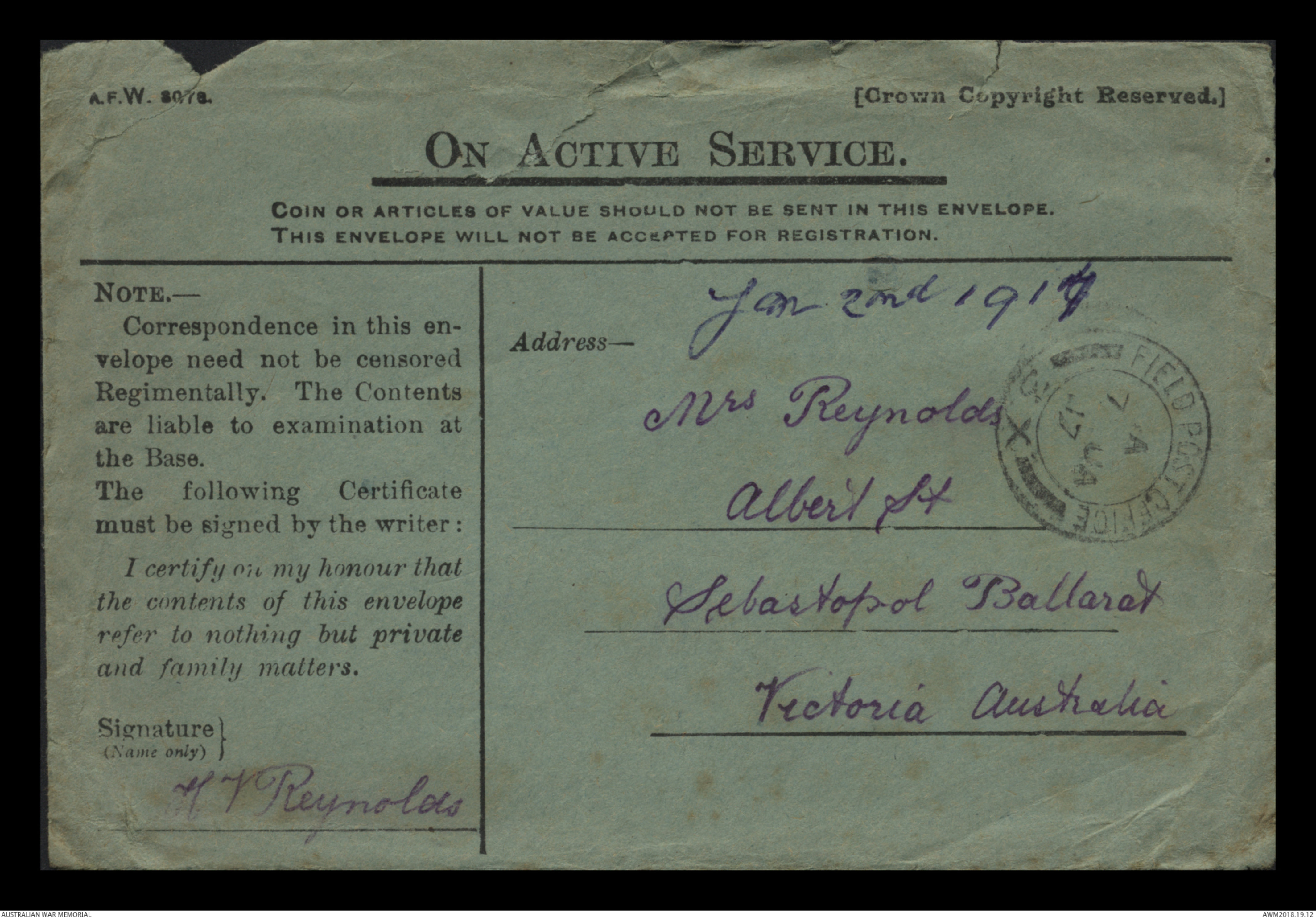 [*Pte HV Reynolds*]