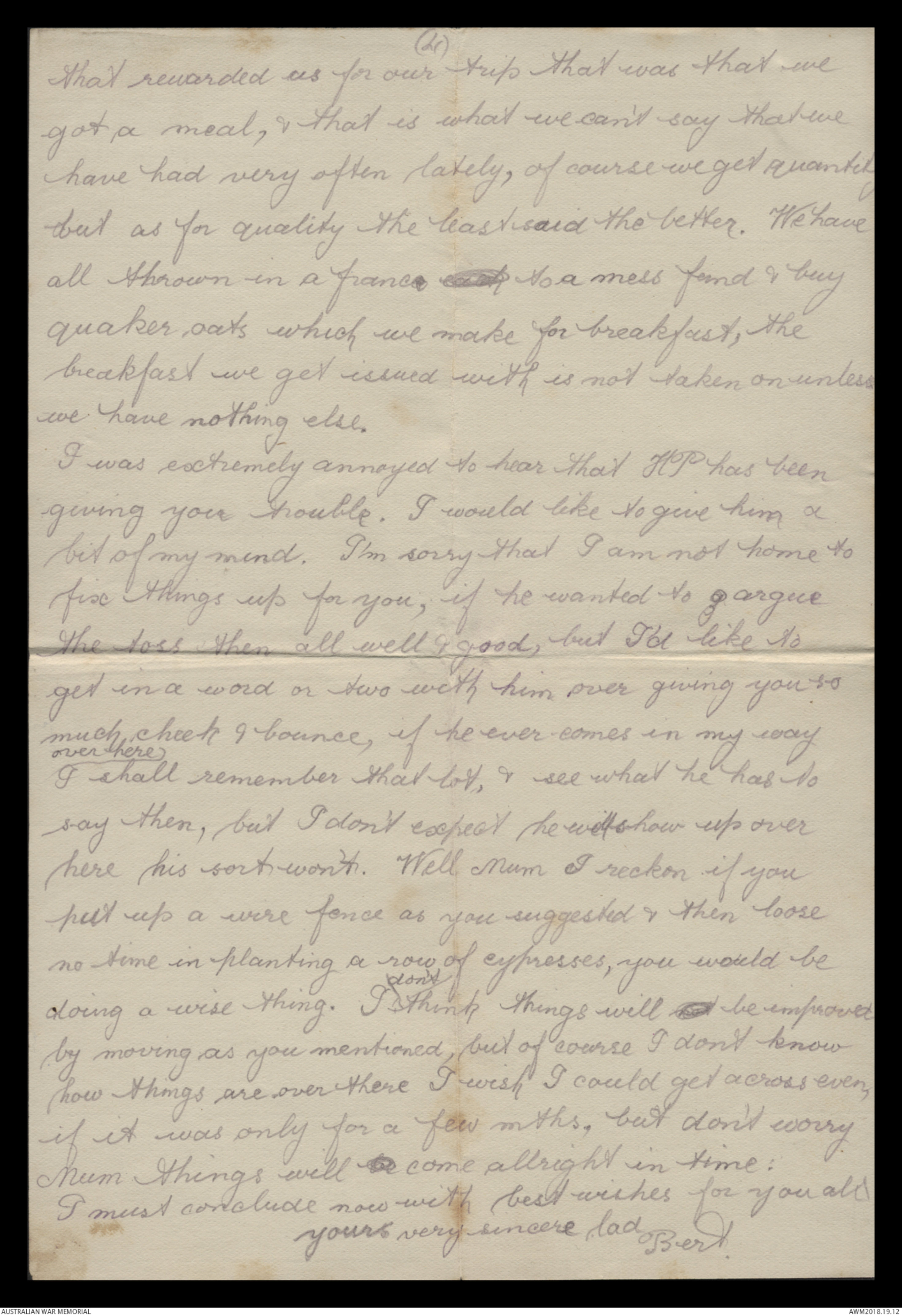 I must conclude now with best wishes for you all