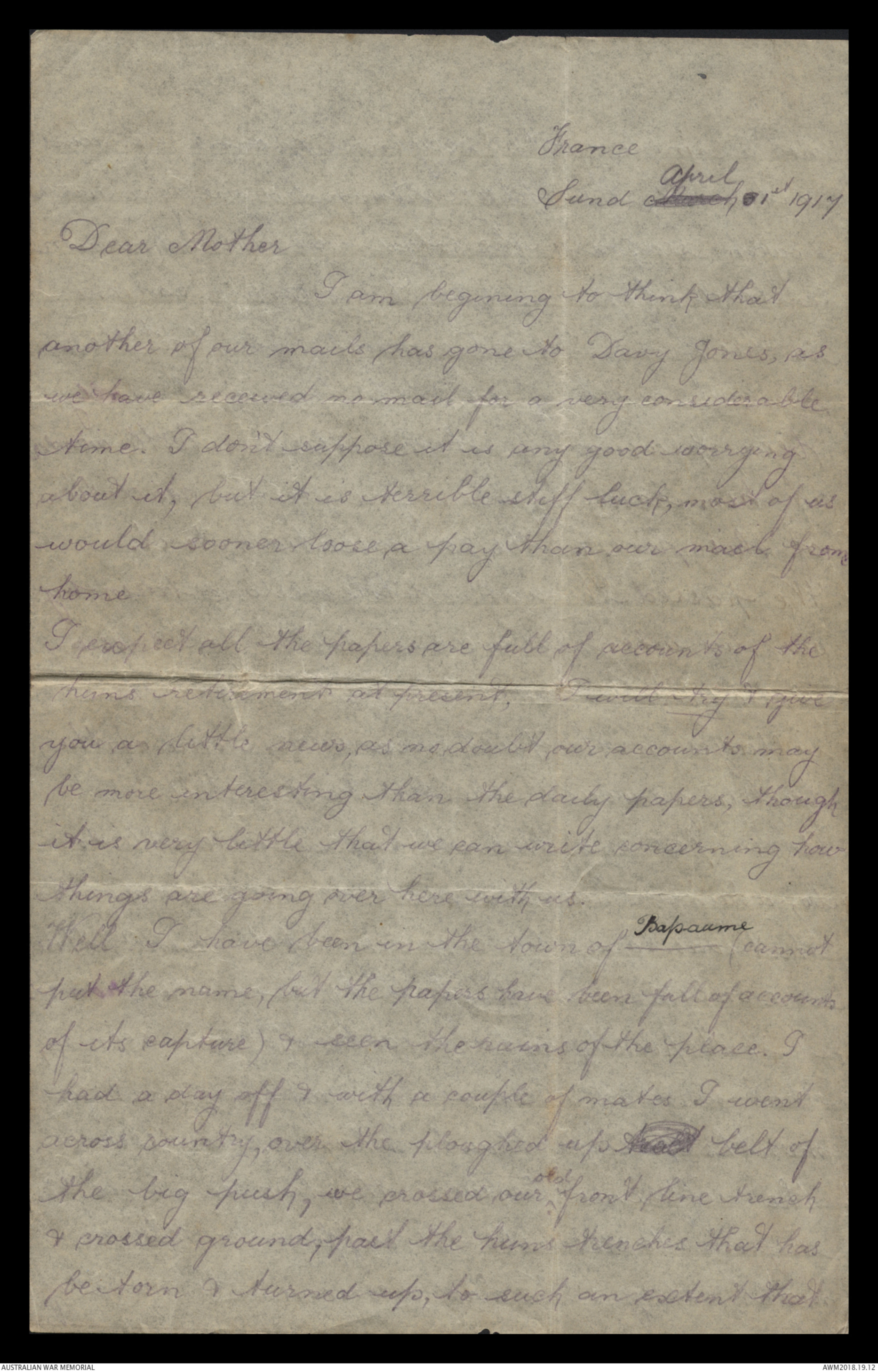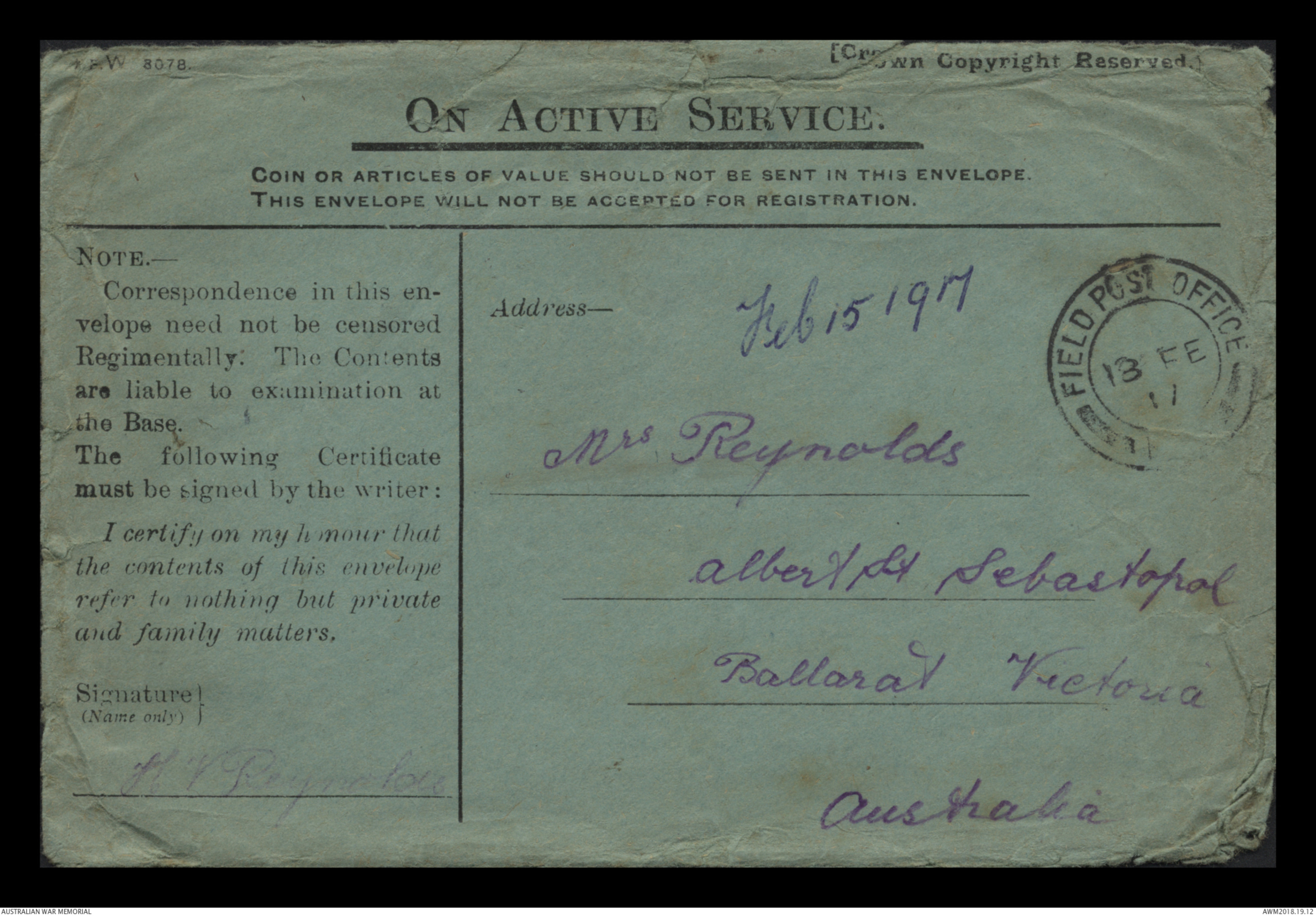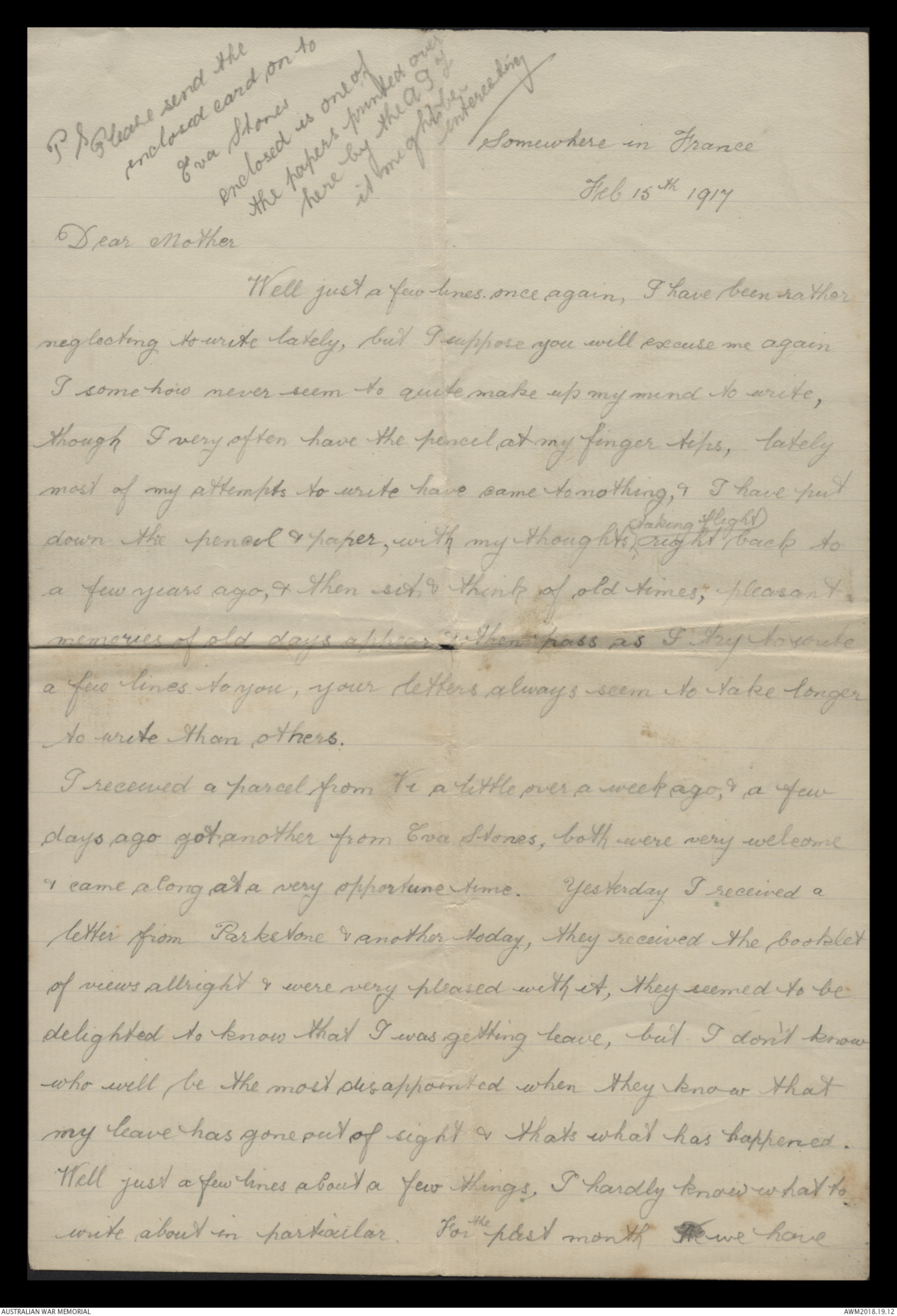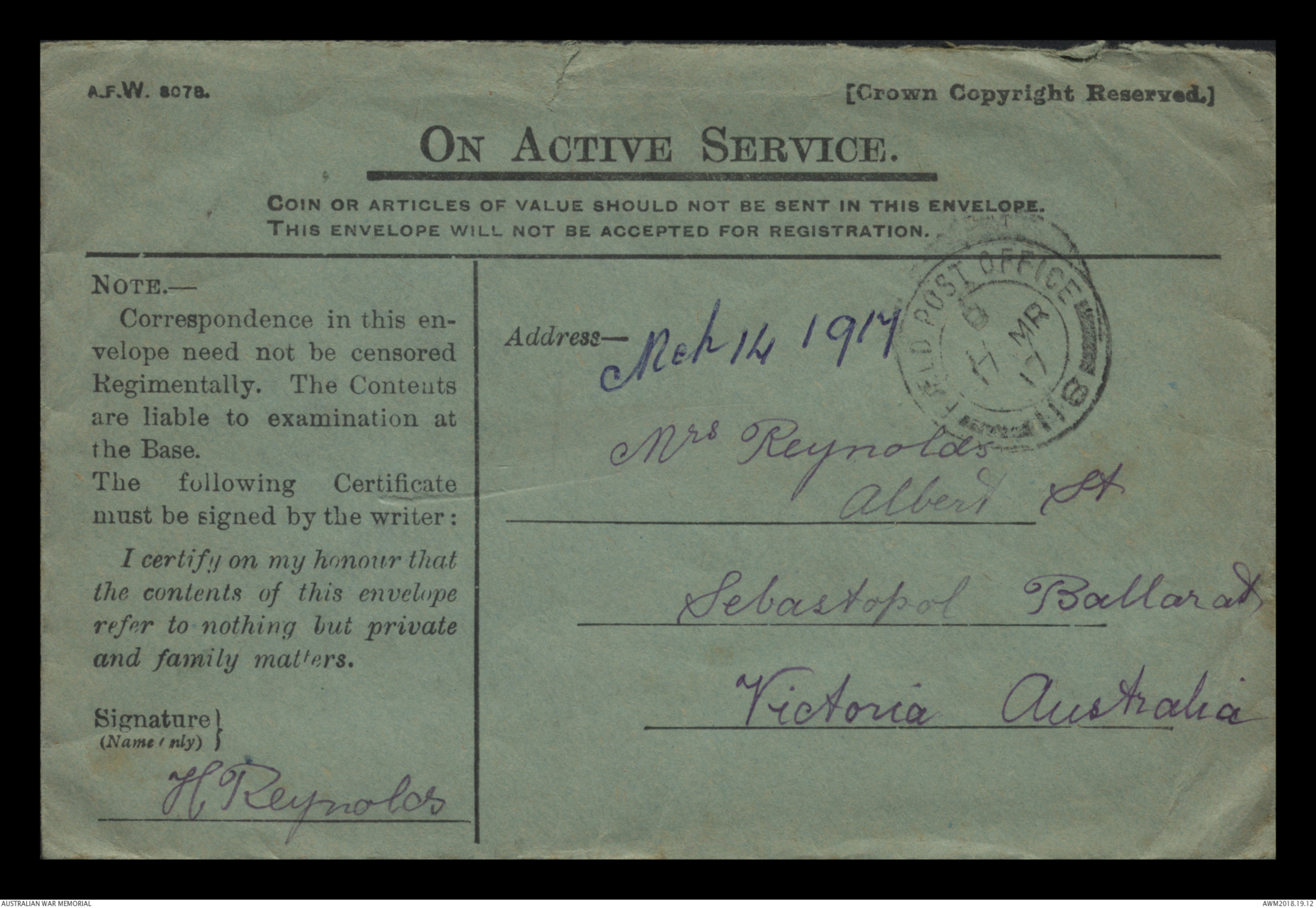 Correspondence between Herbert Vincent Reynolds and his family, 1917 - Part 2