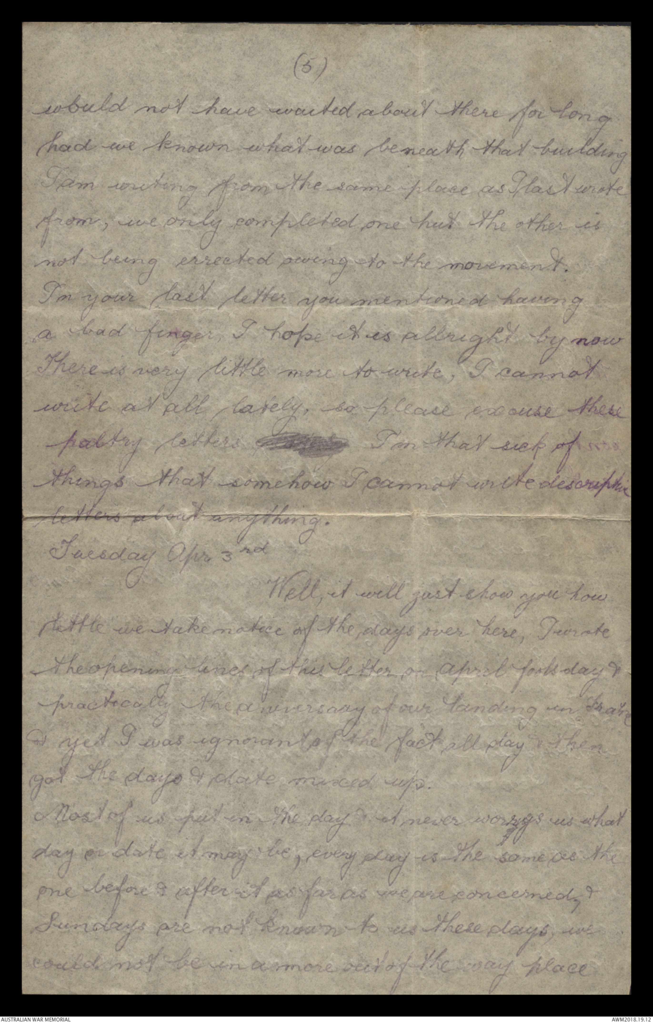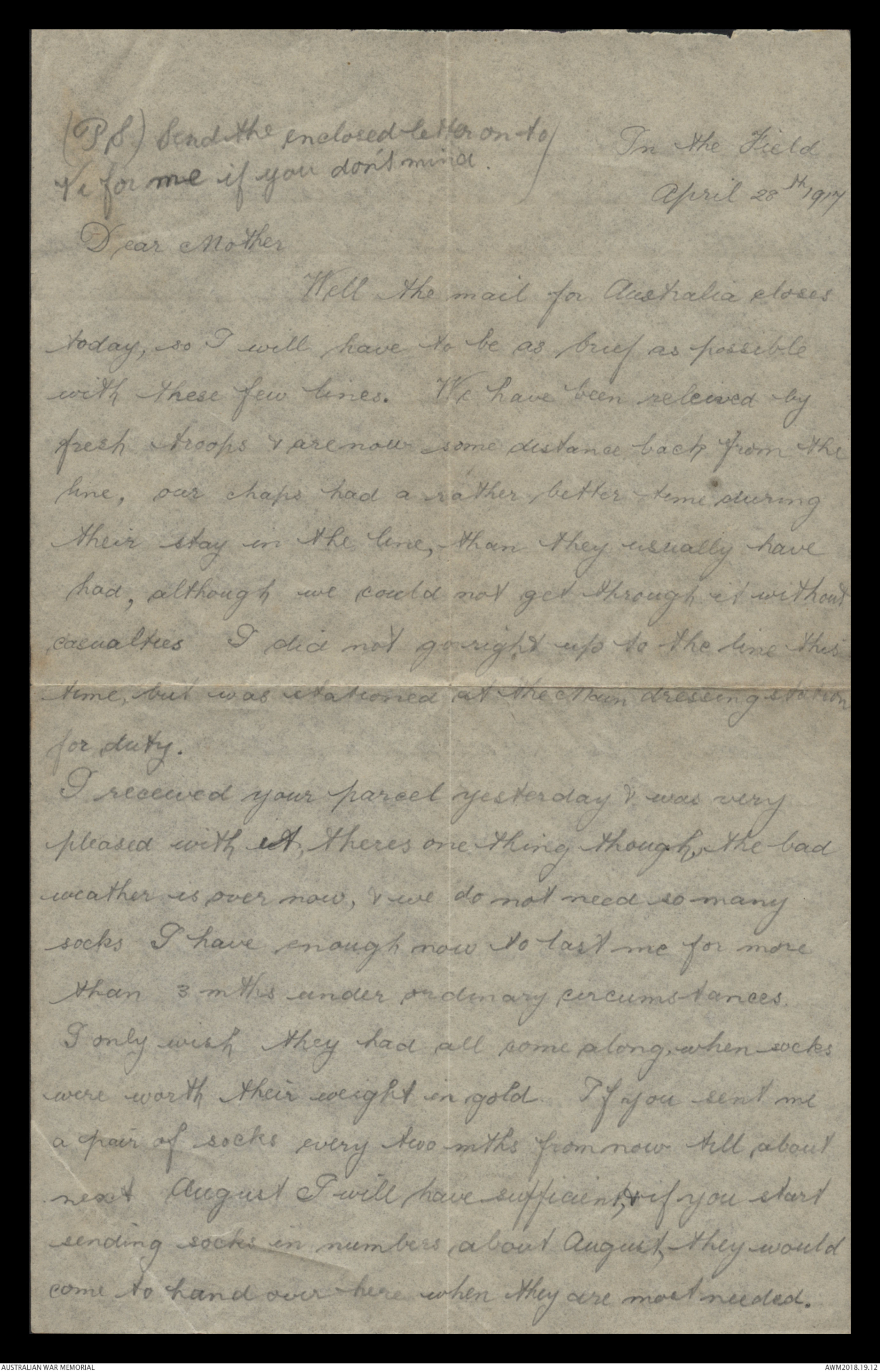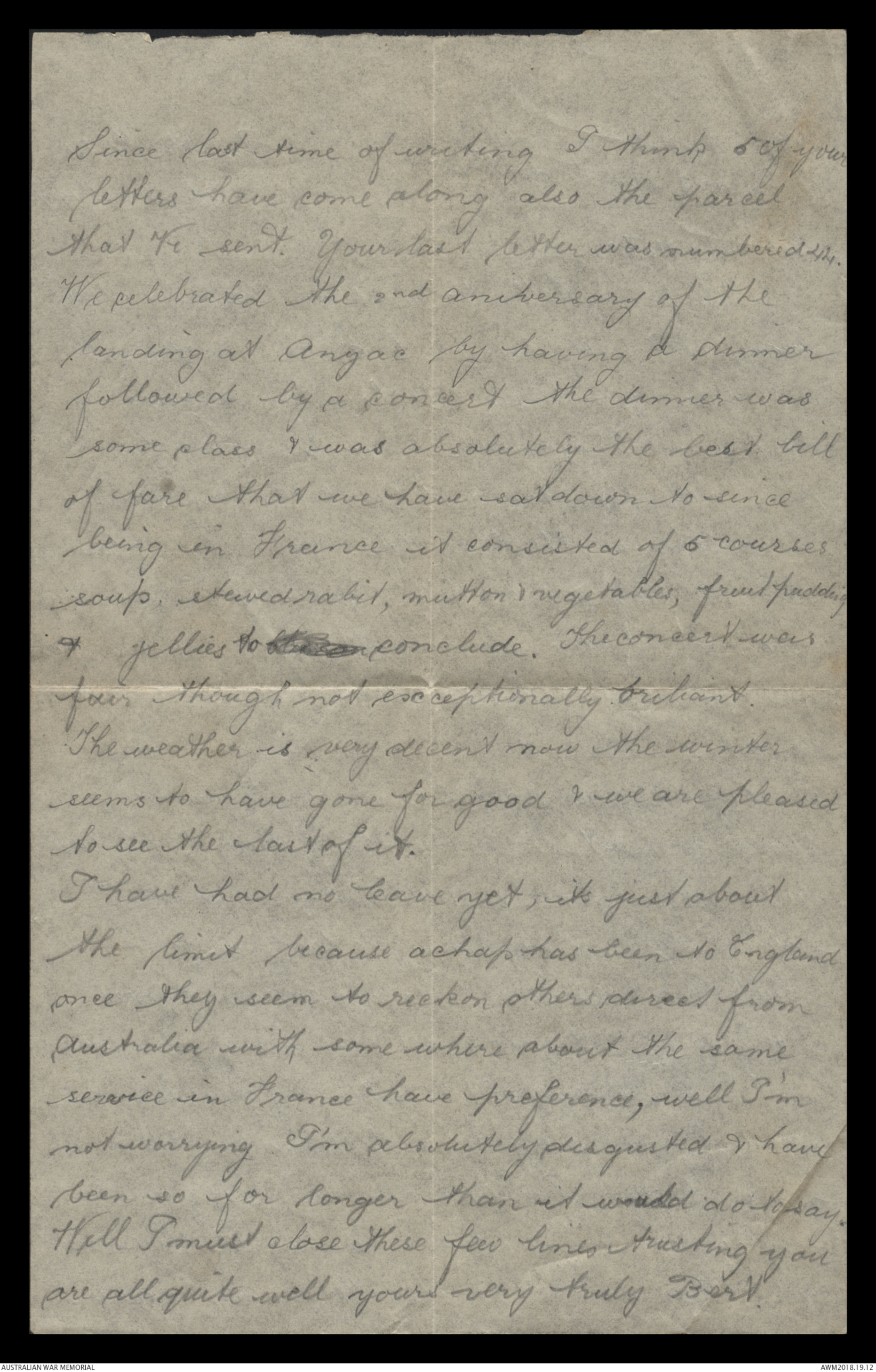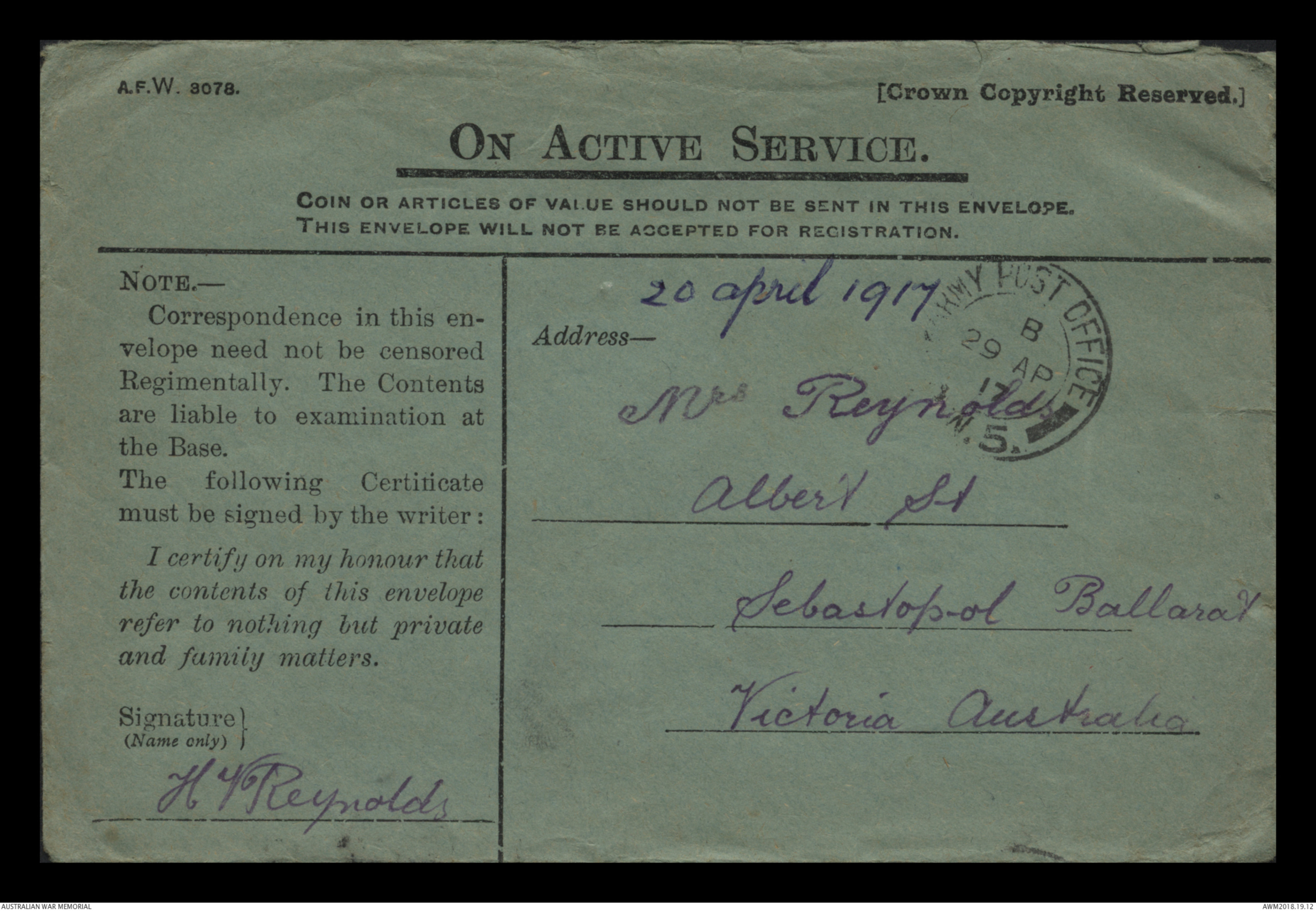 Correspondence between Herbert Vincent Reynolds and his family, 1917 - Part 3
