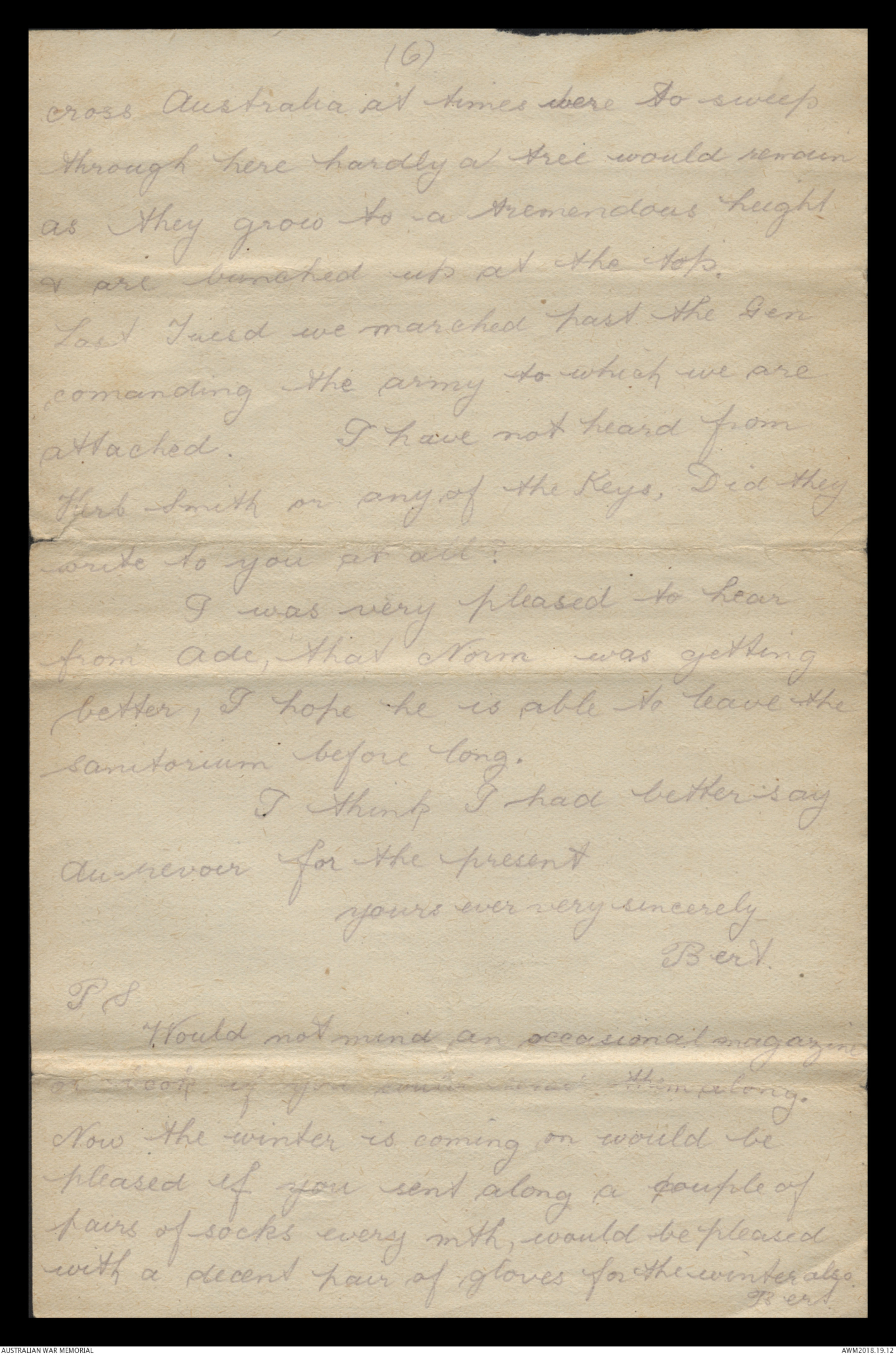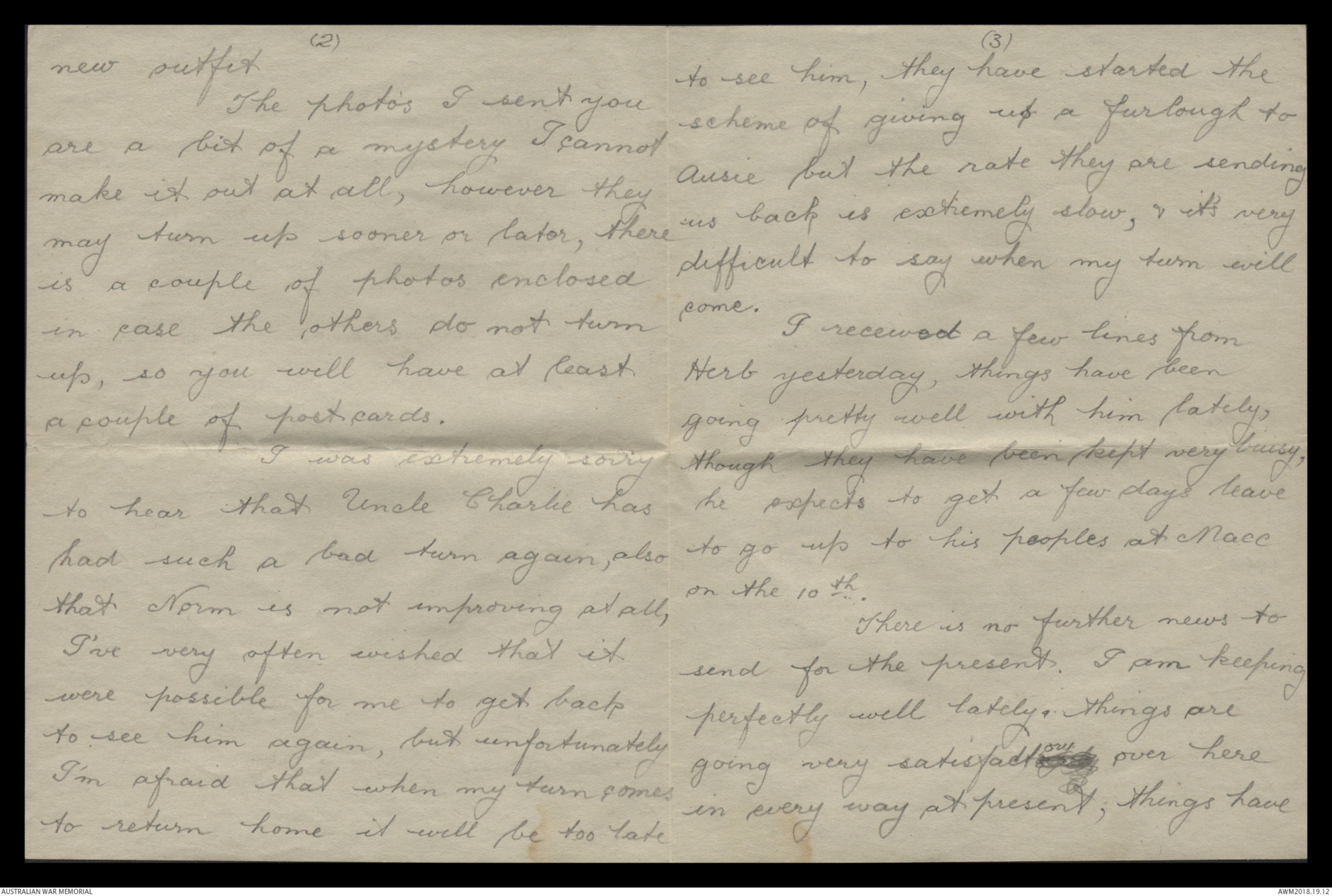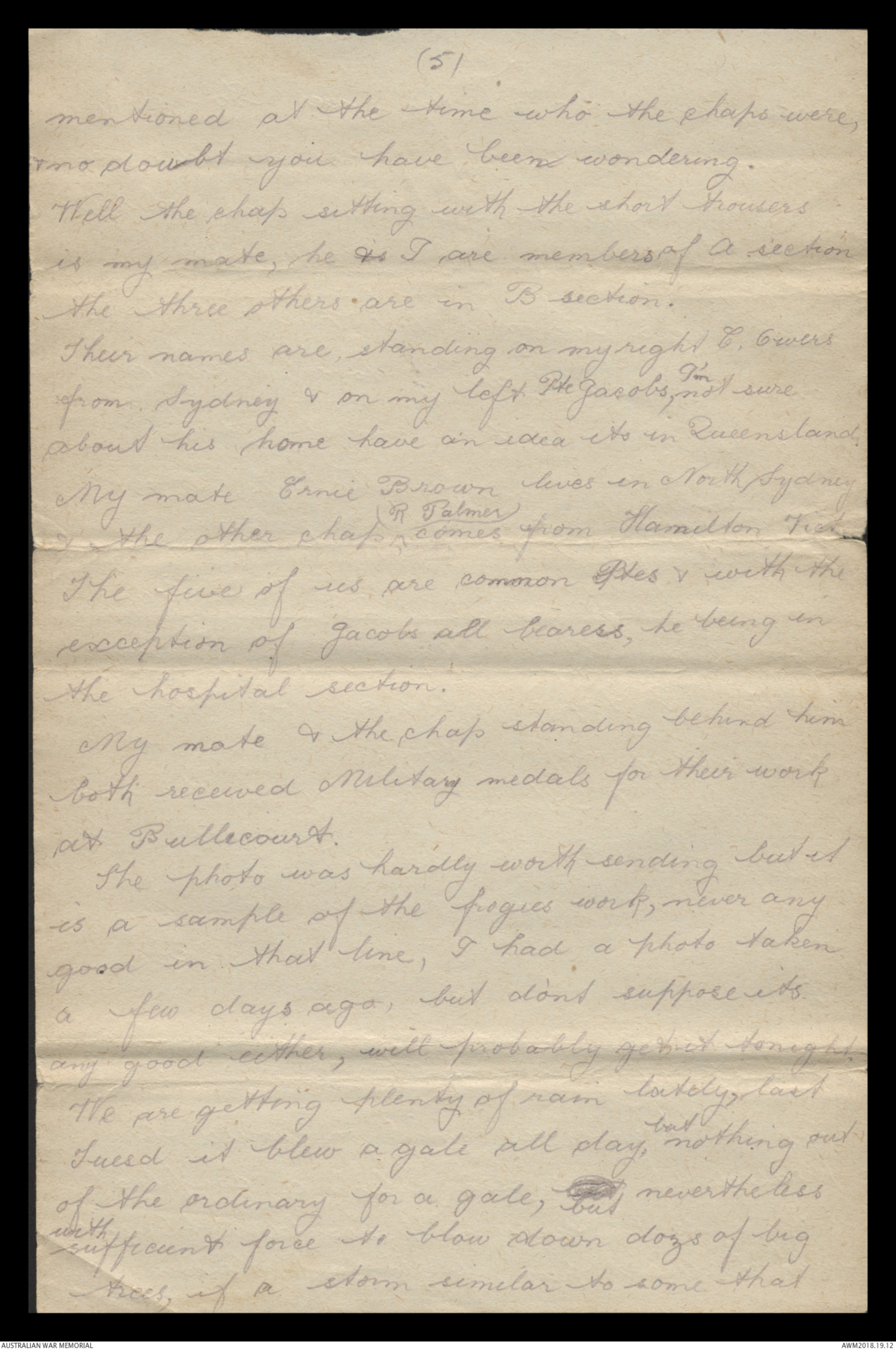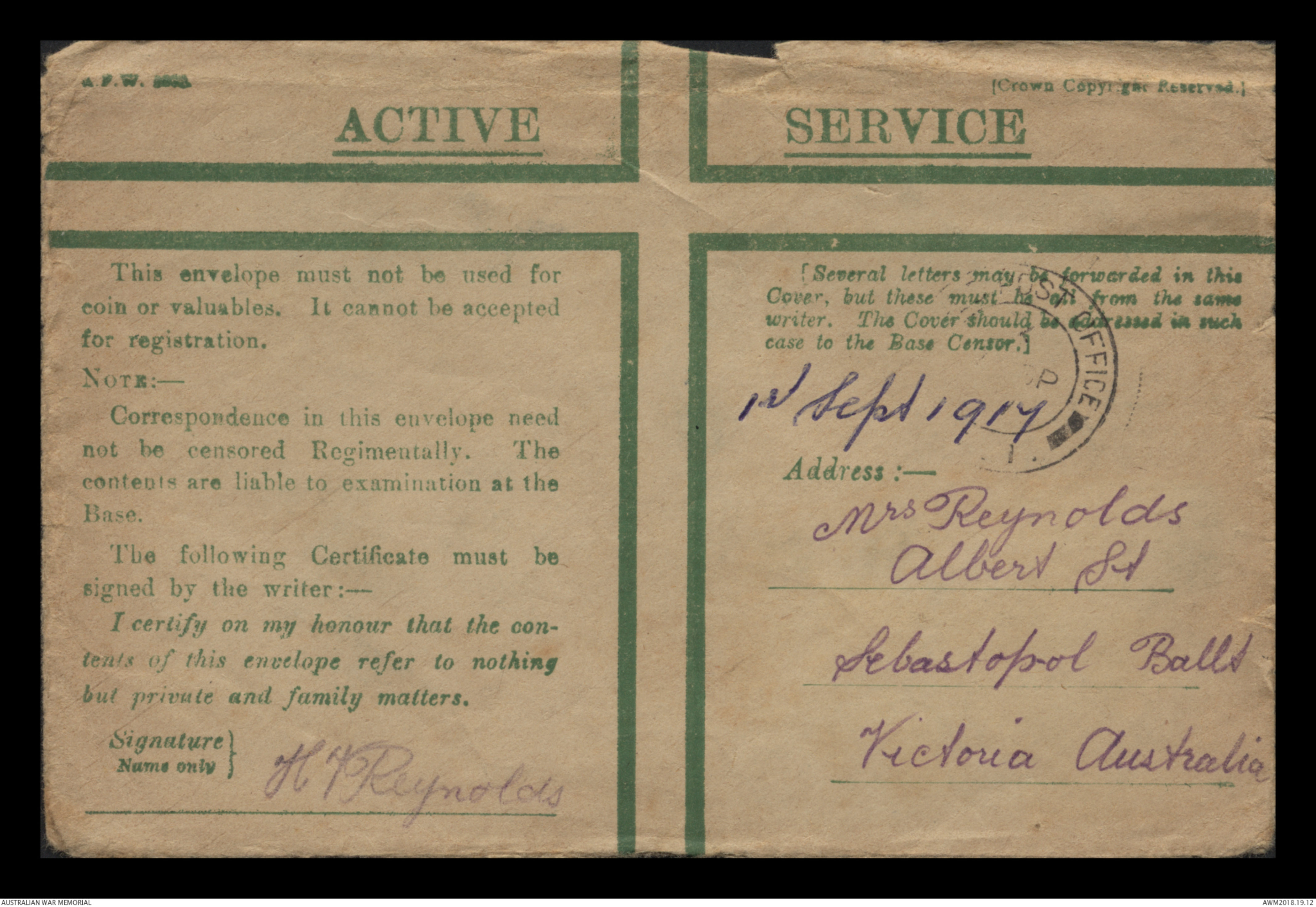 Correspondence between Herbert Vincent Reynolds and his family, 1917 - Part 5