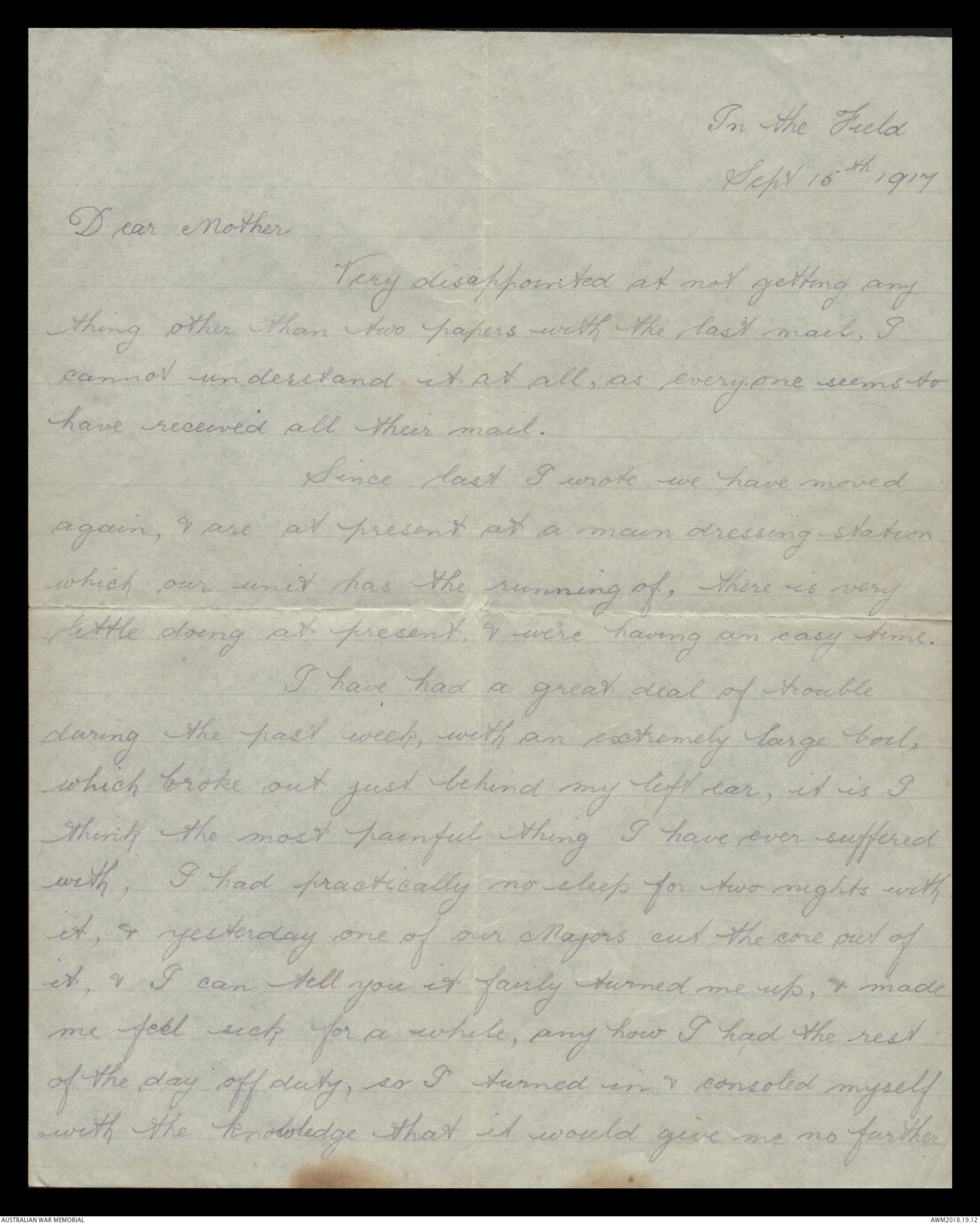 Camieres, France, 22.9.17, suffering from gunshot wound head, injury to
