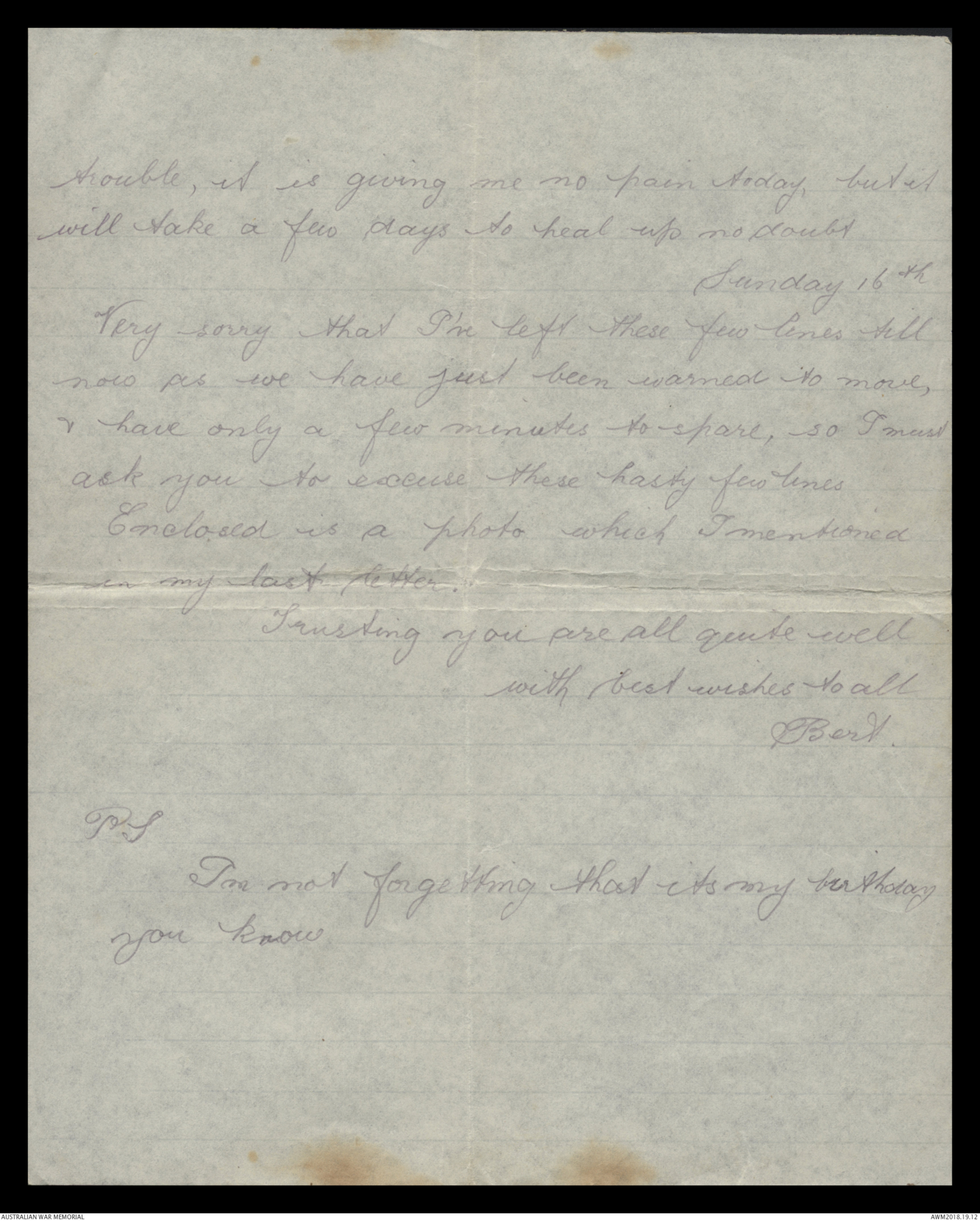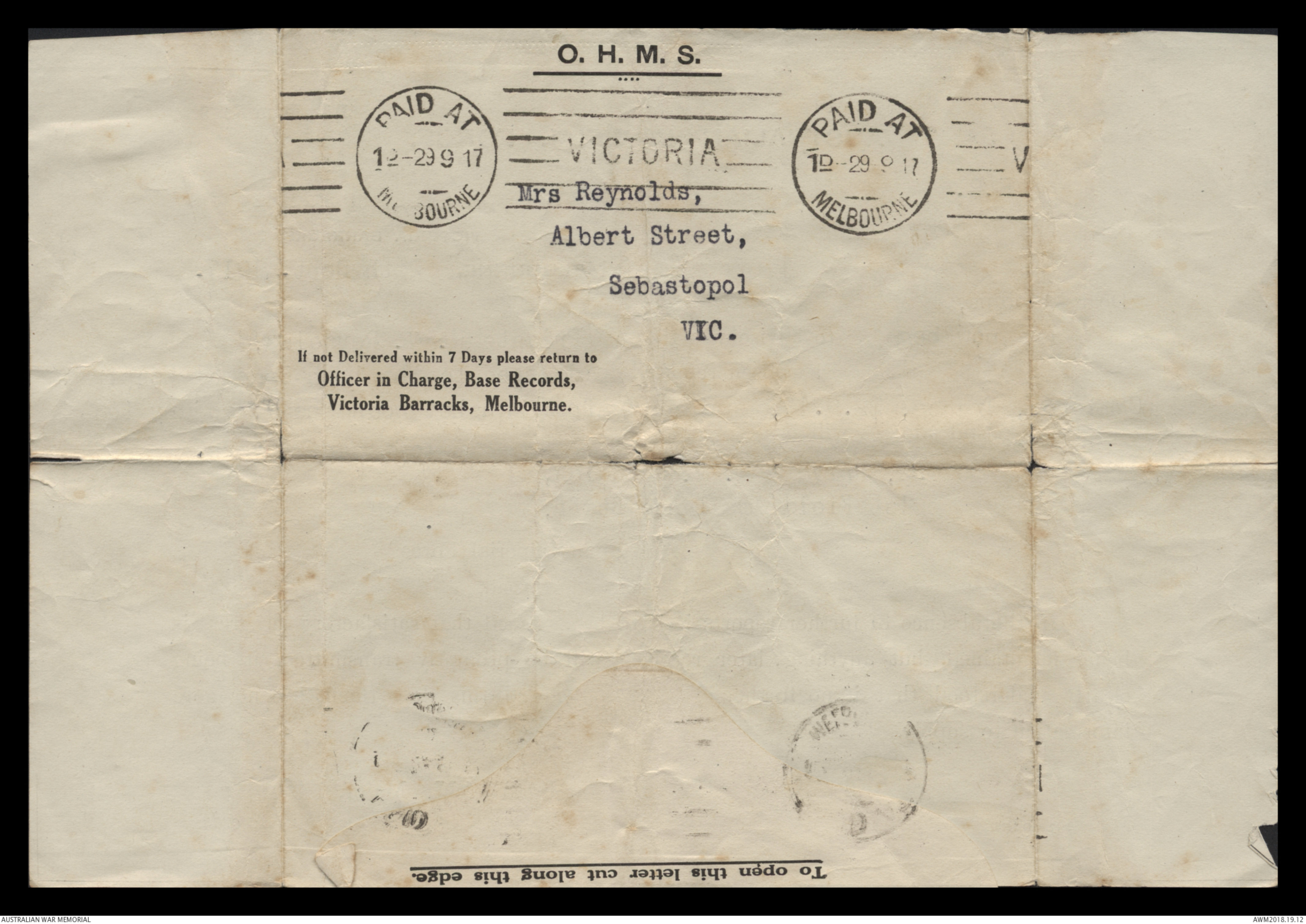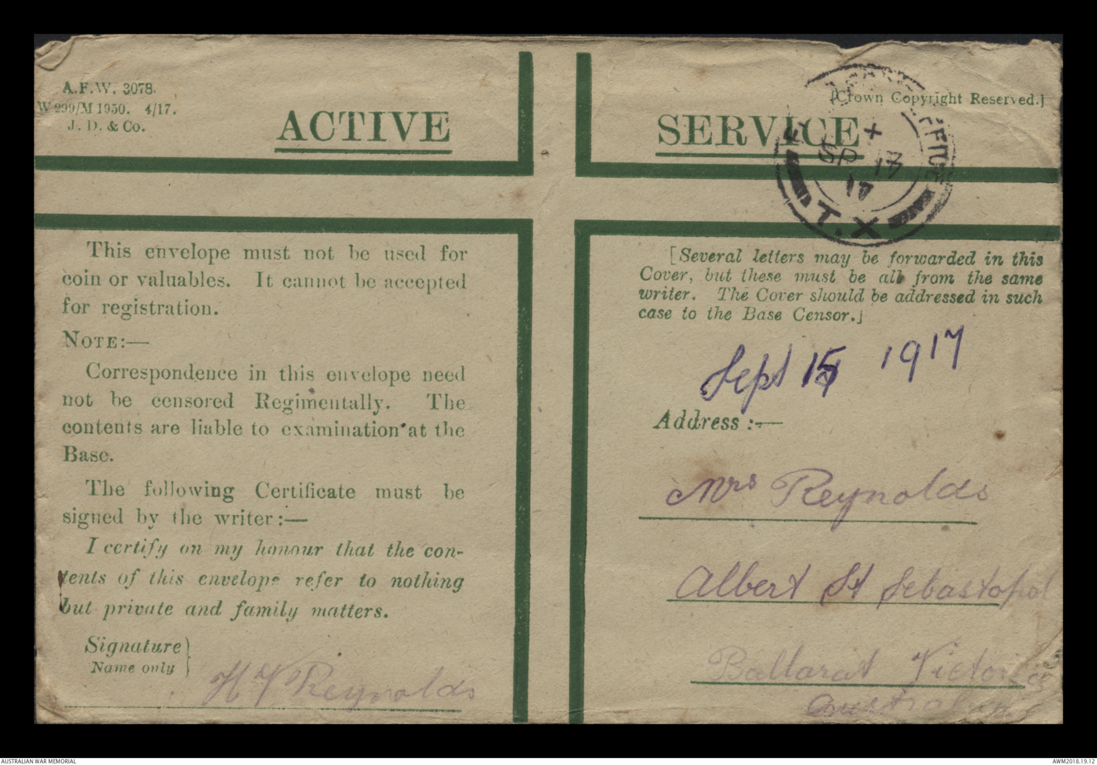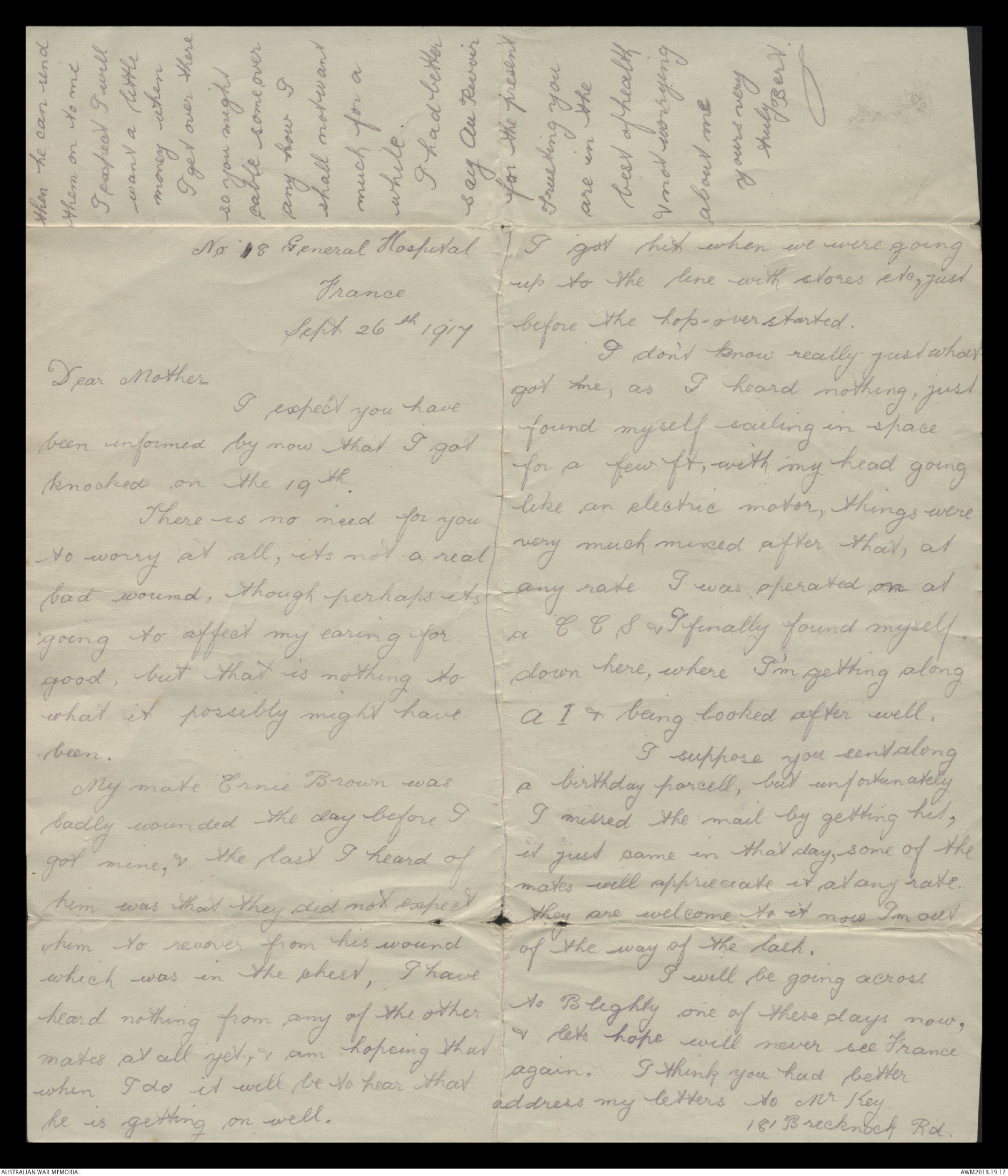 Correspondence between Herbert Vincent Reynolds and his family, 1917 - Part 6