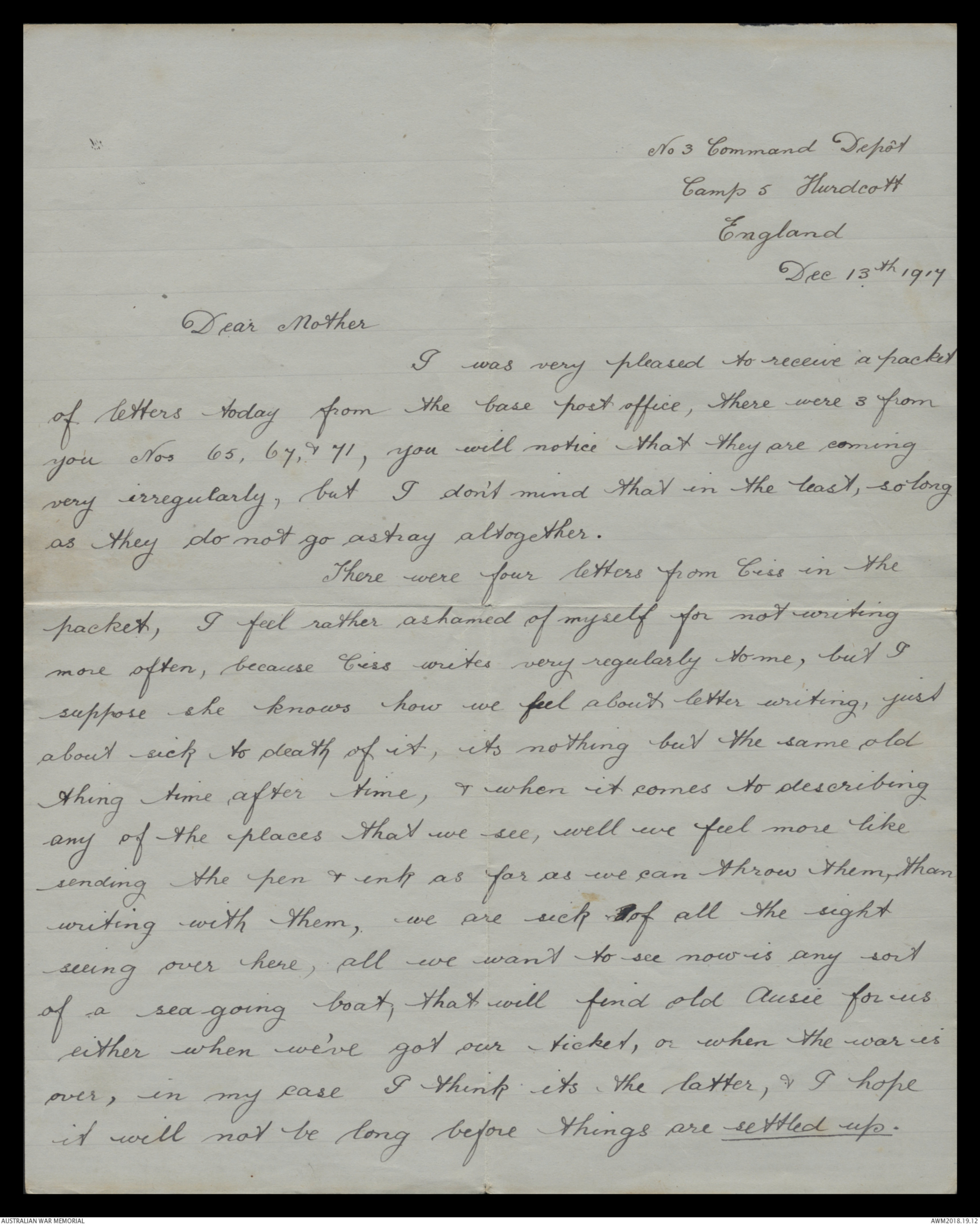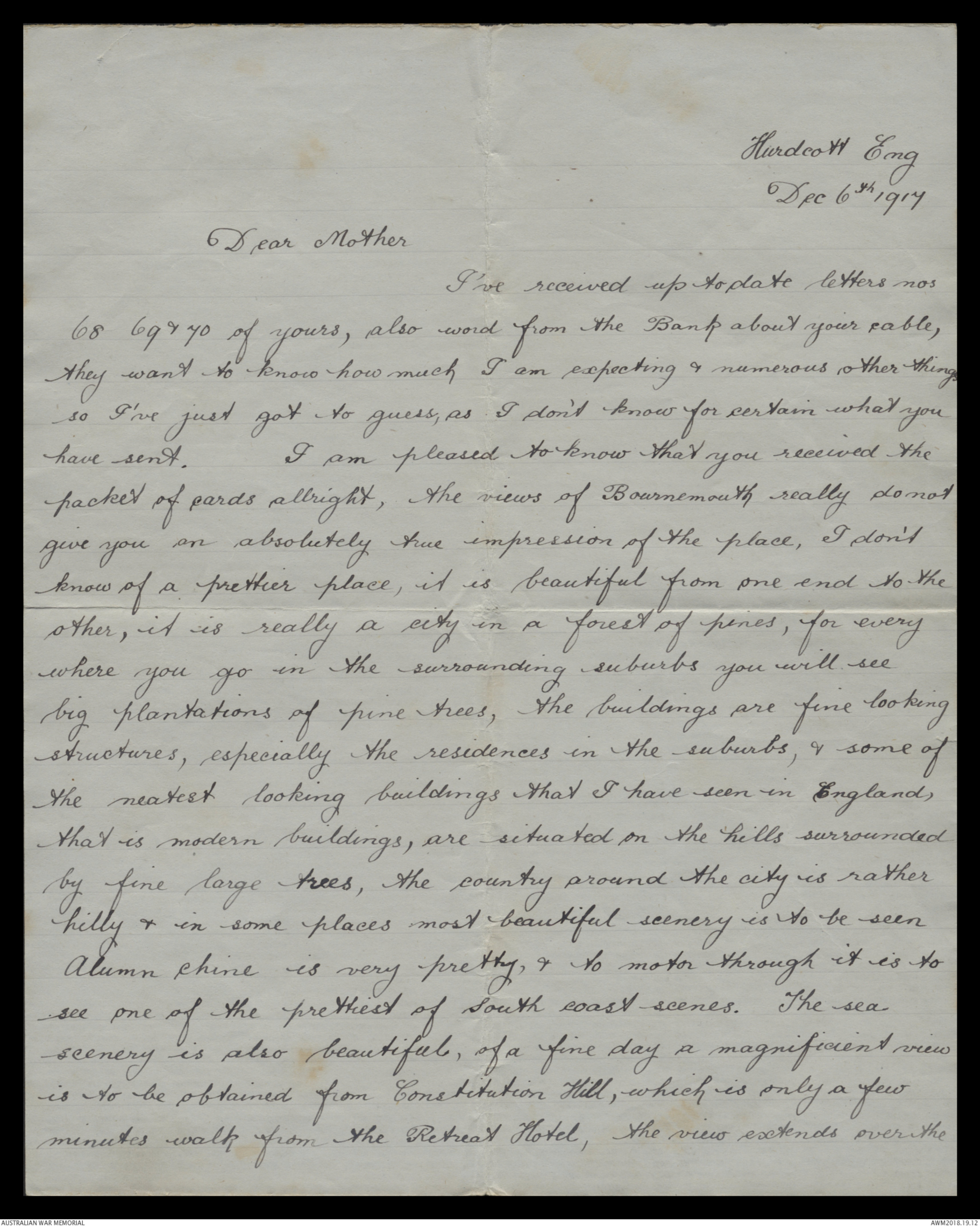 Correspondence between Herbert Vincent Reynolds and his family, 1917 - Part 11