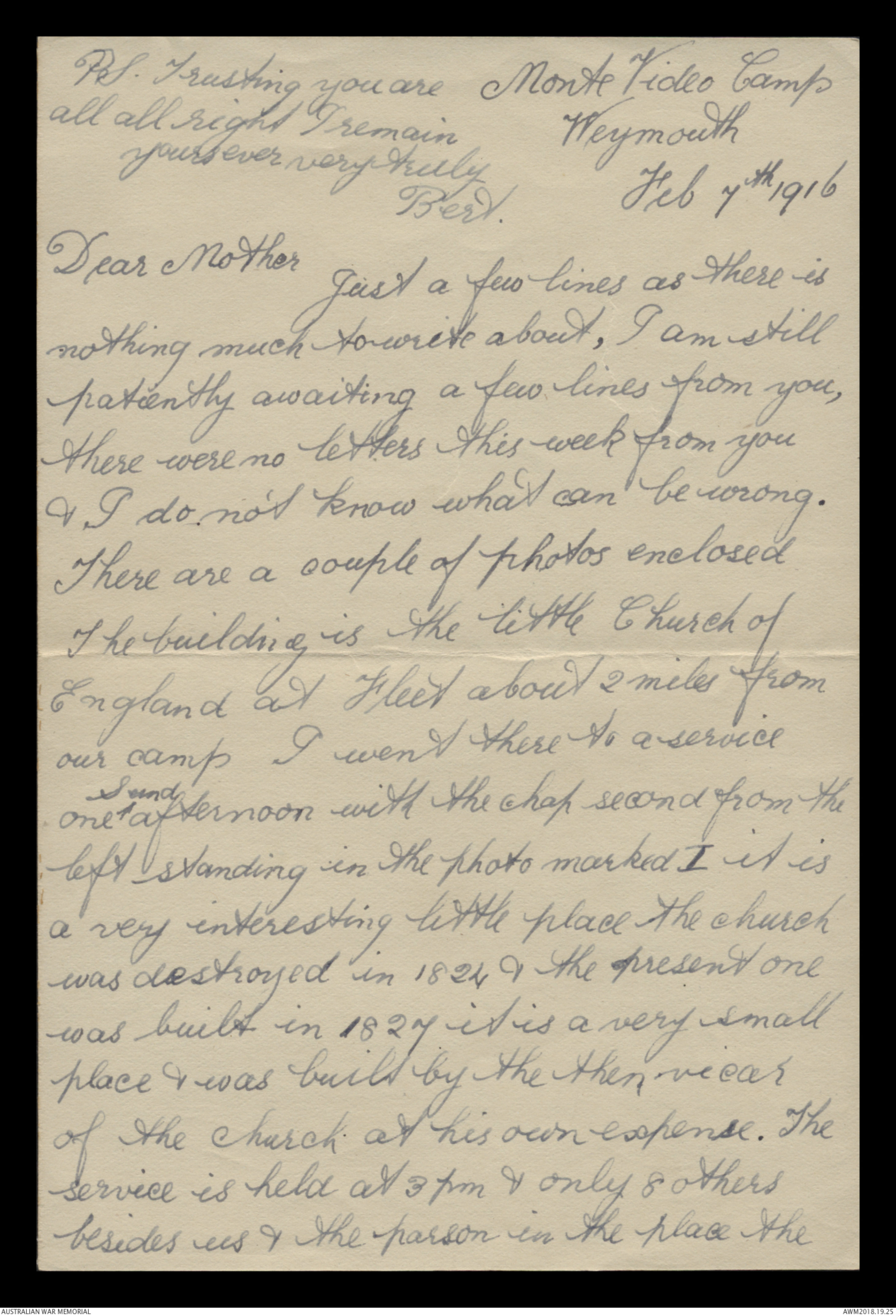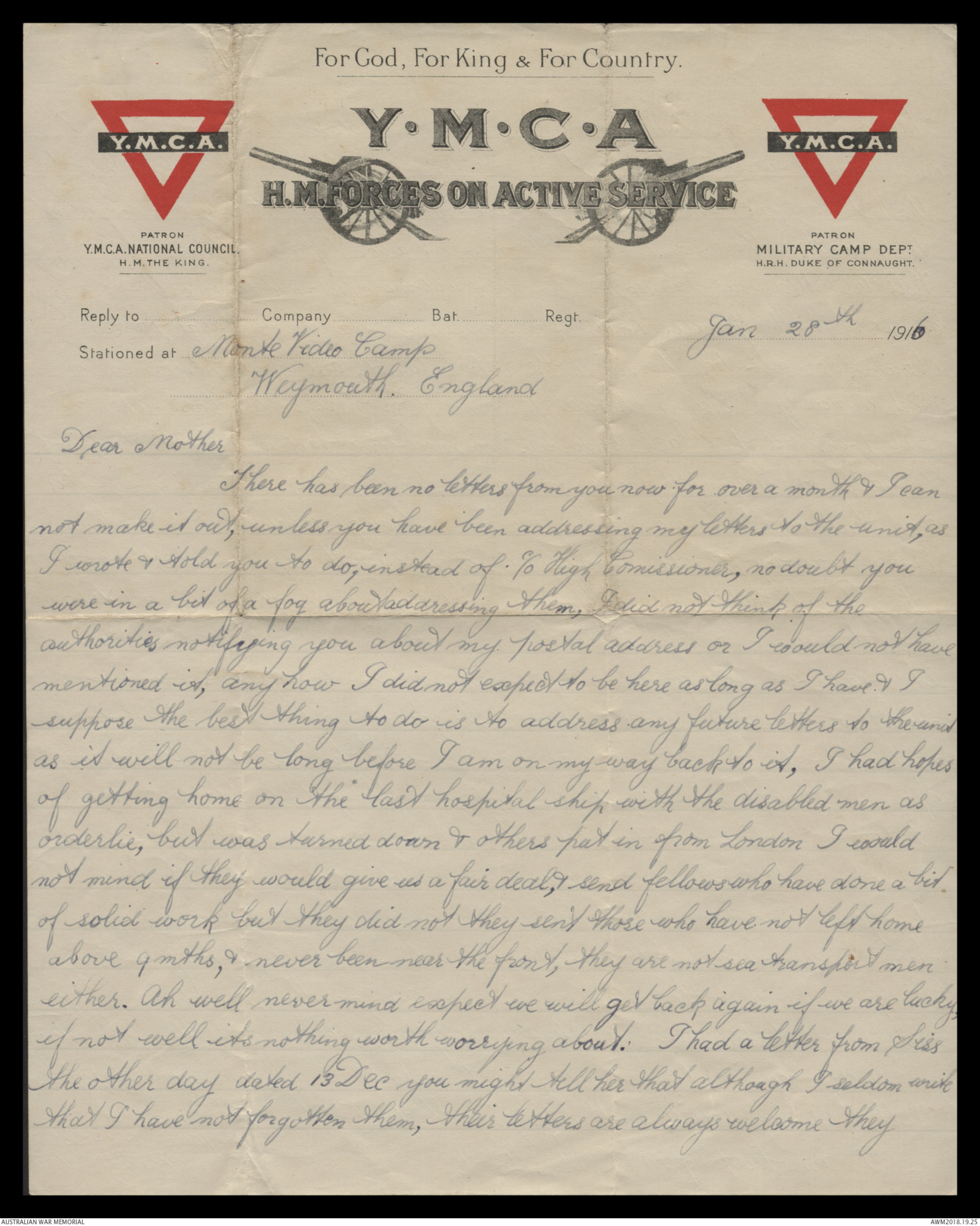 Correspondence between Herbert Vincent Reynolds and his family, 1916 - Part 1