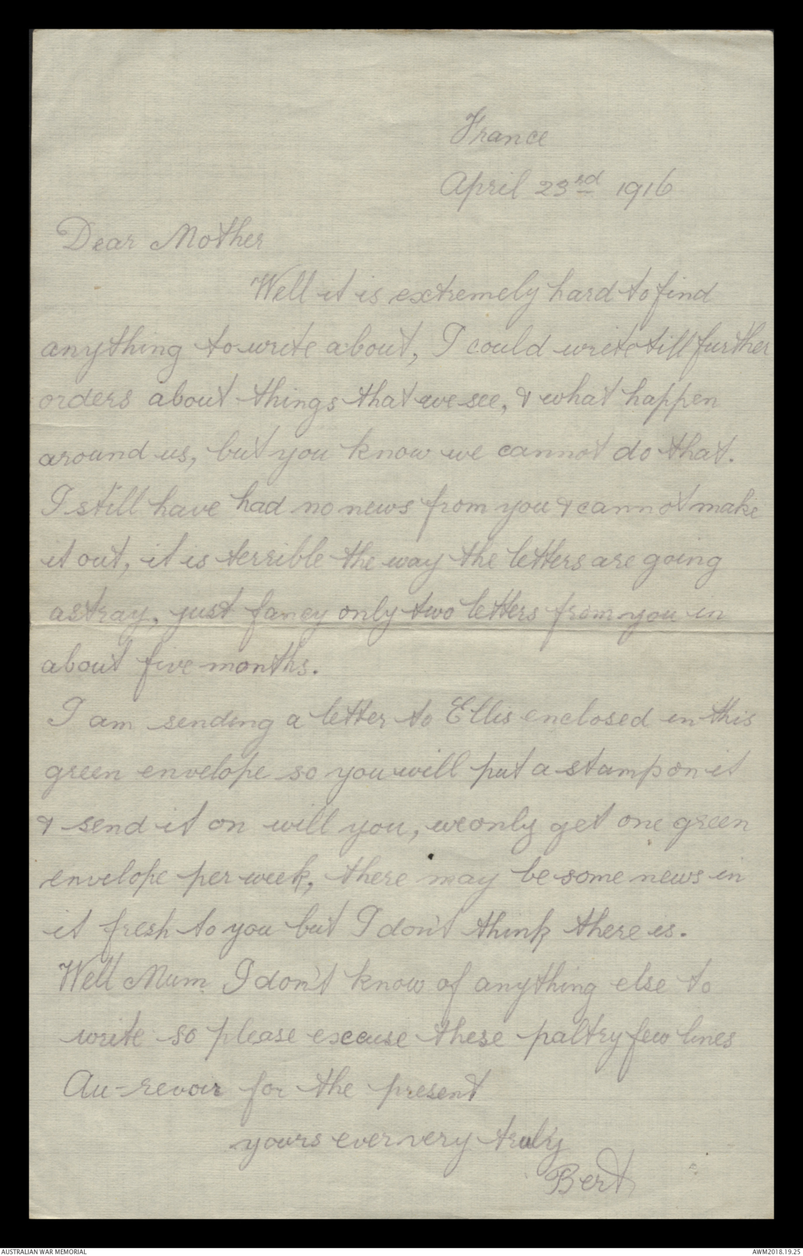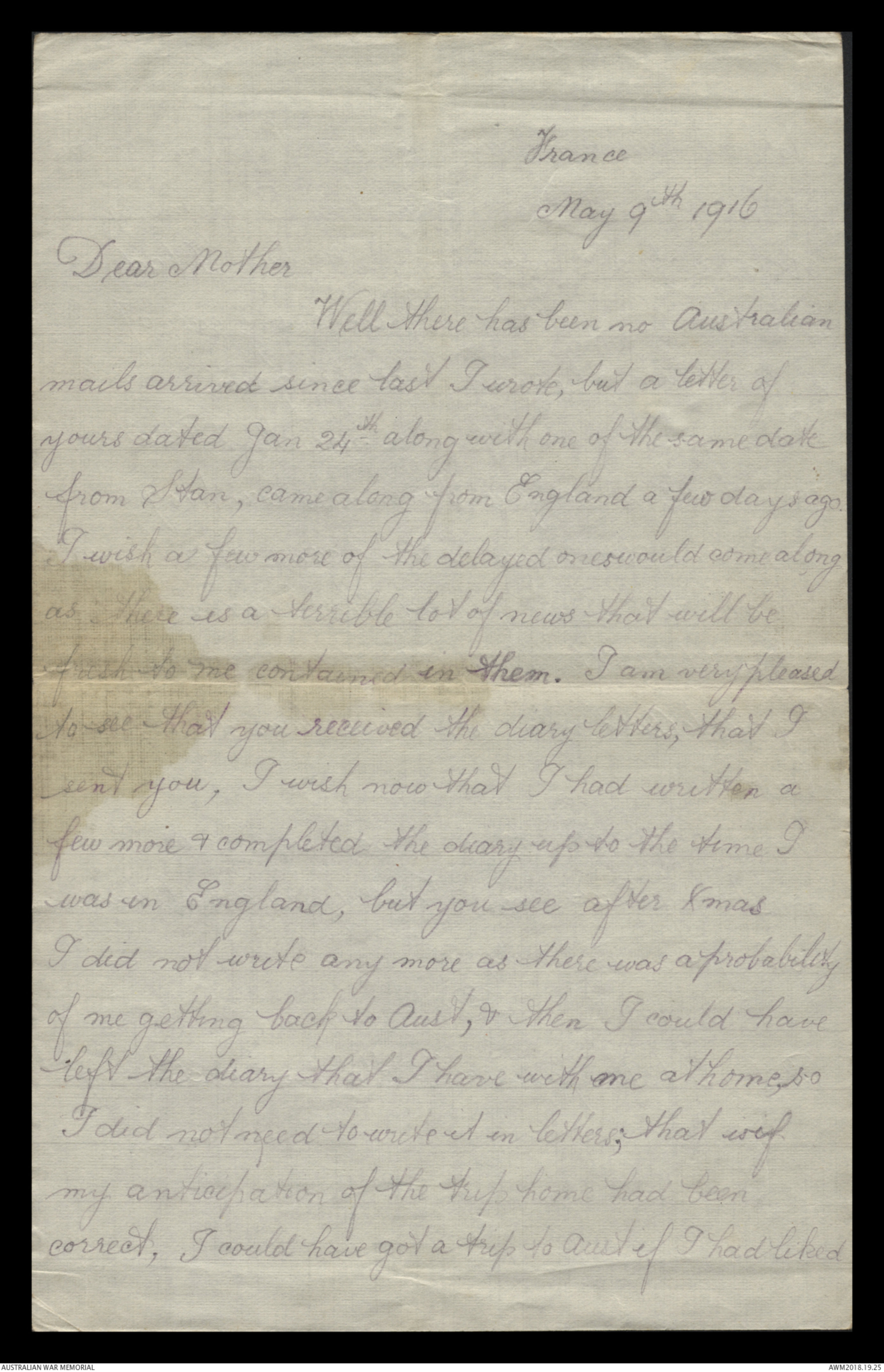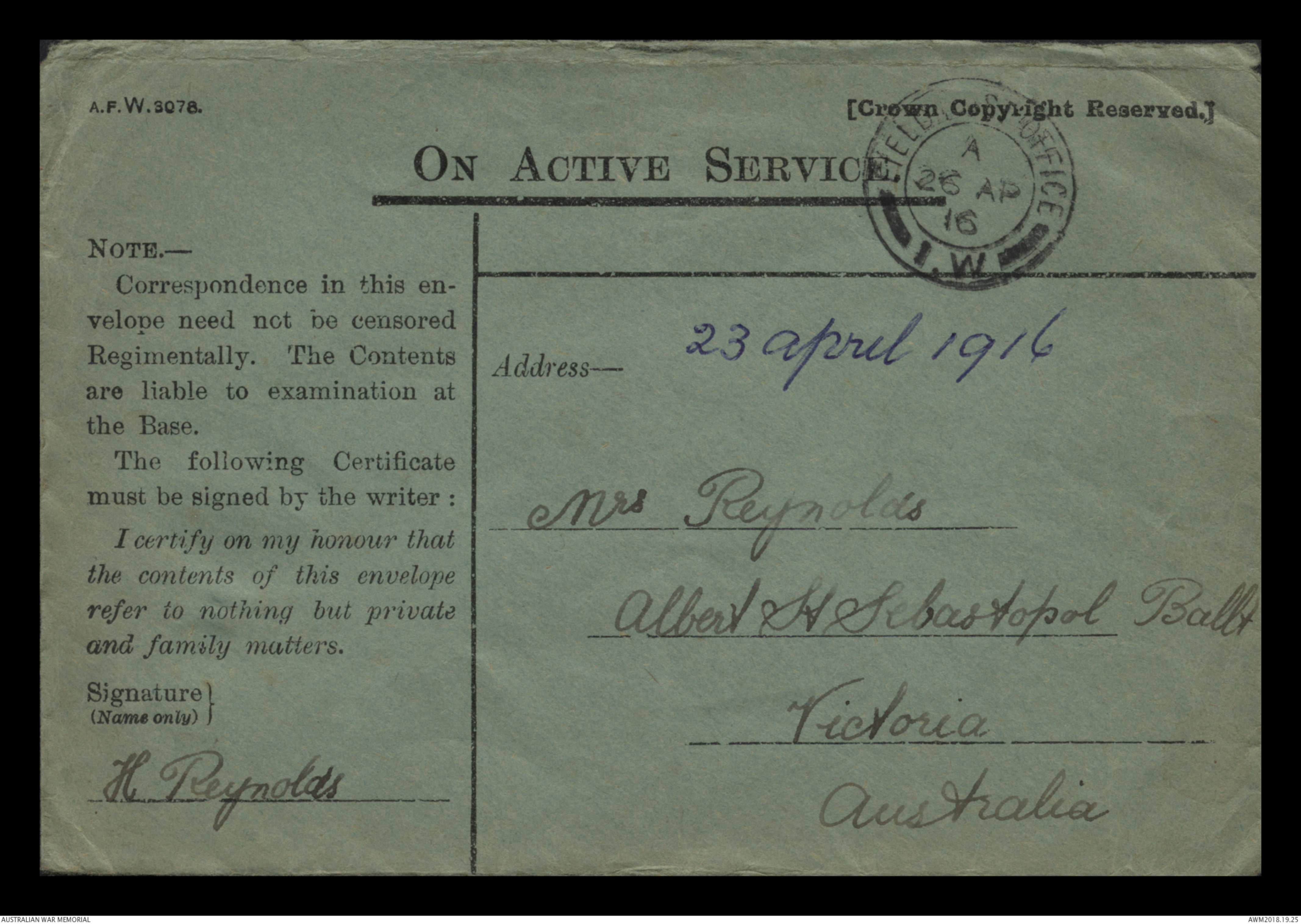 Correspondence between Herbert Vincent Reynolds and his family, 1916 - Part 5