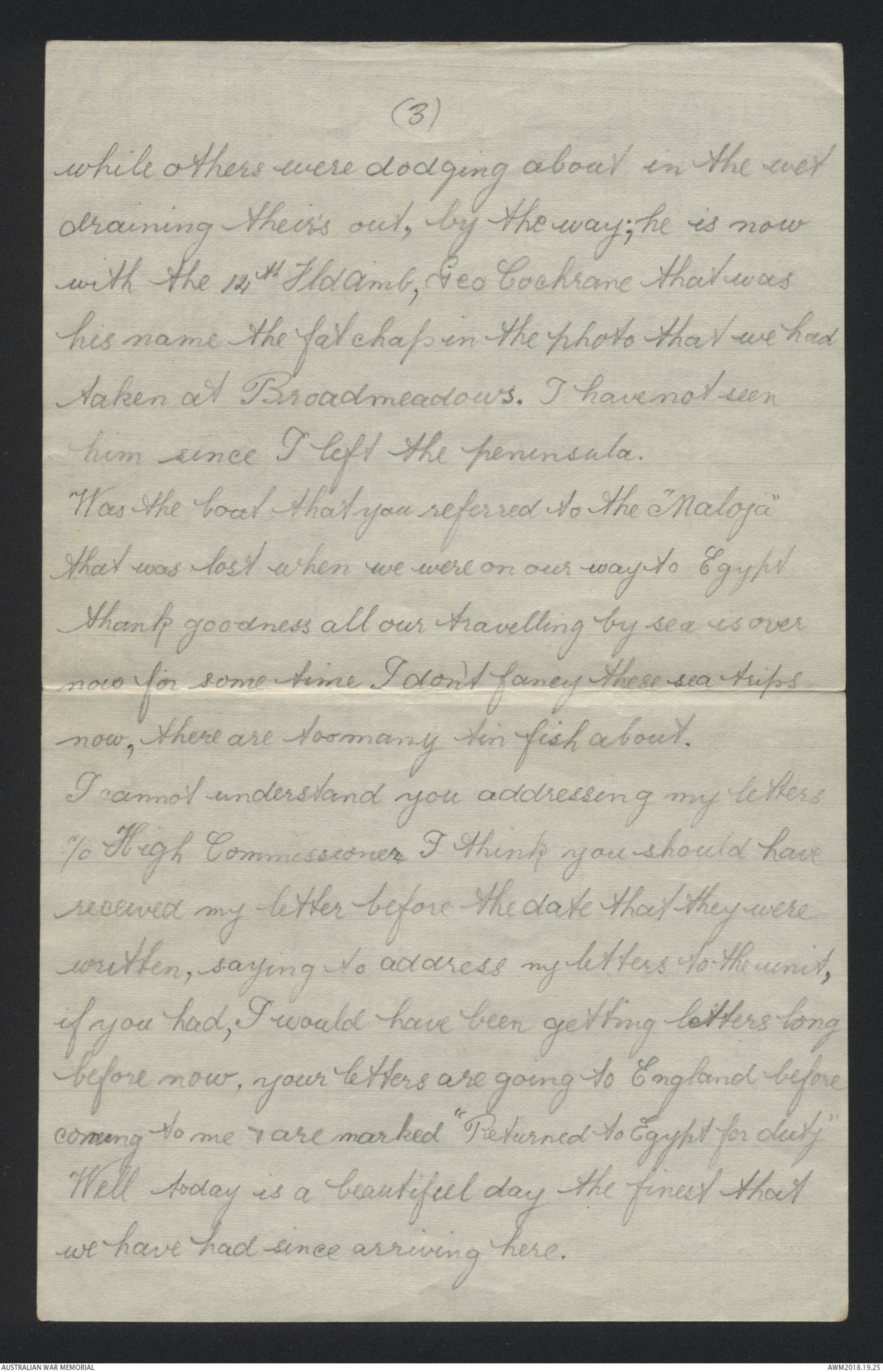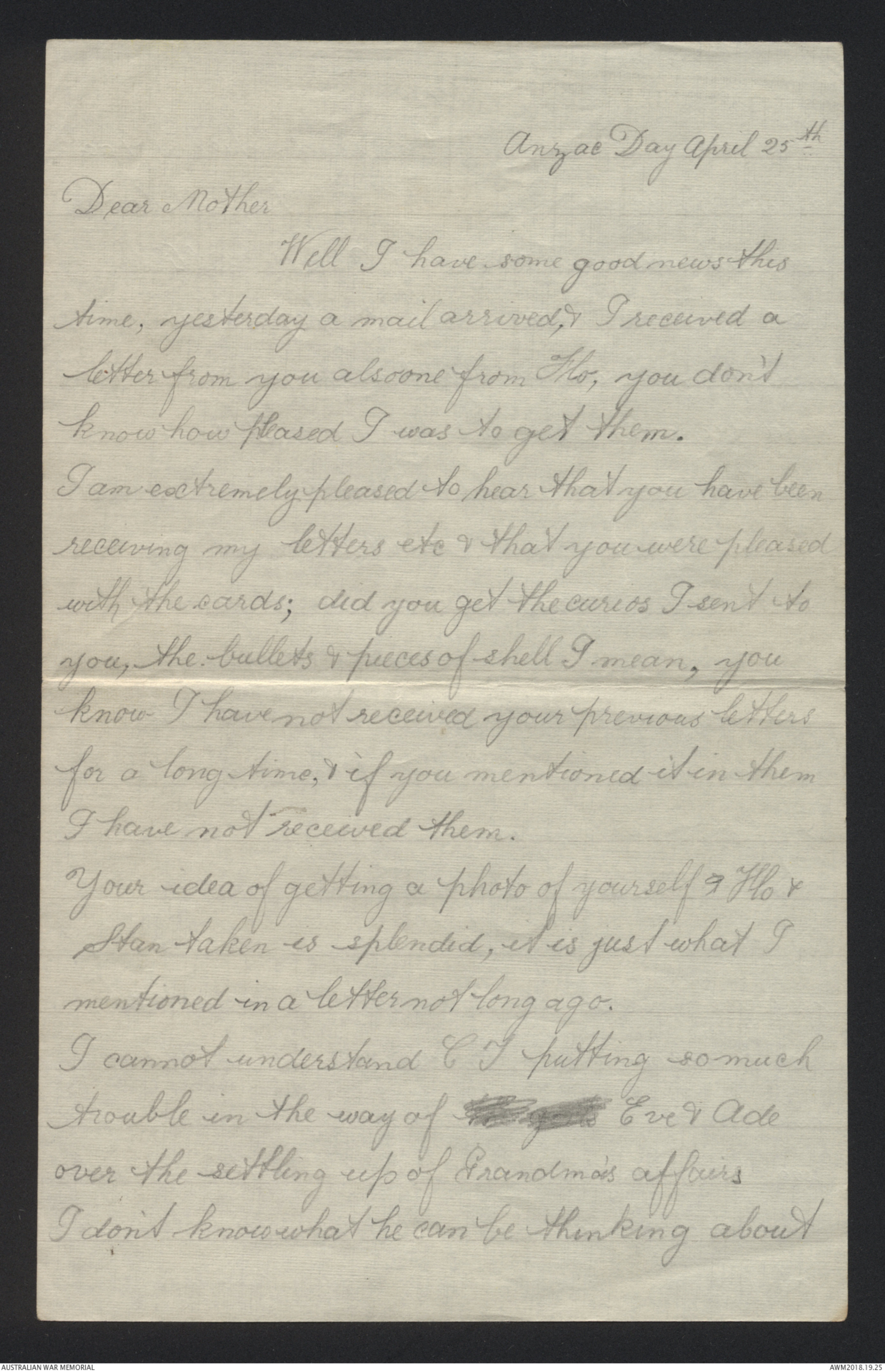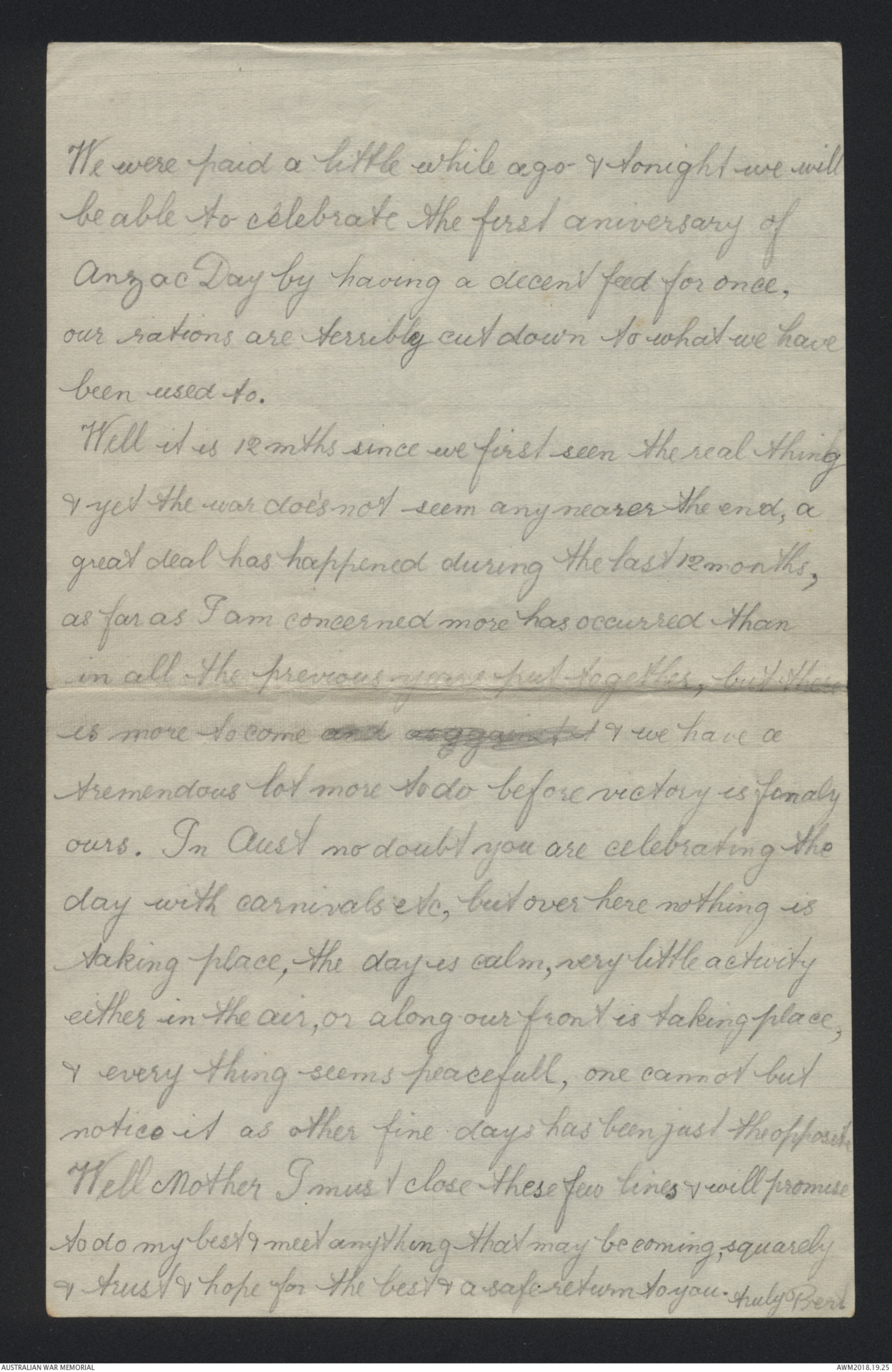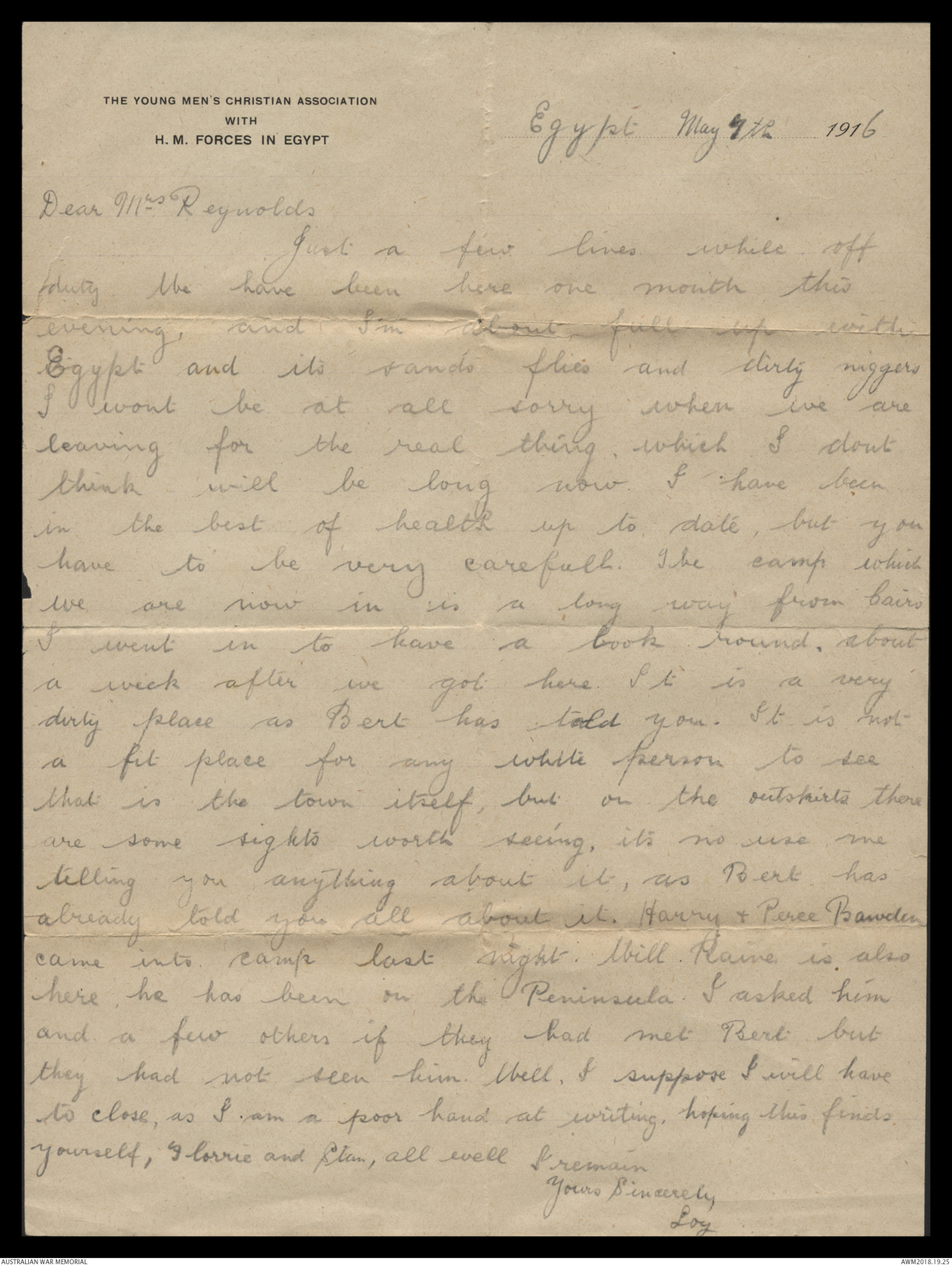 Correspondence between Herbert Vincent Reynolds and his family, 1916 - Part 5