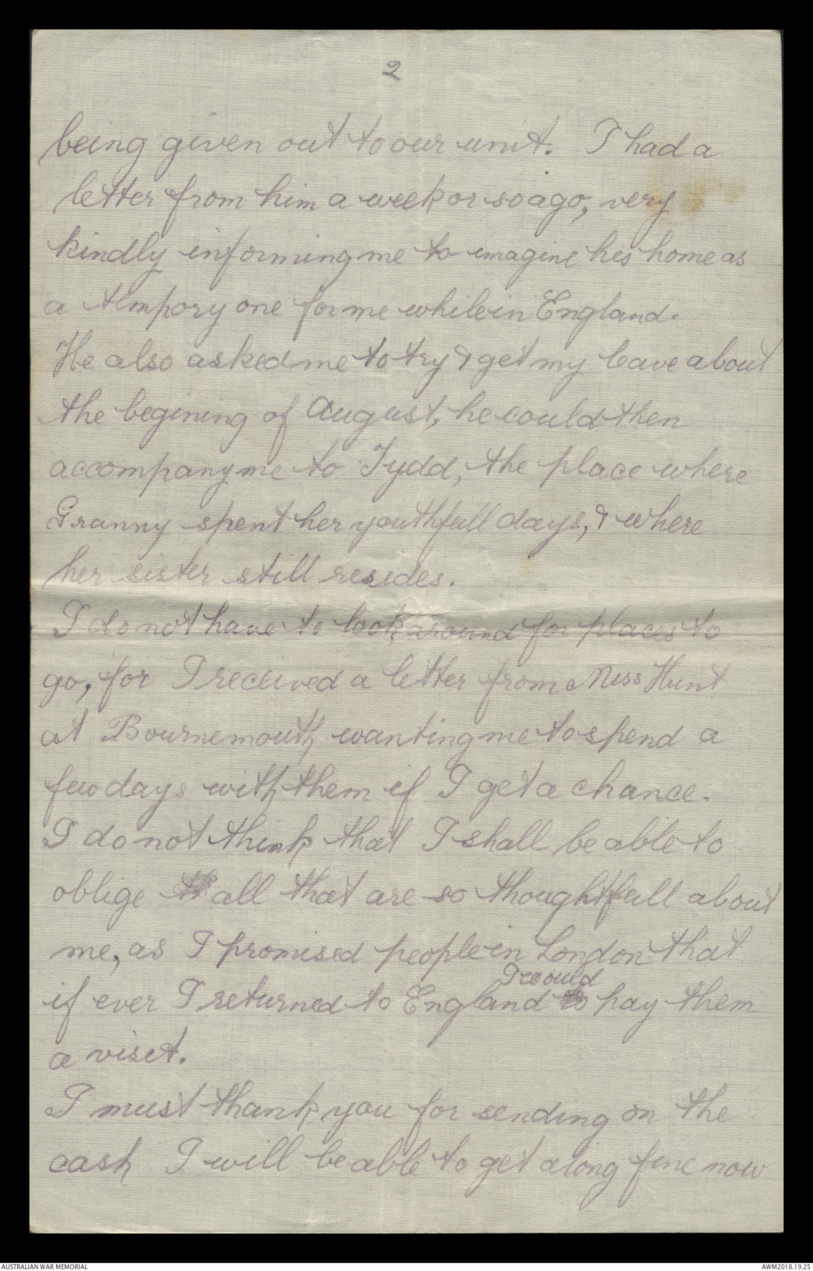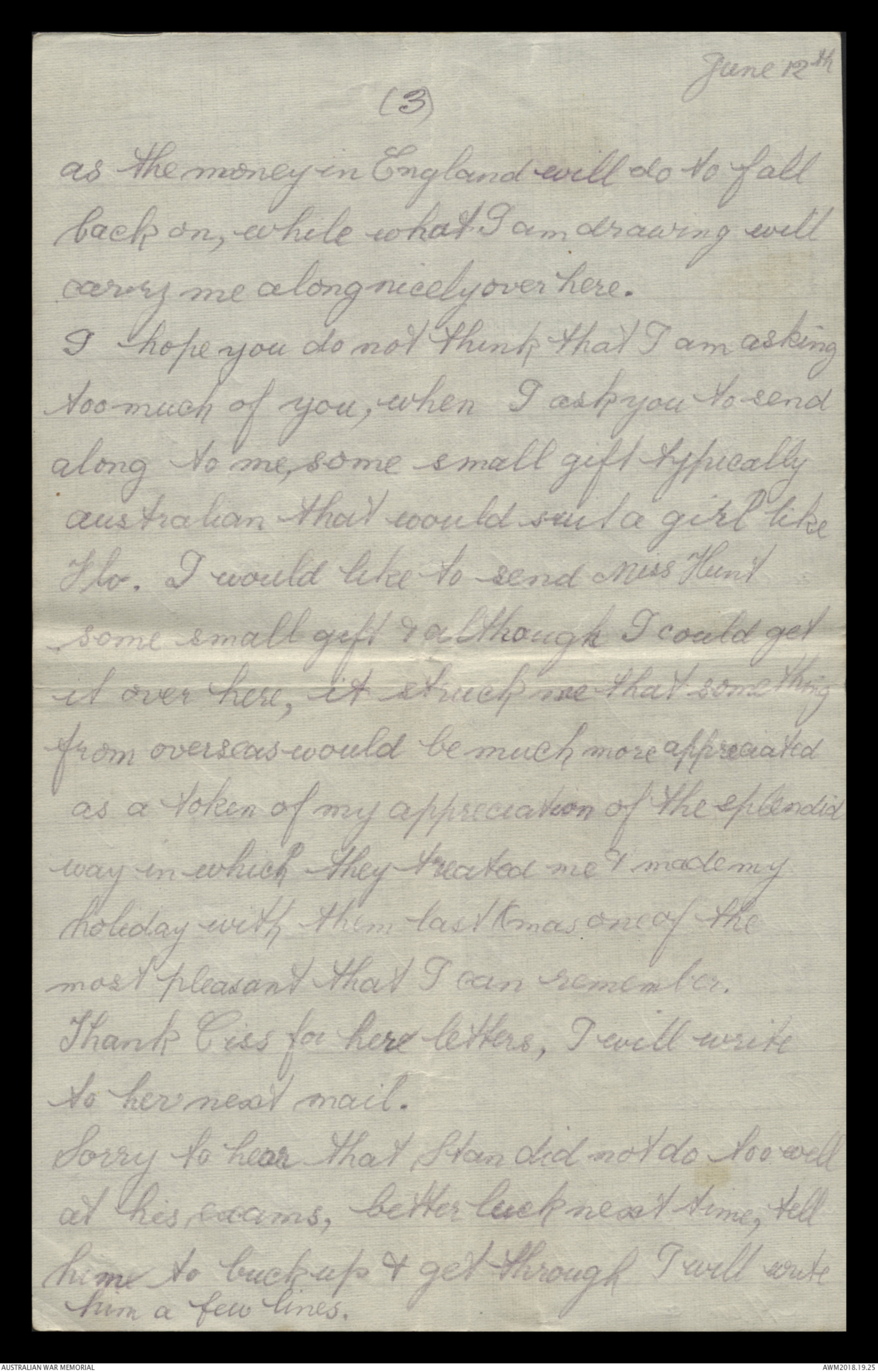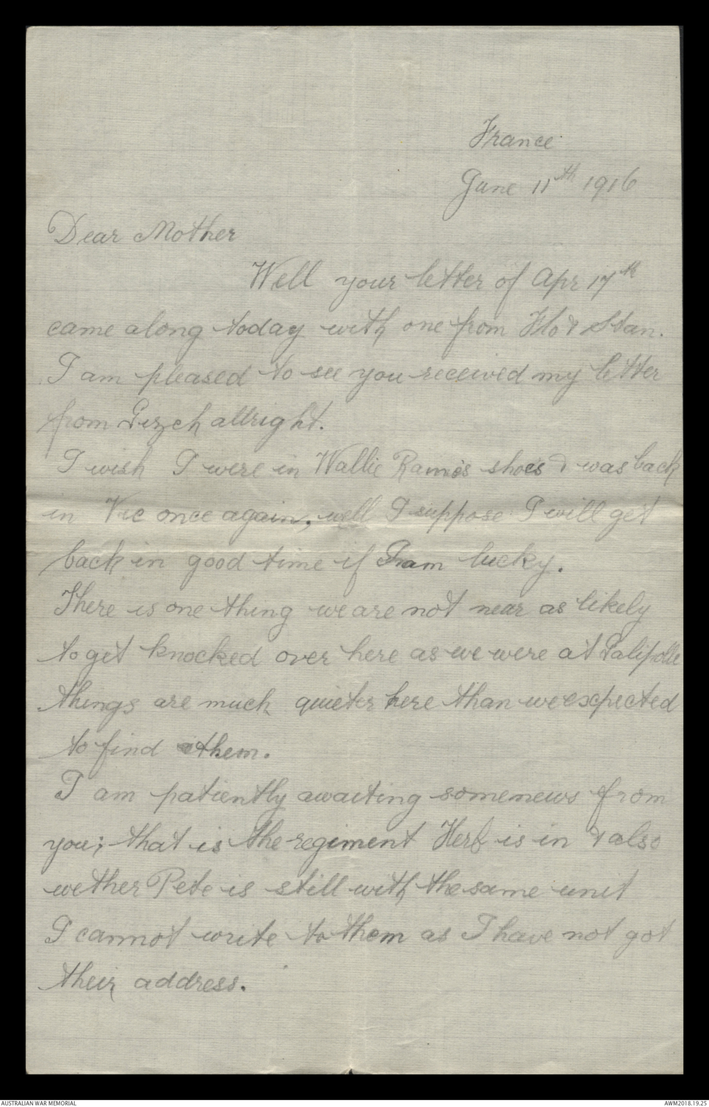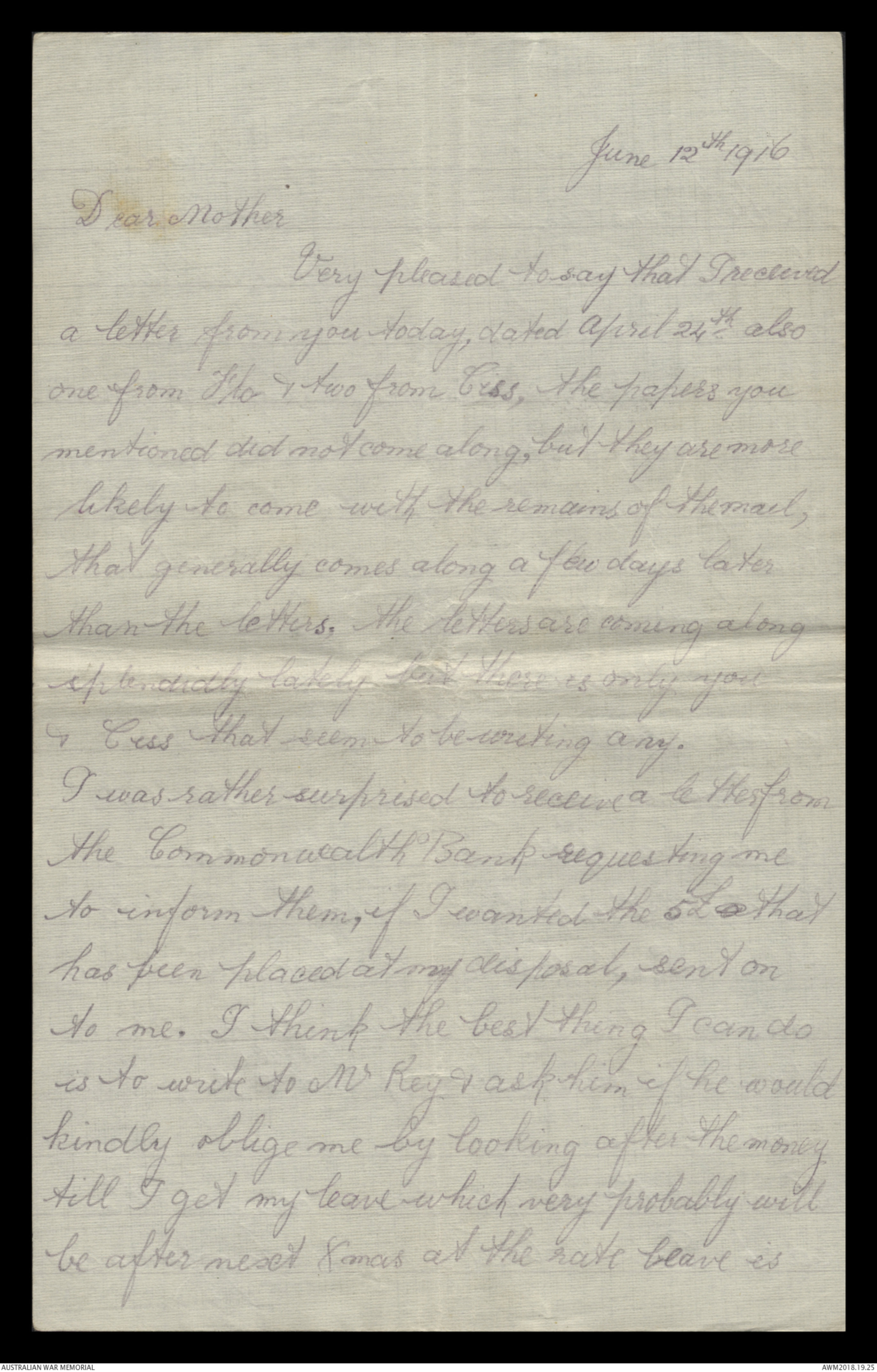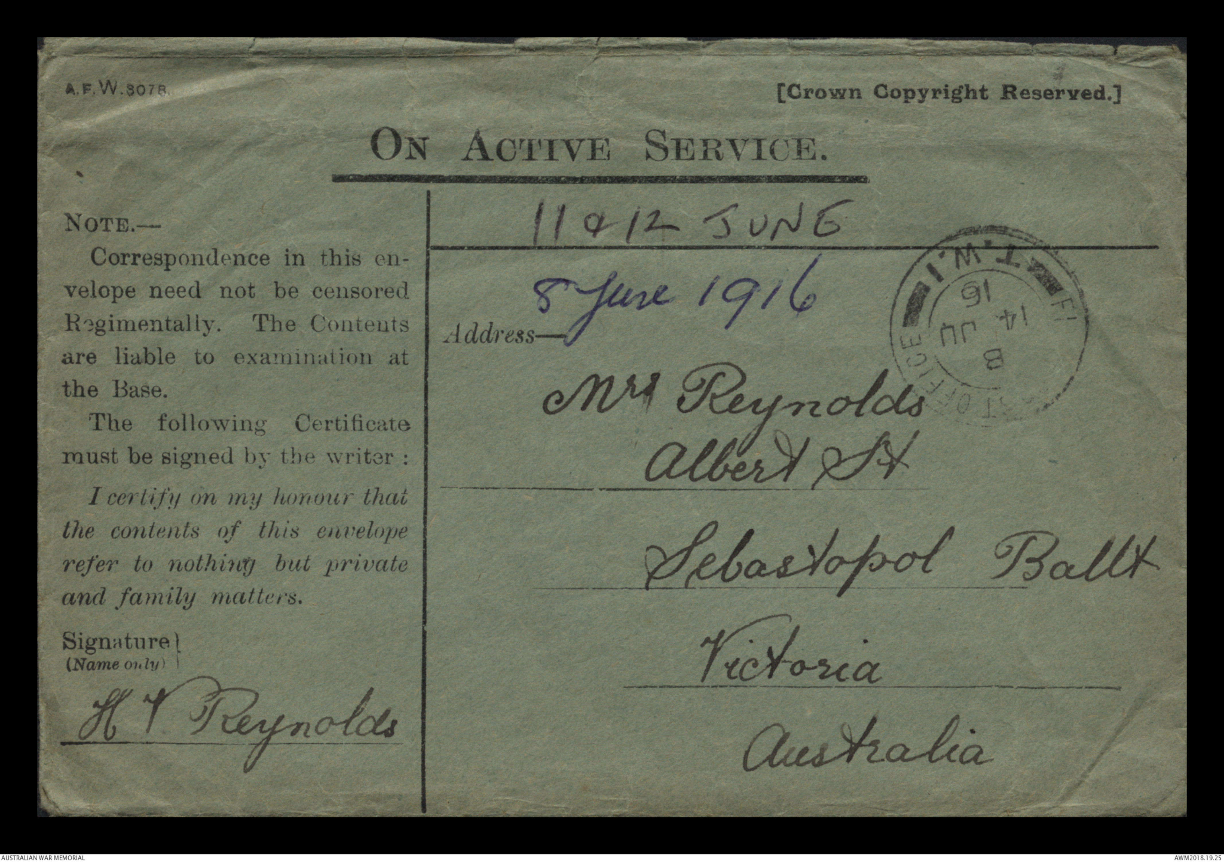 Correspondence between Herbert Vincent Reynolds and his family, 1916 - Part 7
