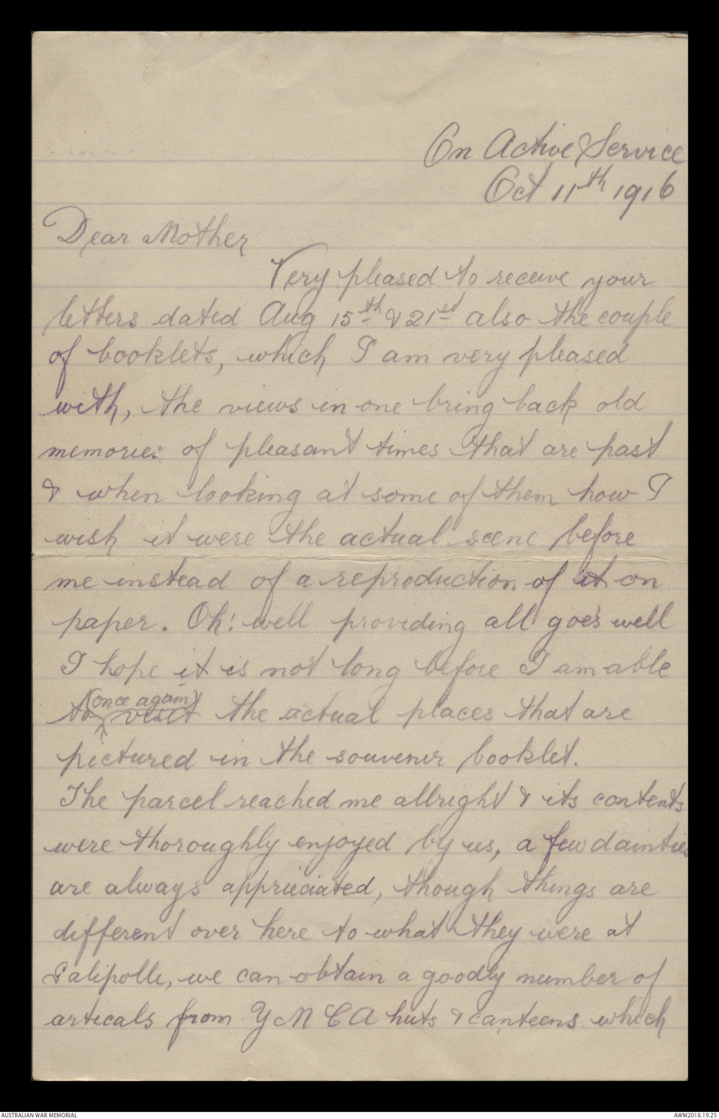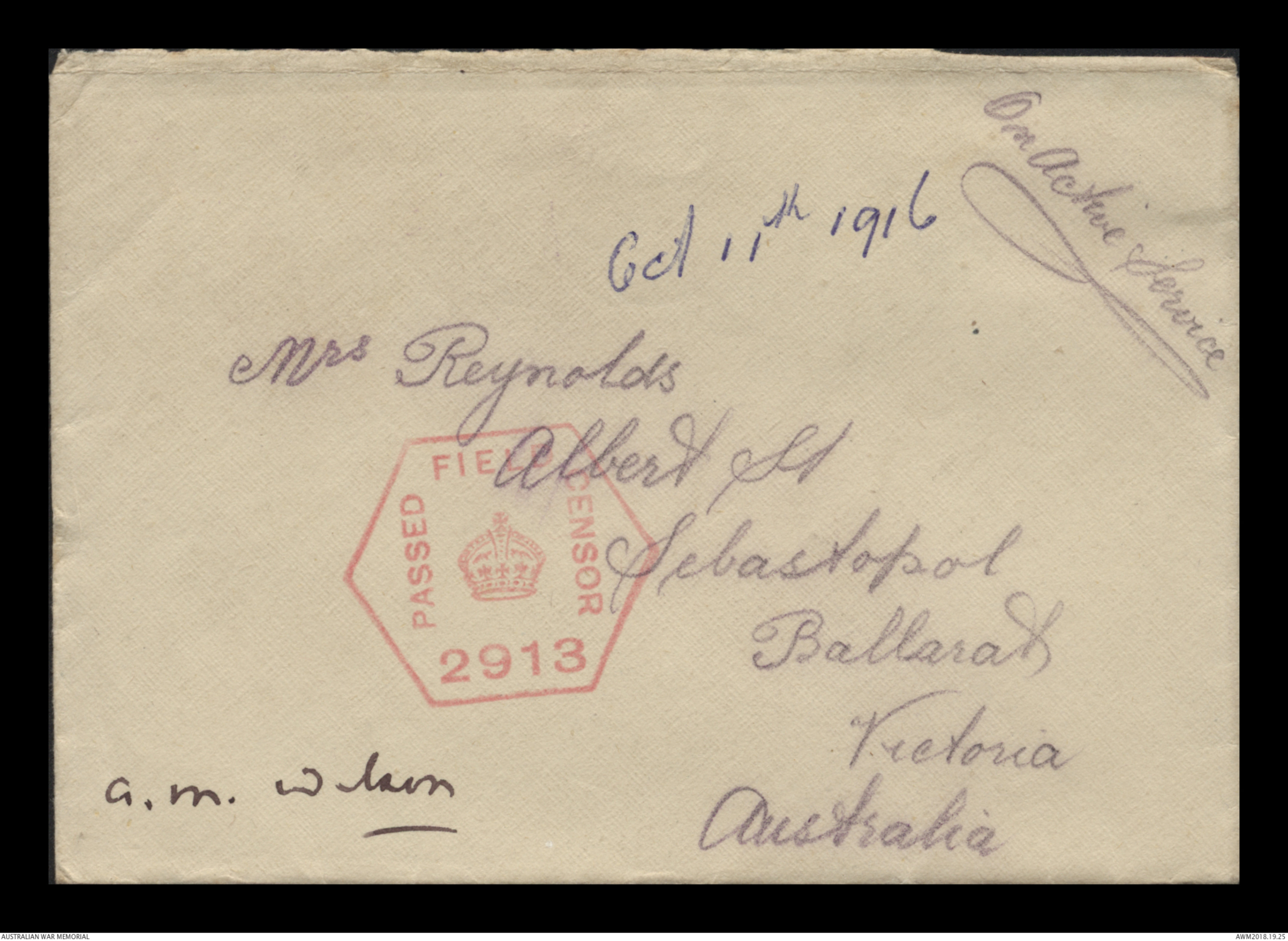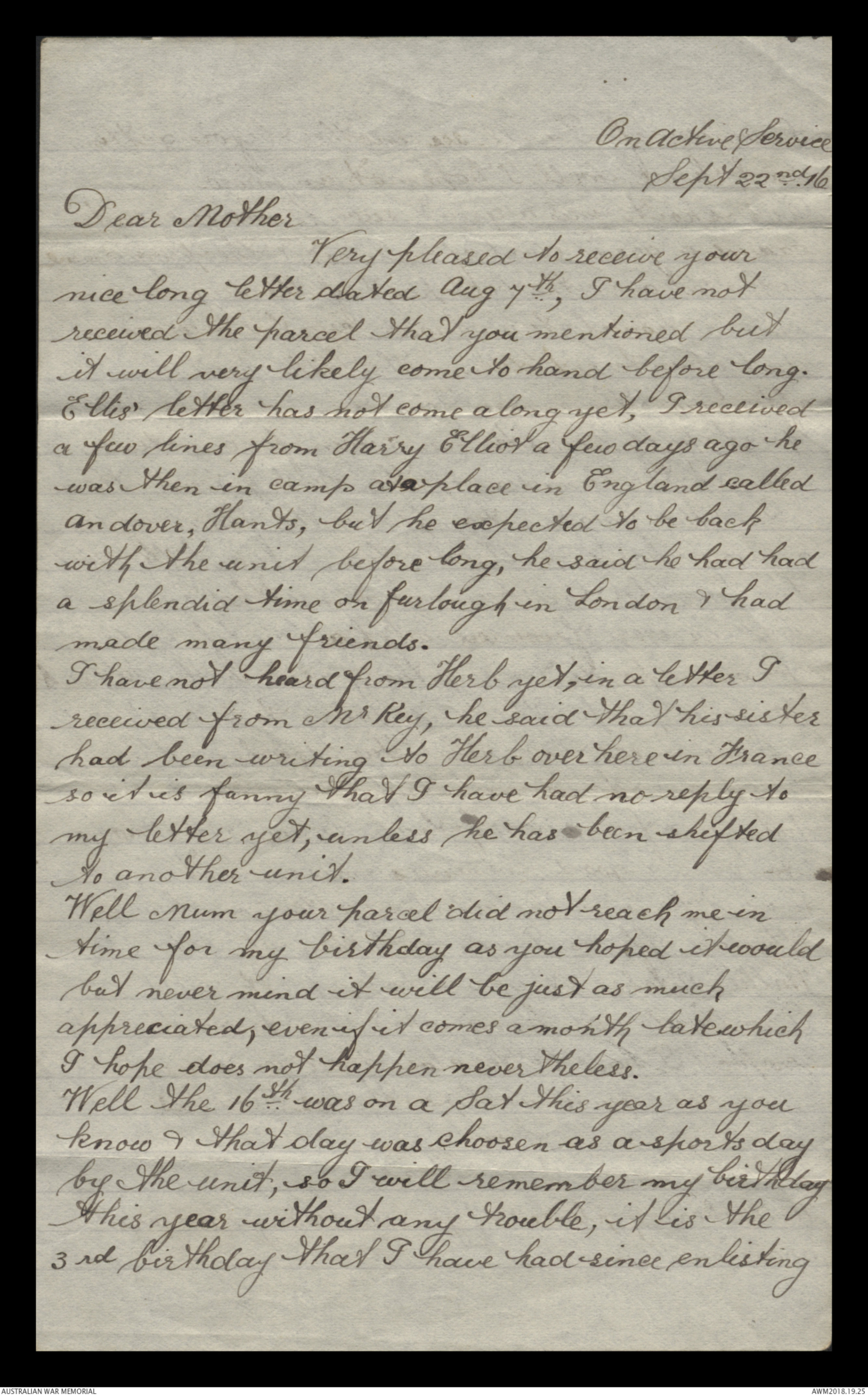 Correspondence between Herbert Vincent Reynolds and his family, 1916 - Part 10