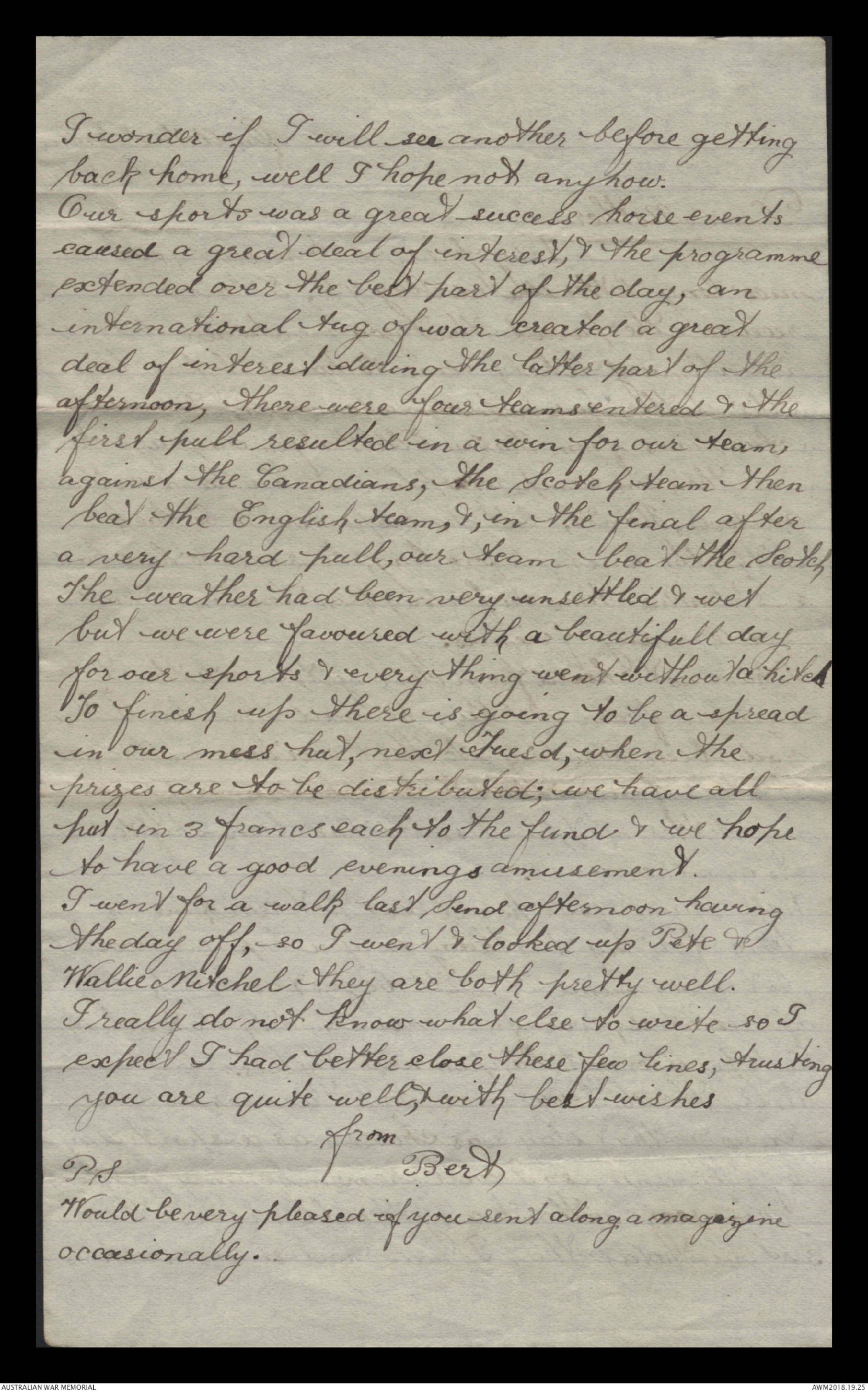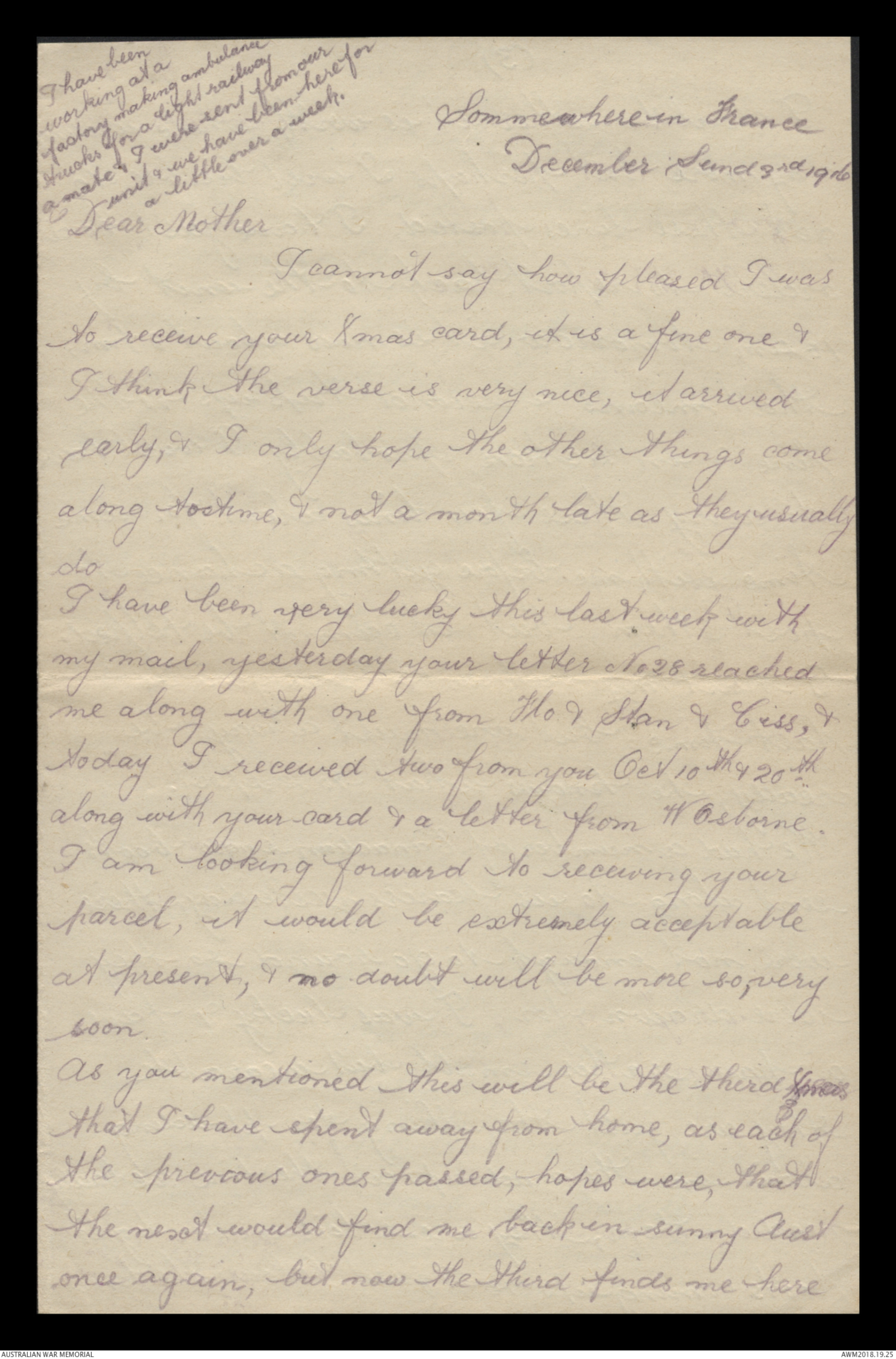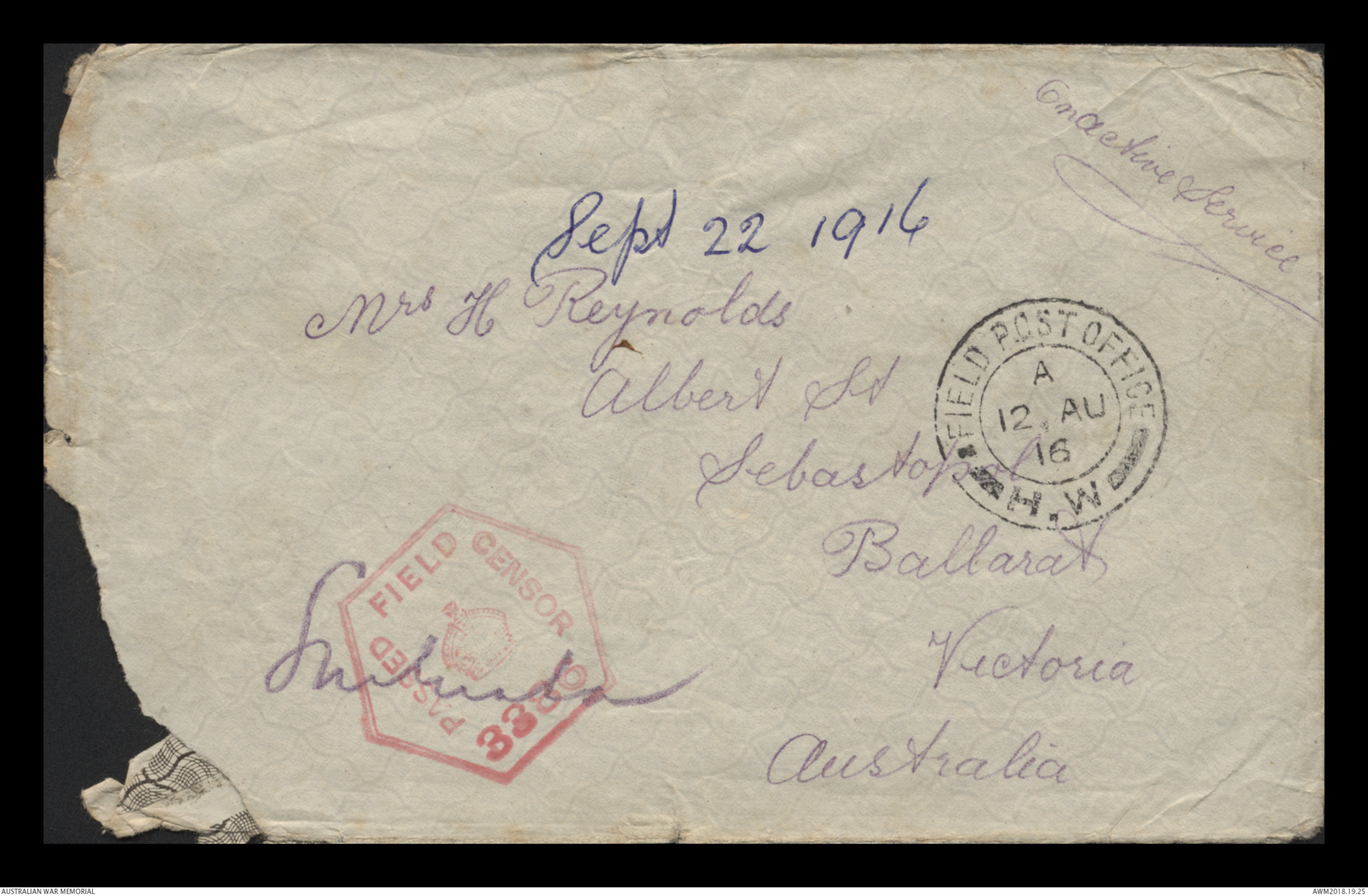 Correspondence between Herbert Vincent Reynolds and his family, 1916 - Part 10