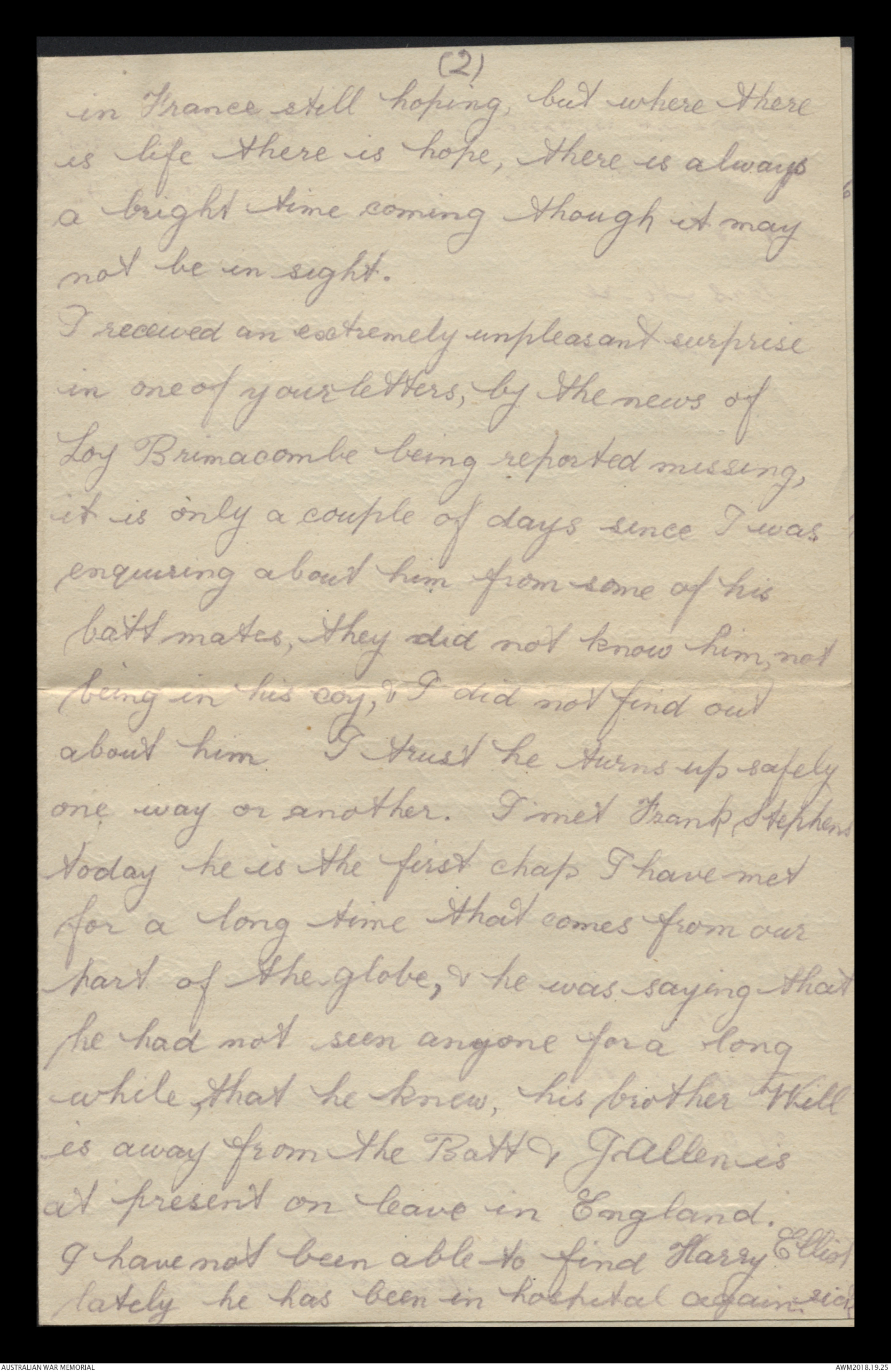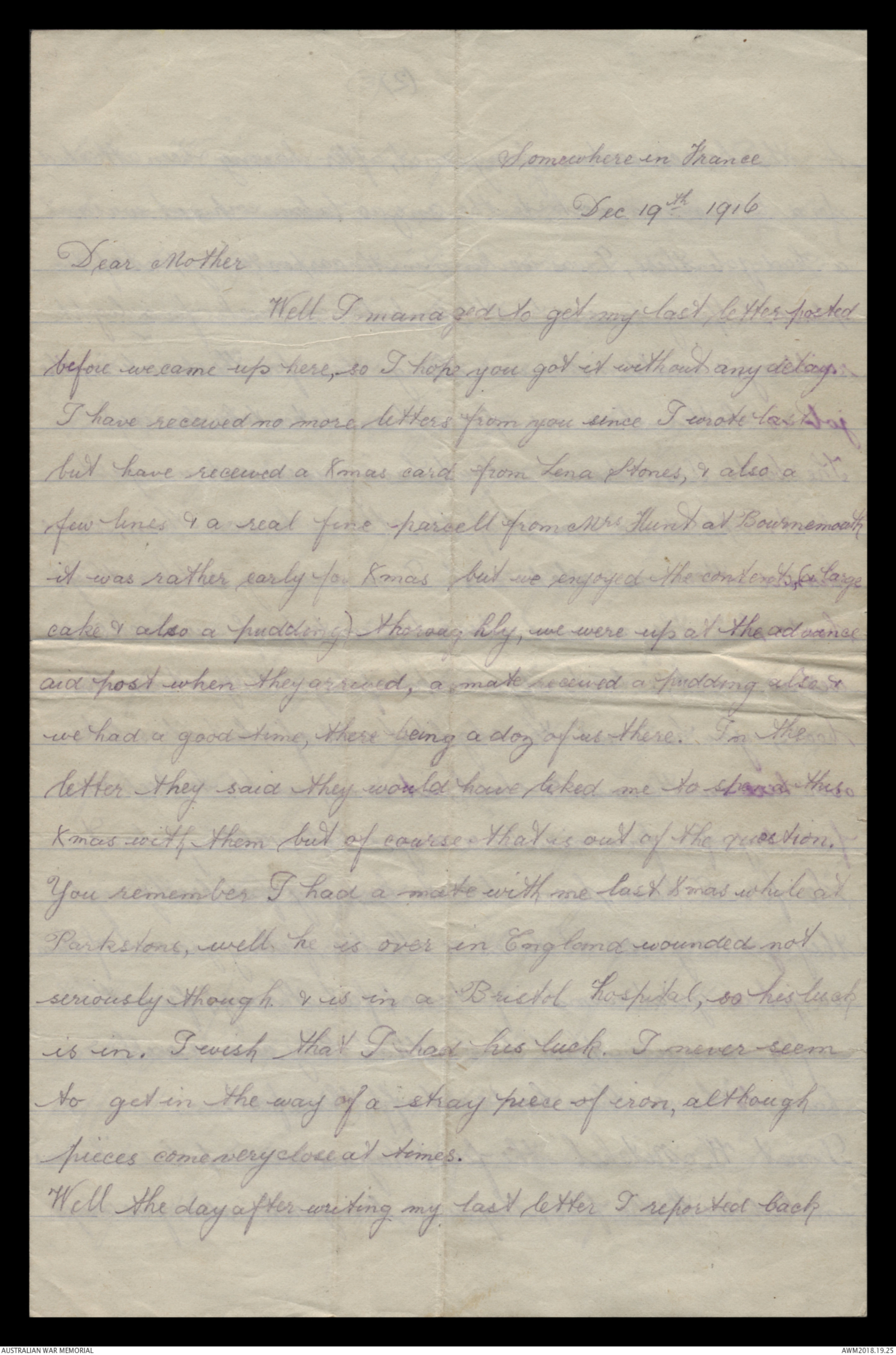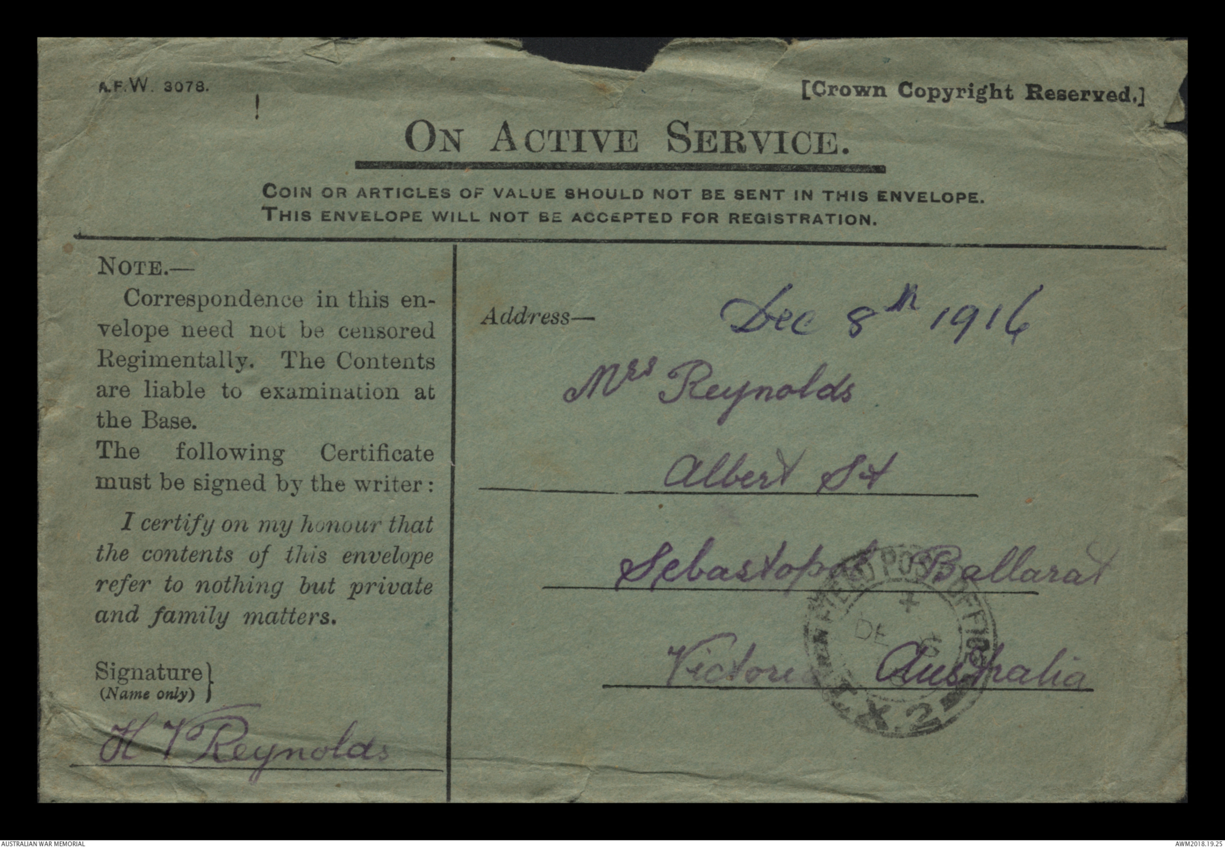 Correspondence between Herbert Vincent Reynolds and his family, 1916 - Part 11