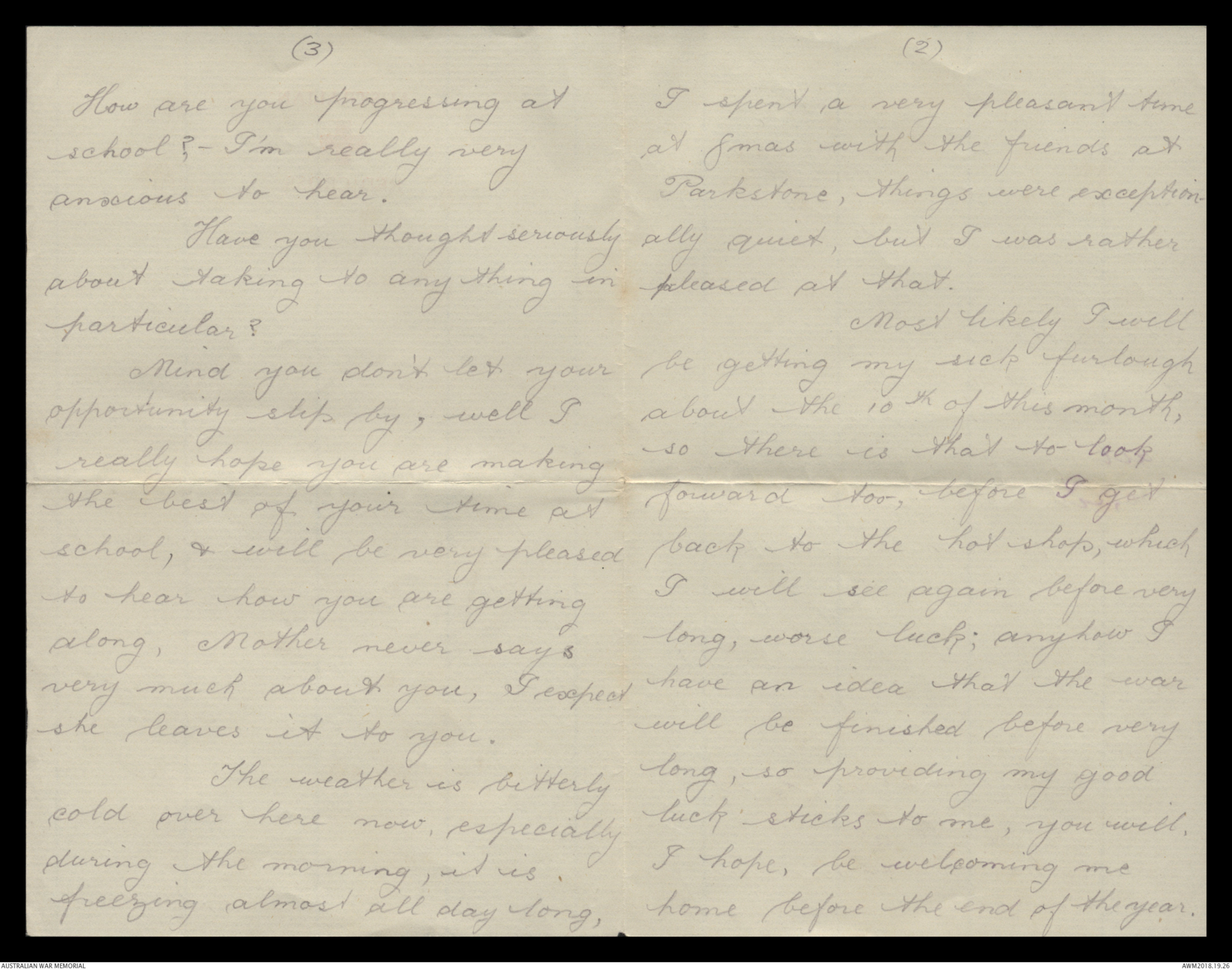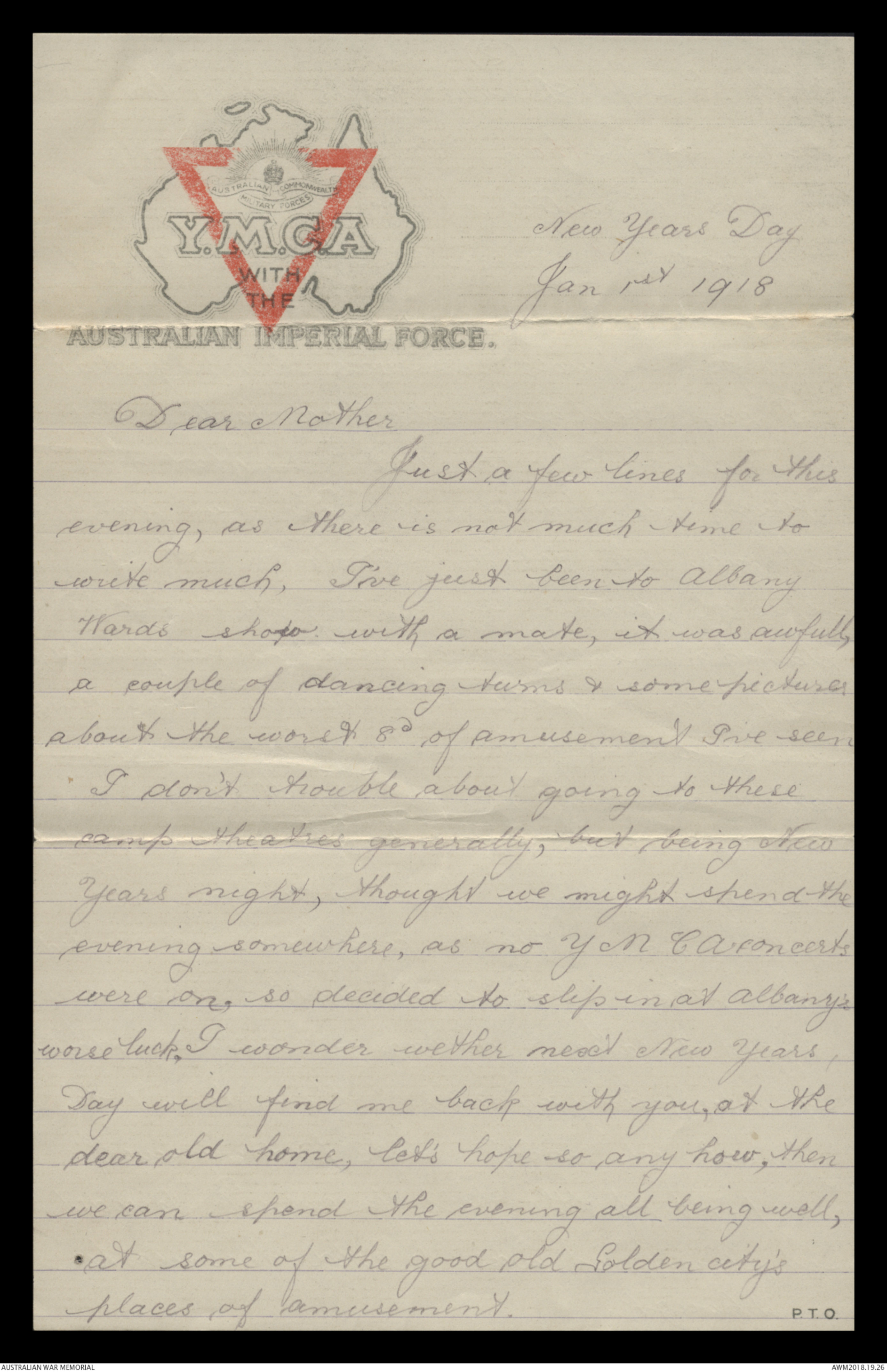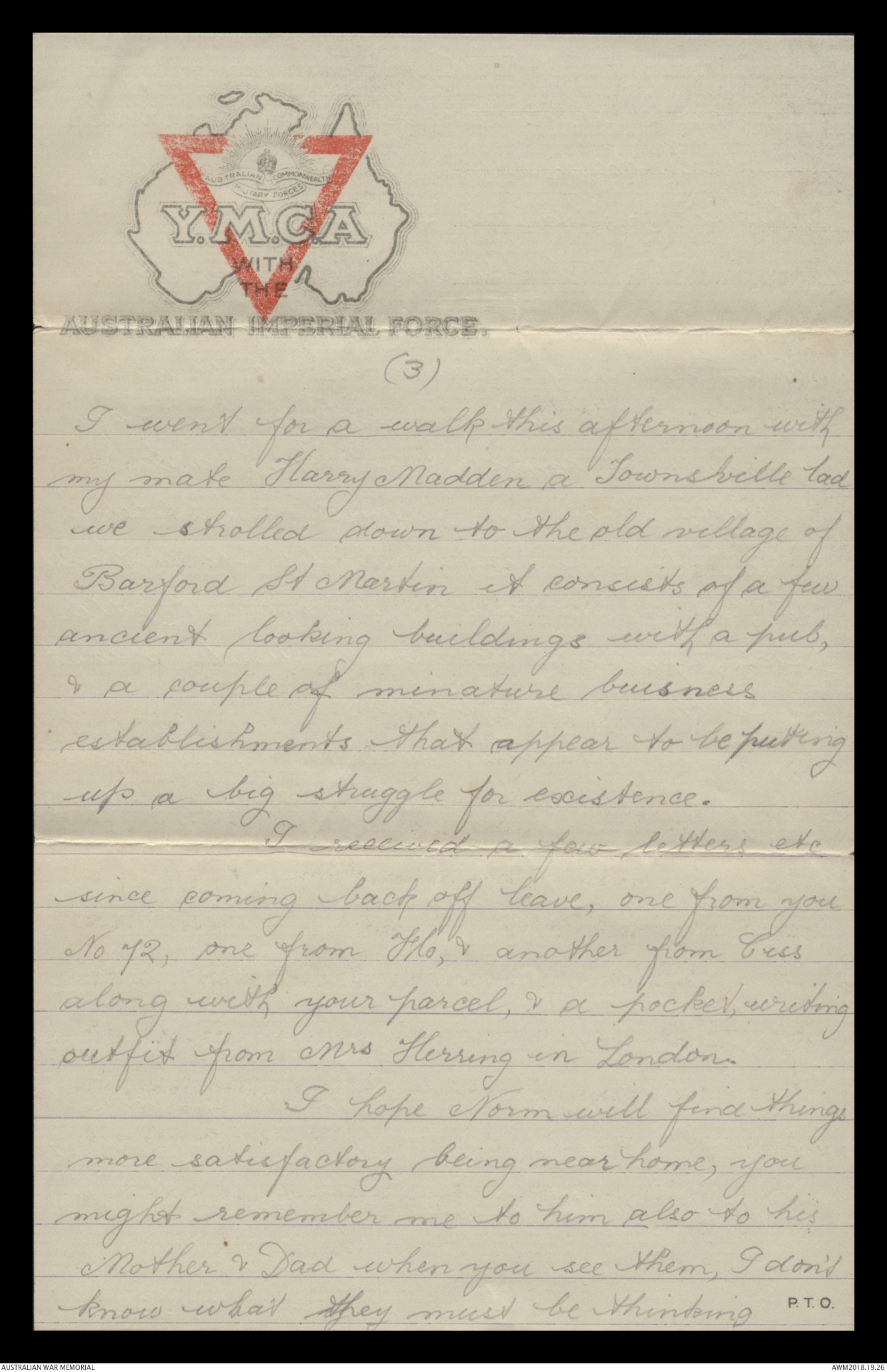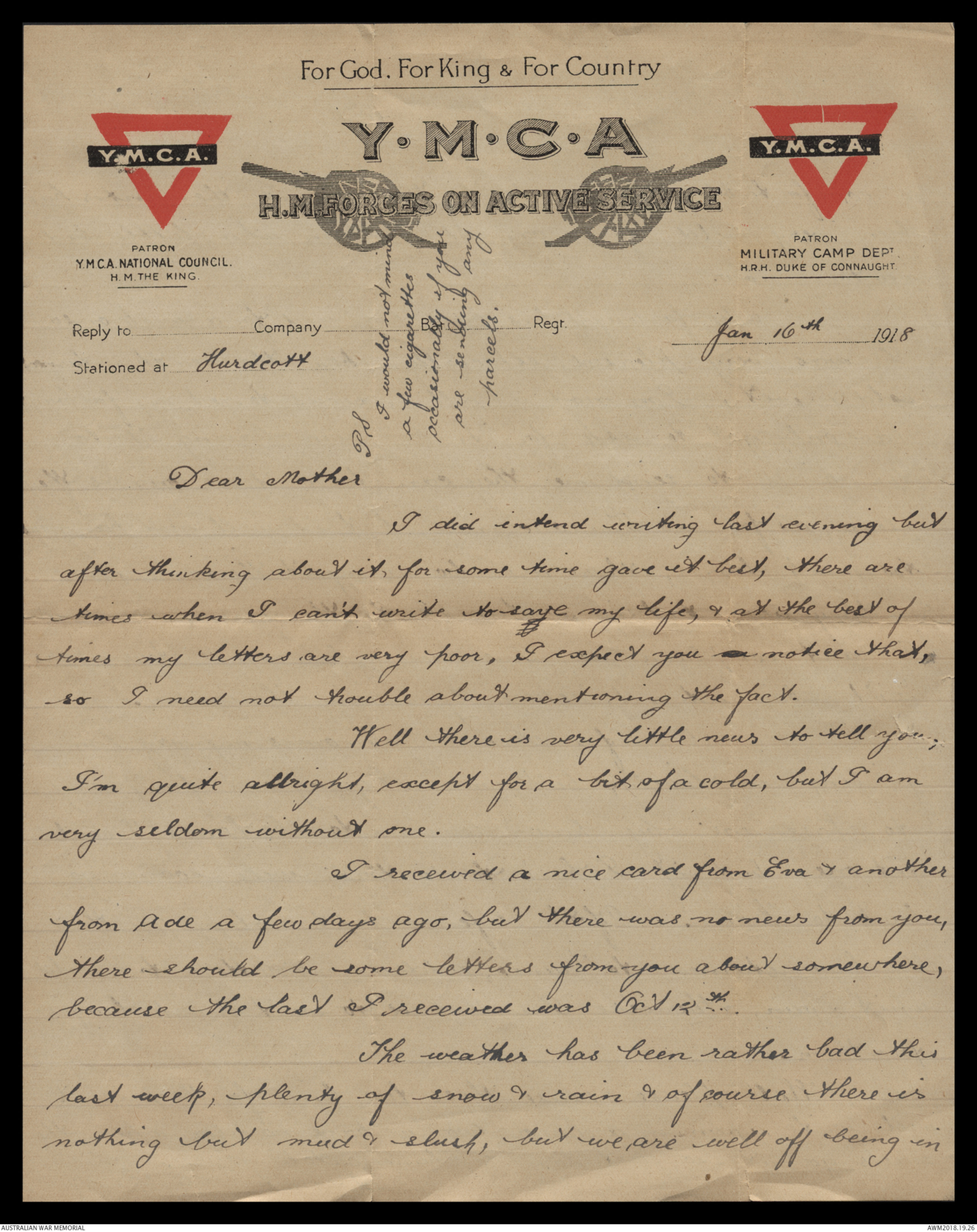 Correspondence between Herbert Vincent Reynolds and his family, 1918-1919 - Part 1