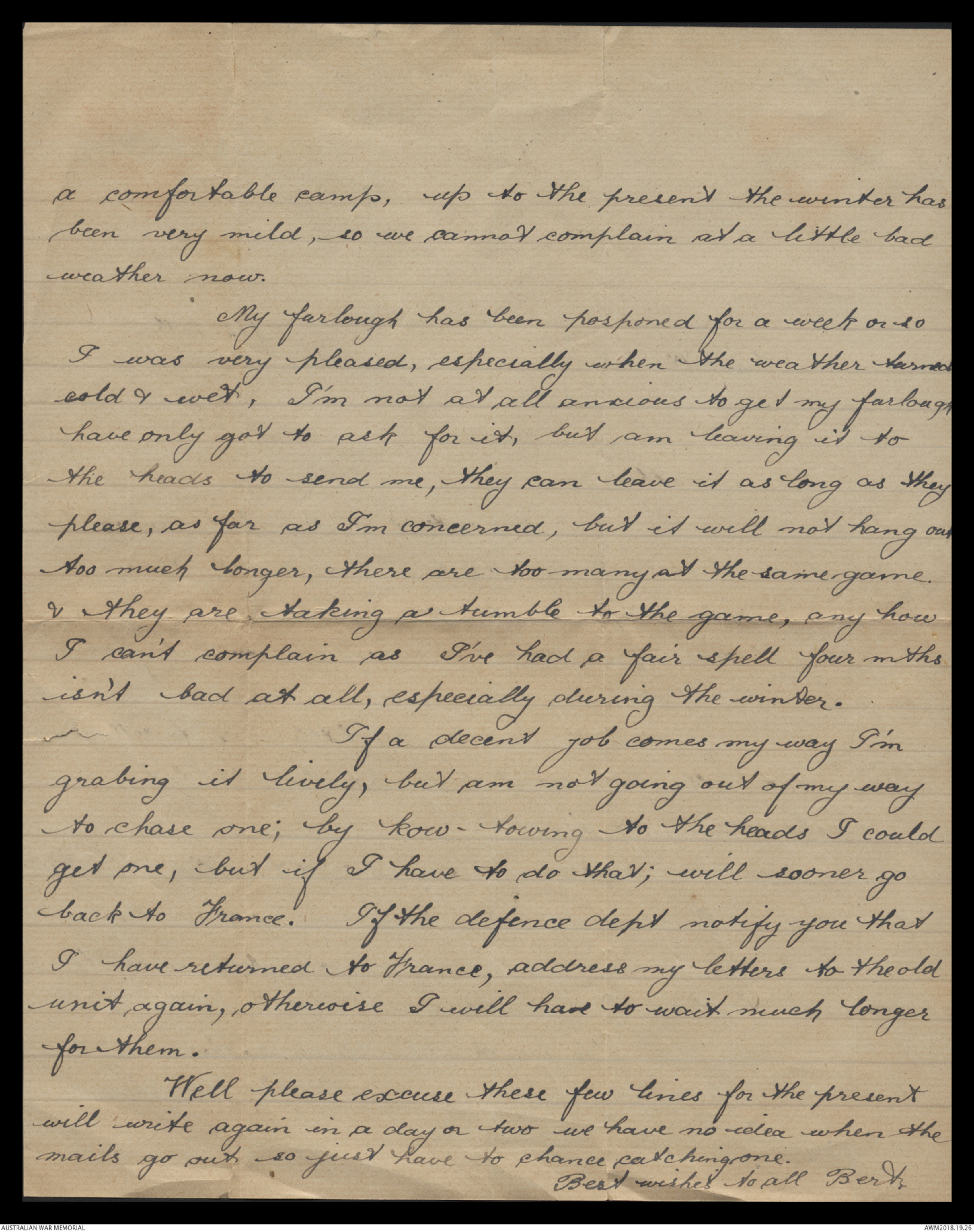 Correspondence between Herbert Vincent Reynolds and his family, 1918-1919 - Part 2
