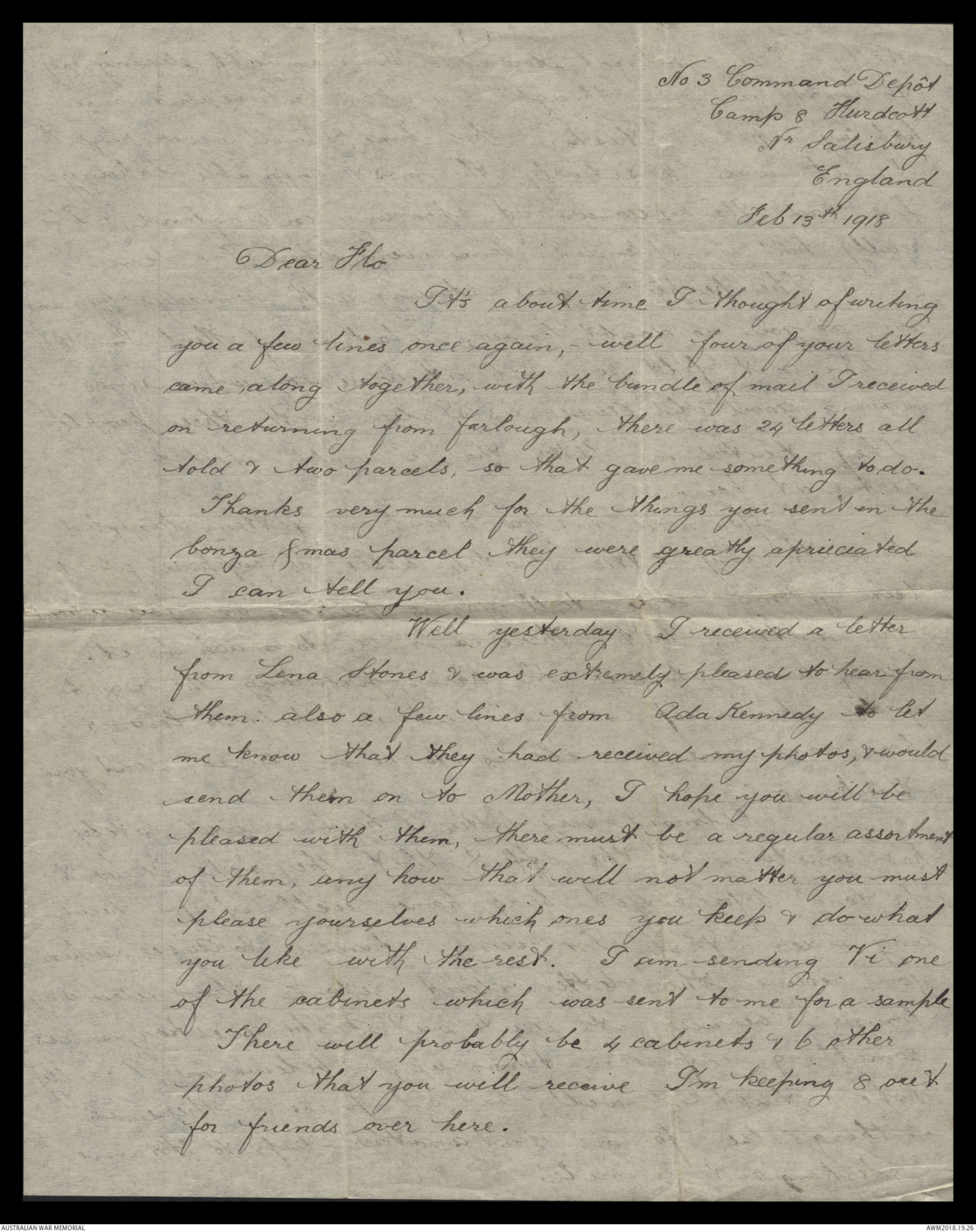 Correspondence between Herbert Vincent Reynolds and his family, 1918-1919 - Part 3