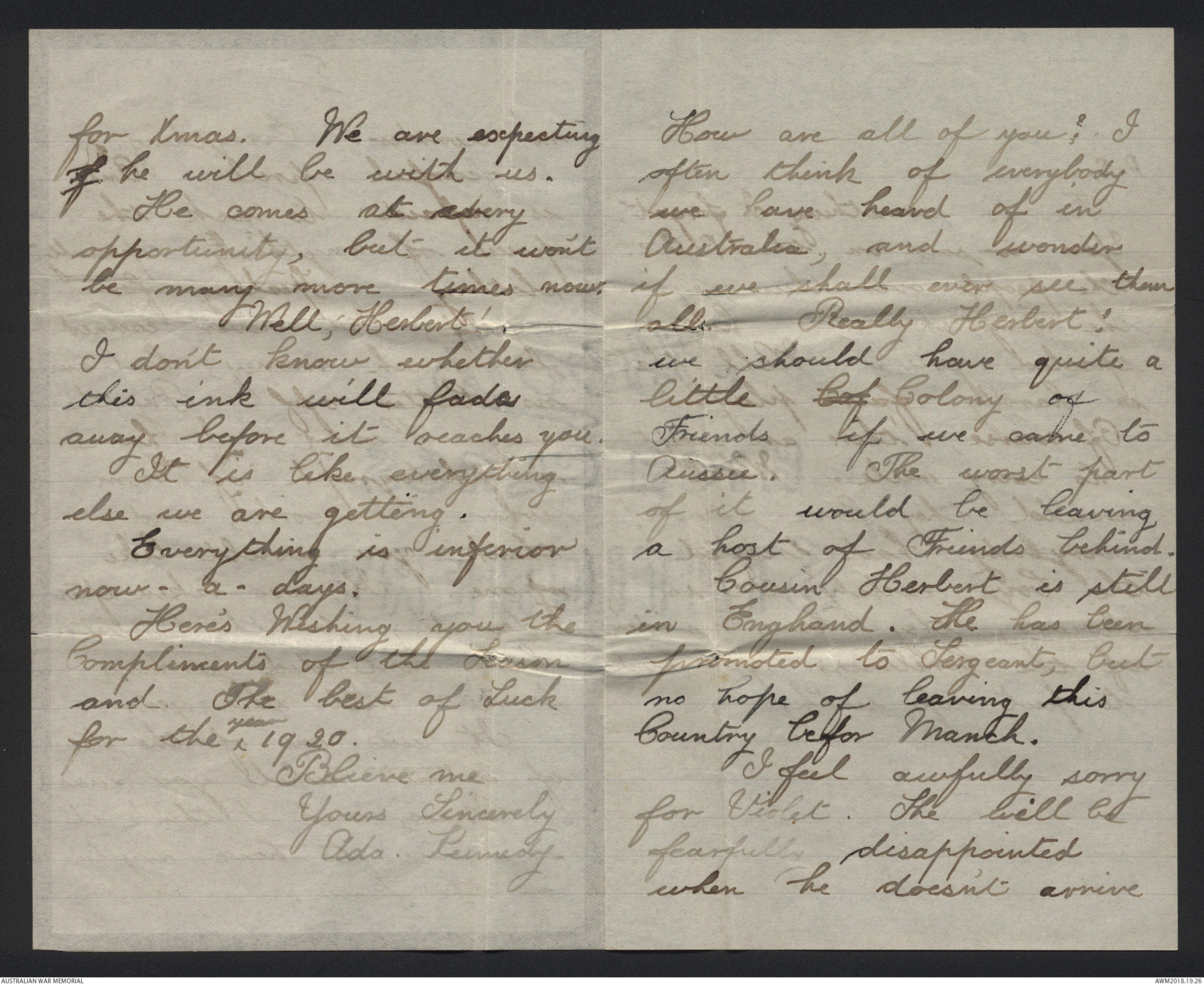 Correspondence between Herbert Vincent Reynolds and his family, 1918-1919 - Part 13