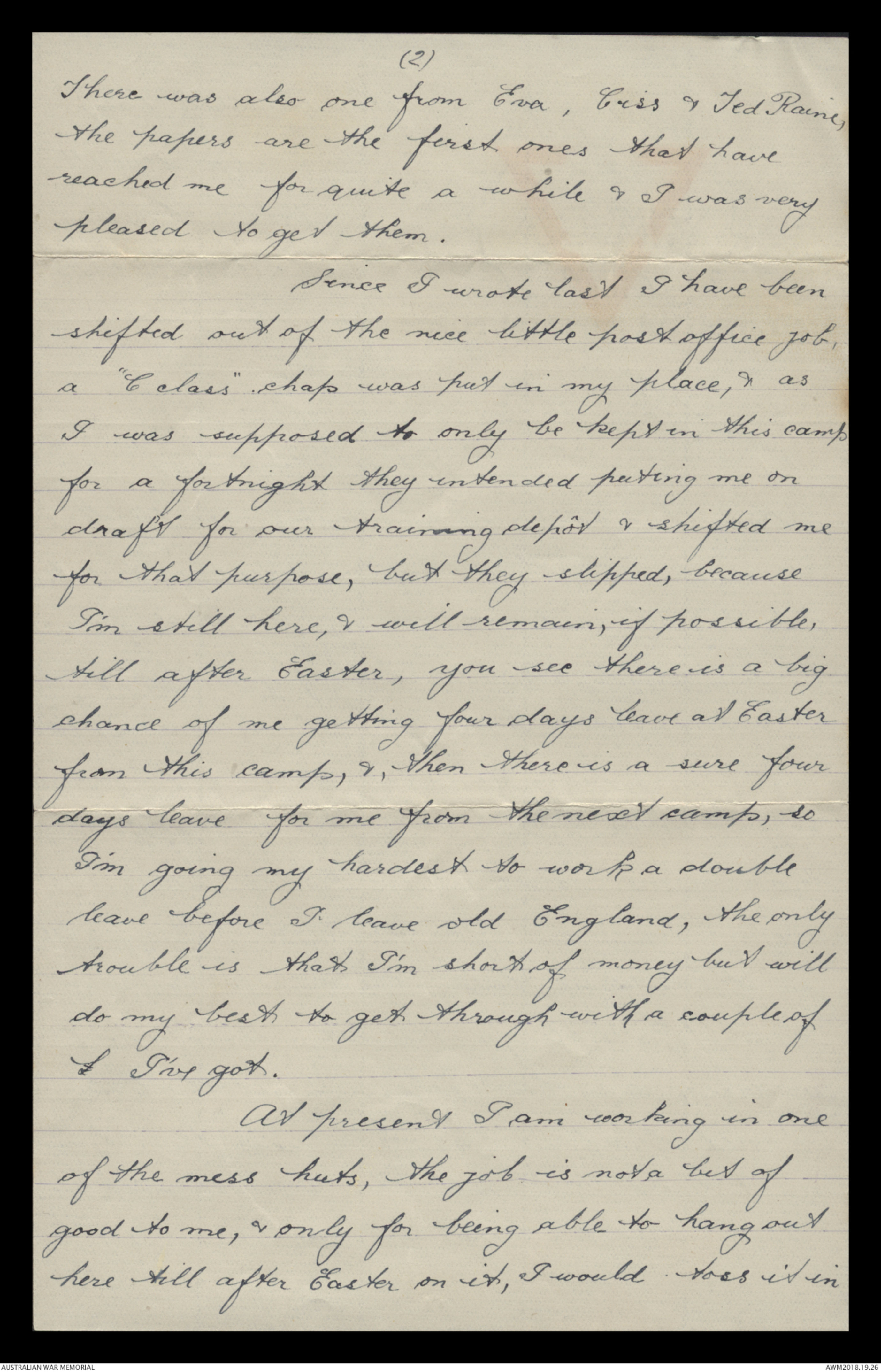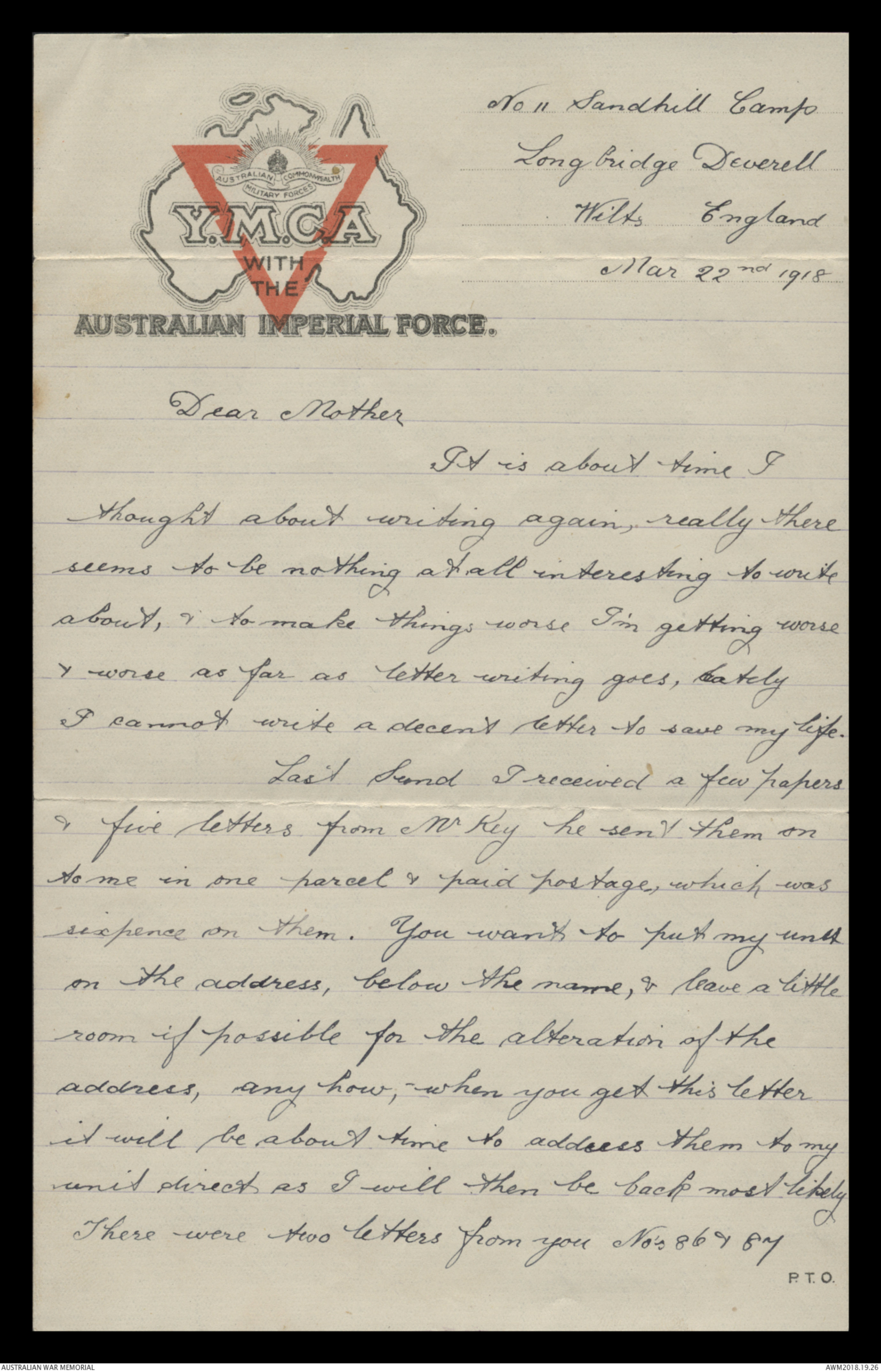 Correspondence between Herbert Vincent Reynolds and his family, 1918-1919 - Part 5