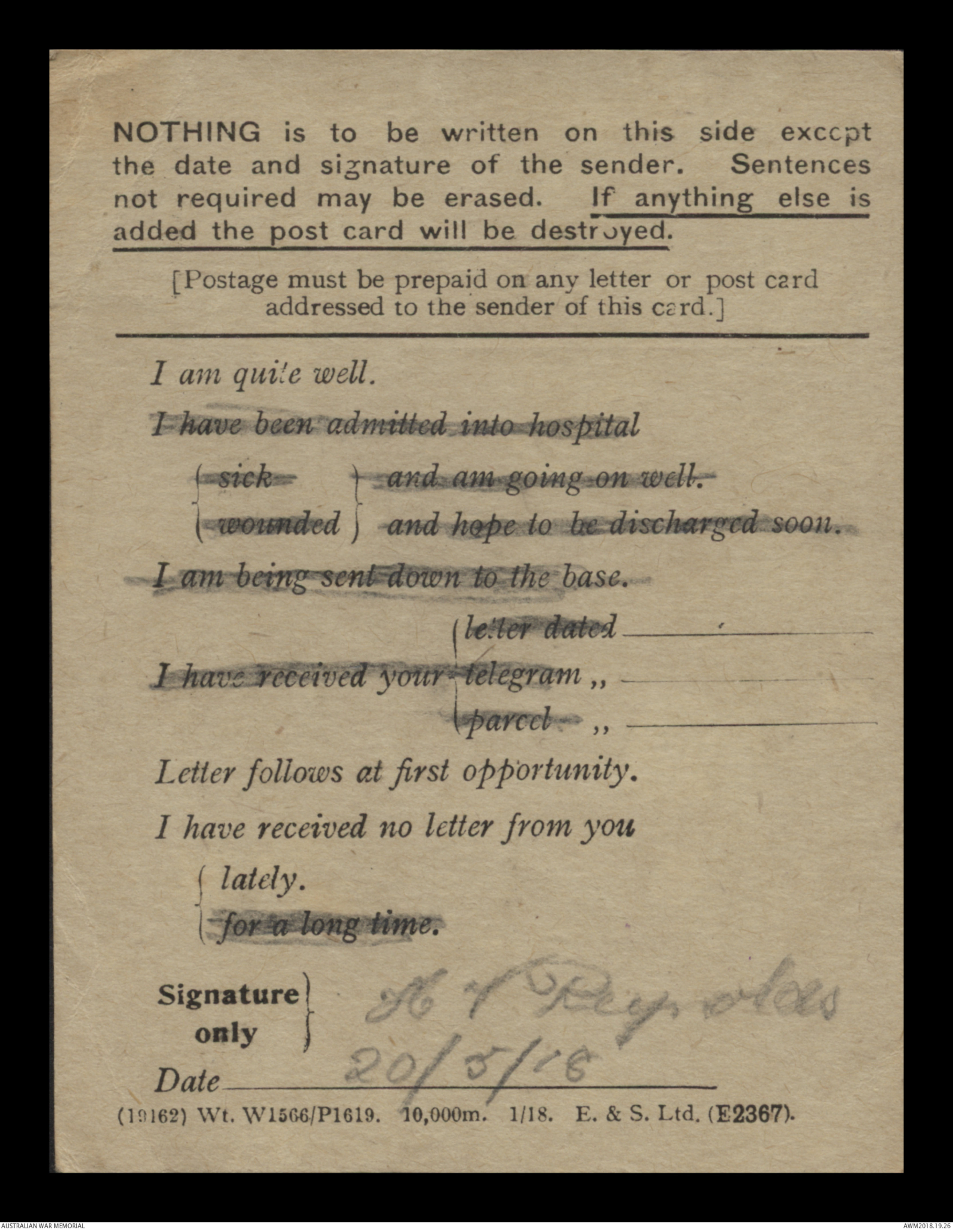 Signature } H V Reynolds