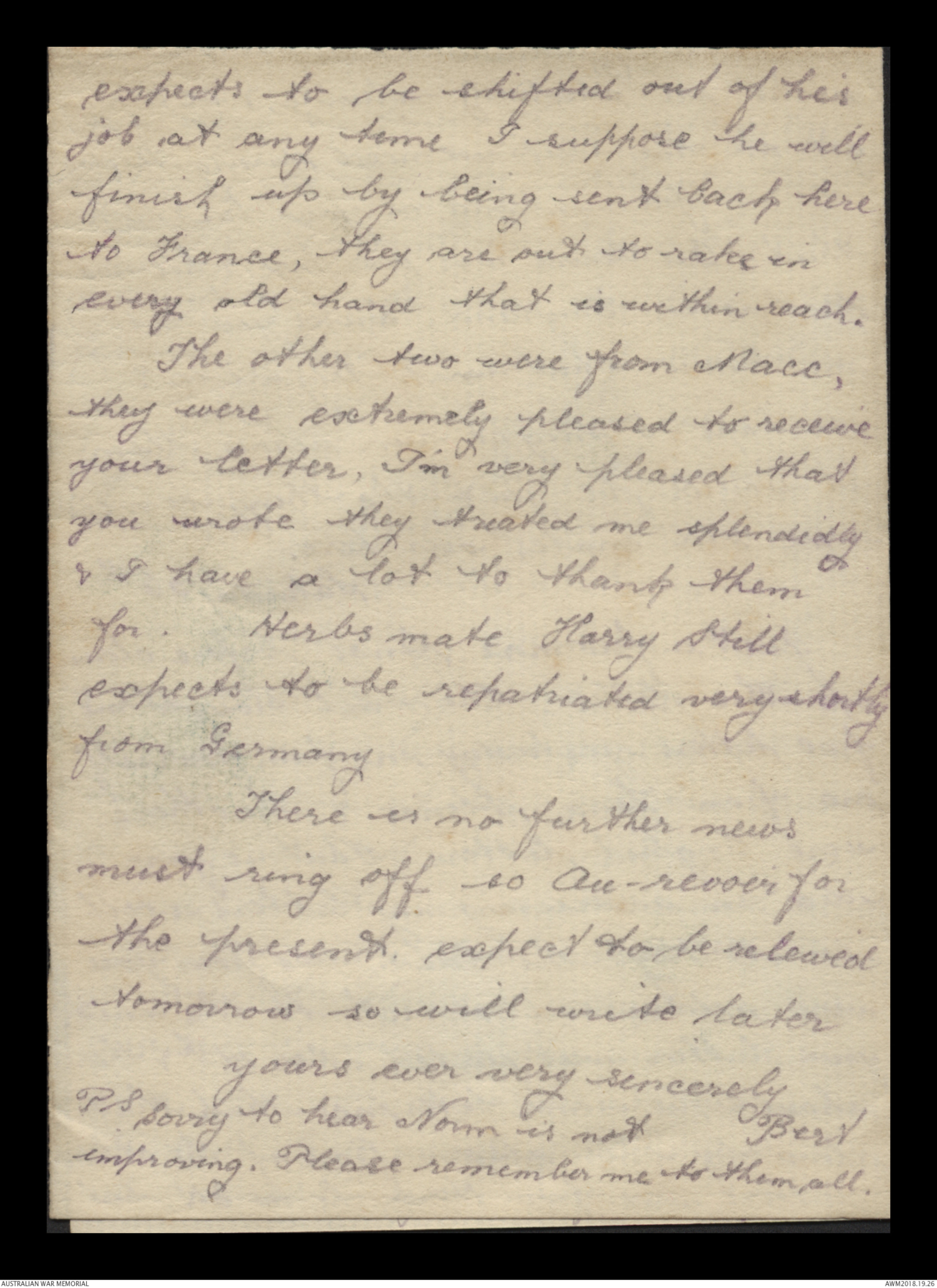 Correspondence between Herbert Vincent Reynolds and his family, 1918-1919 - Part 7