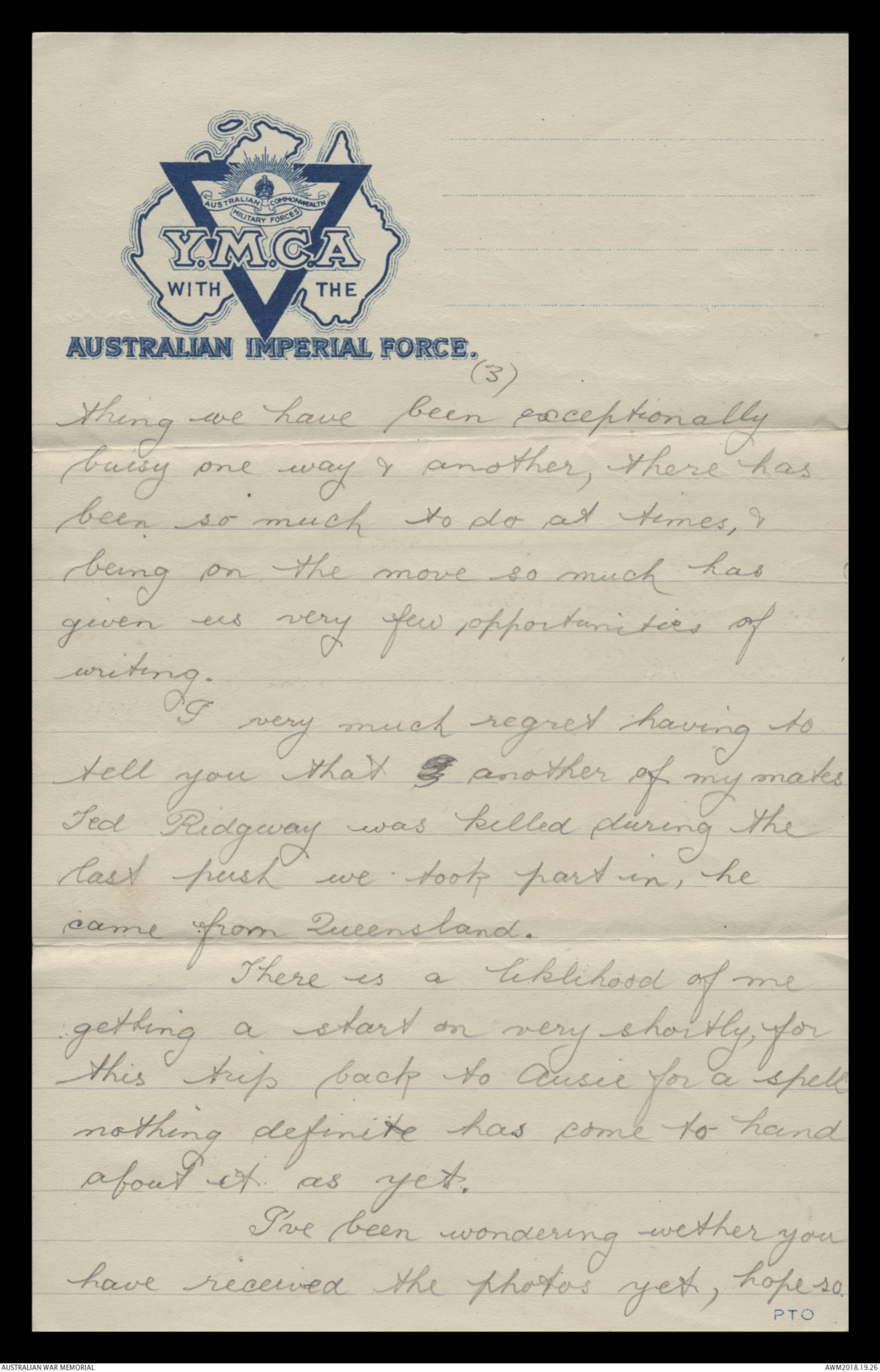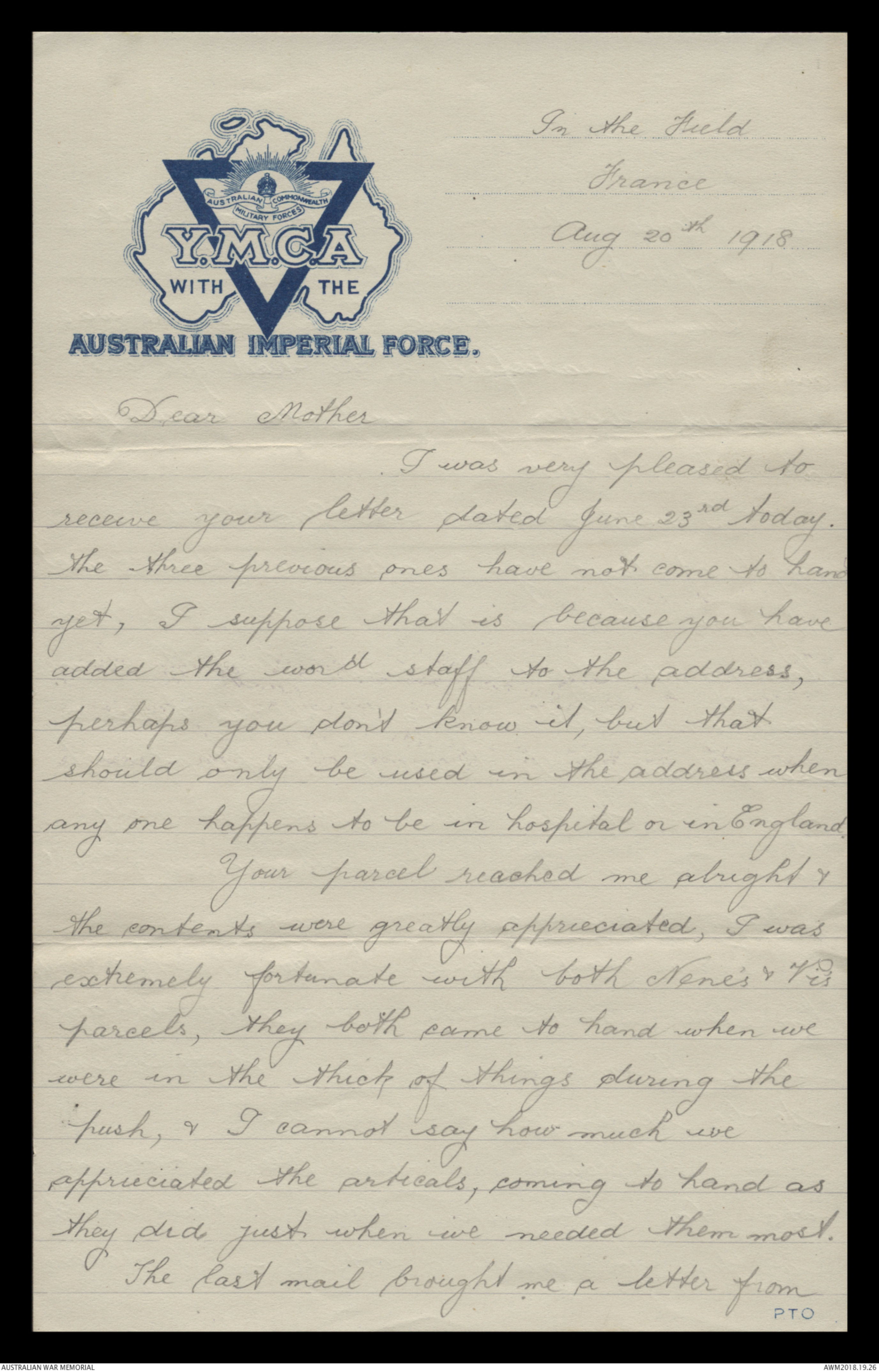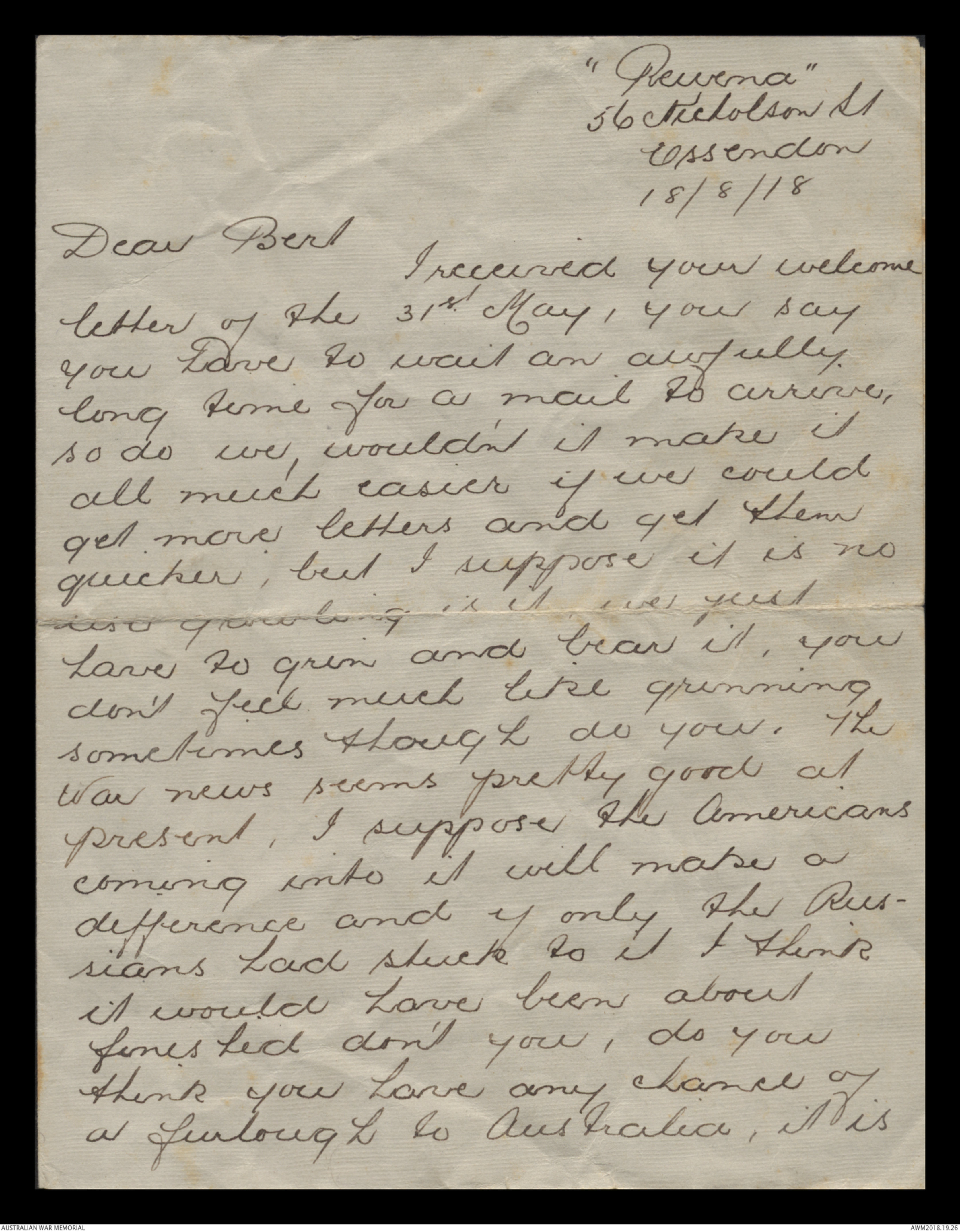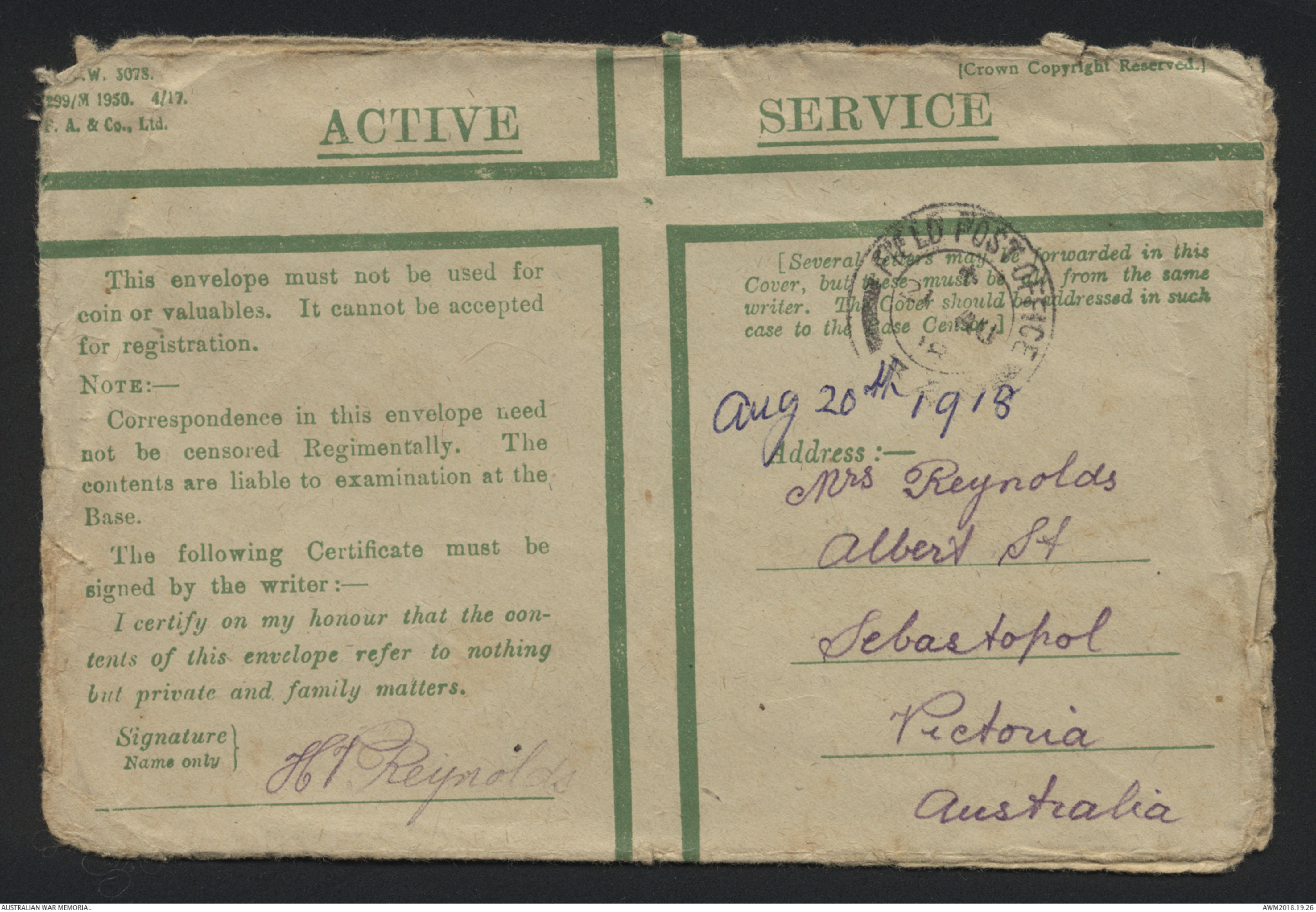 Correspondence between Herbert Vincent Reynolds and his family, 1918-1919 - Part 9
