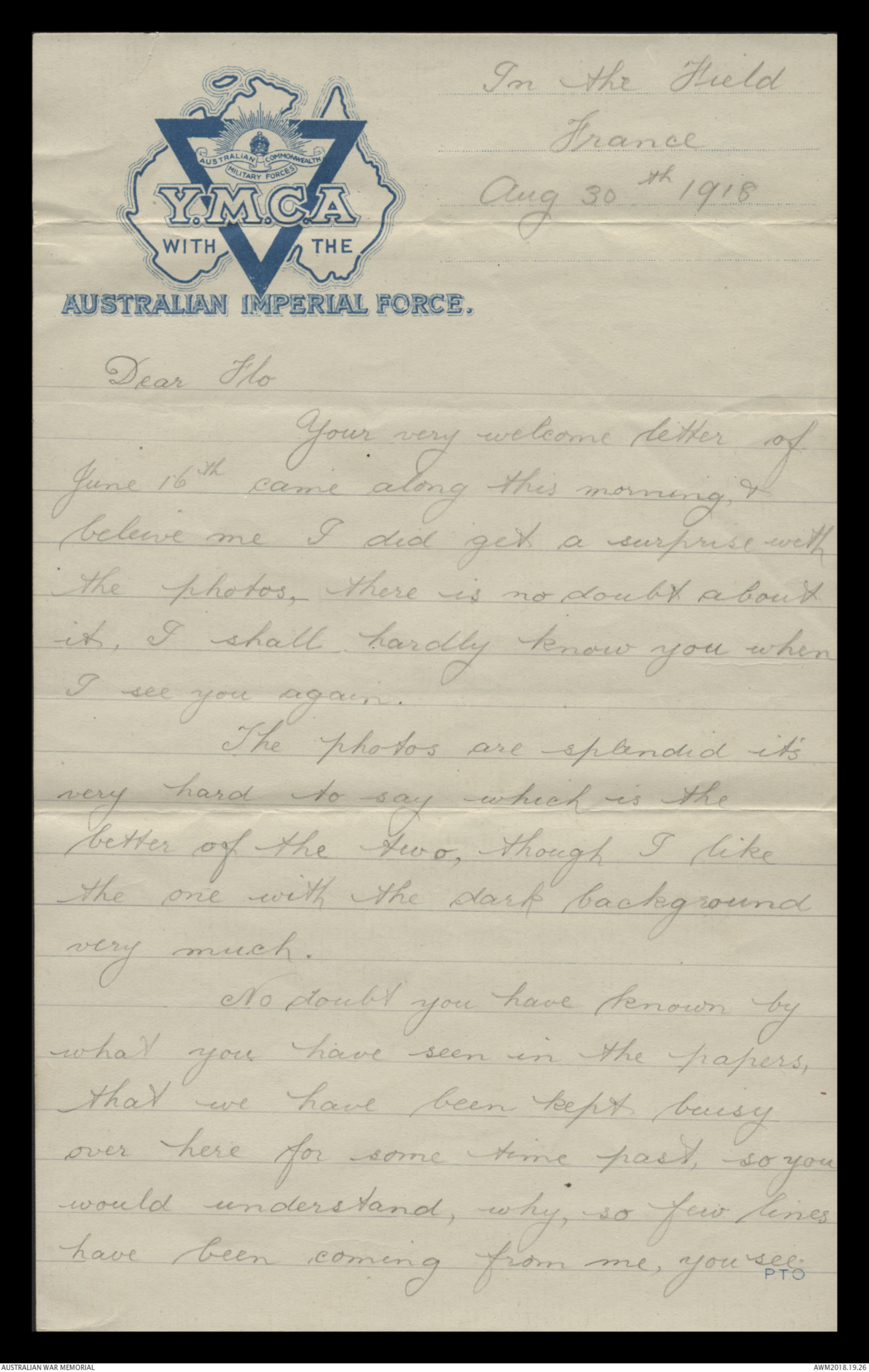 Correspondence between Herbert Vincent Reynolds and his family, 1918-1919 - Part 10
